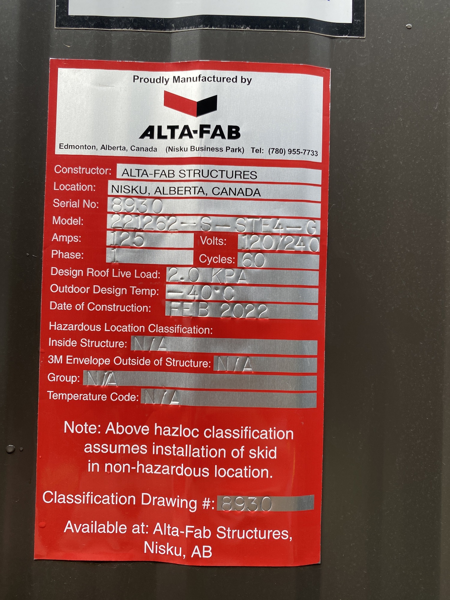 Manufacturer: Alta-Fab Structures