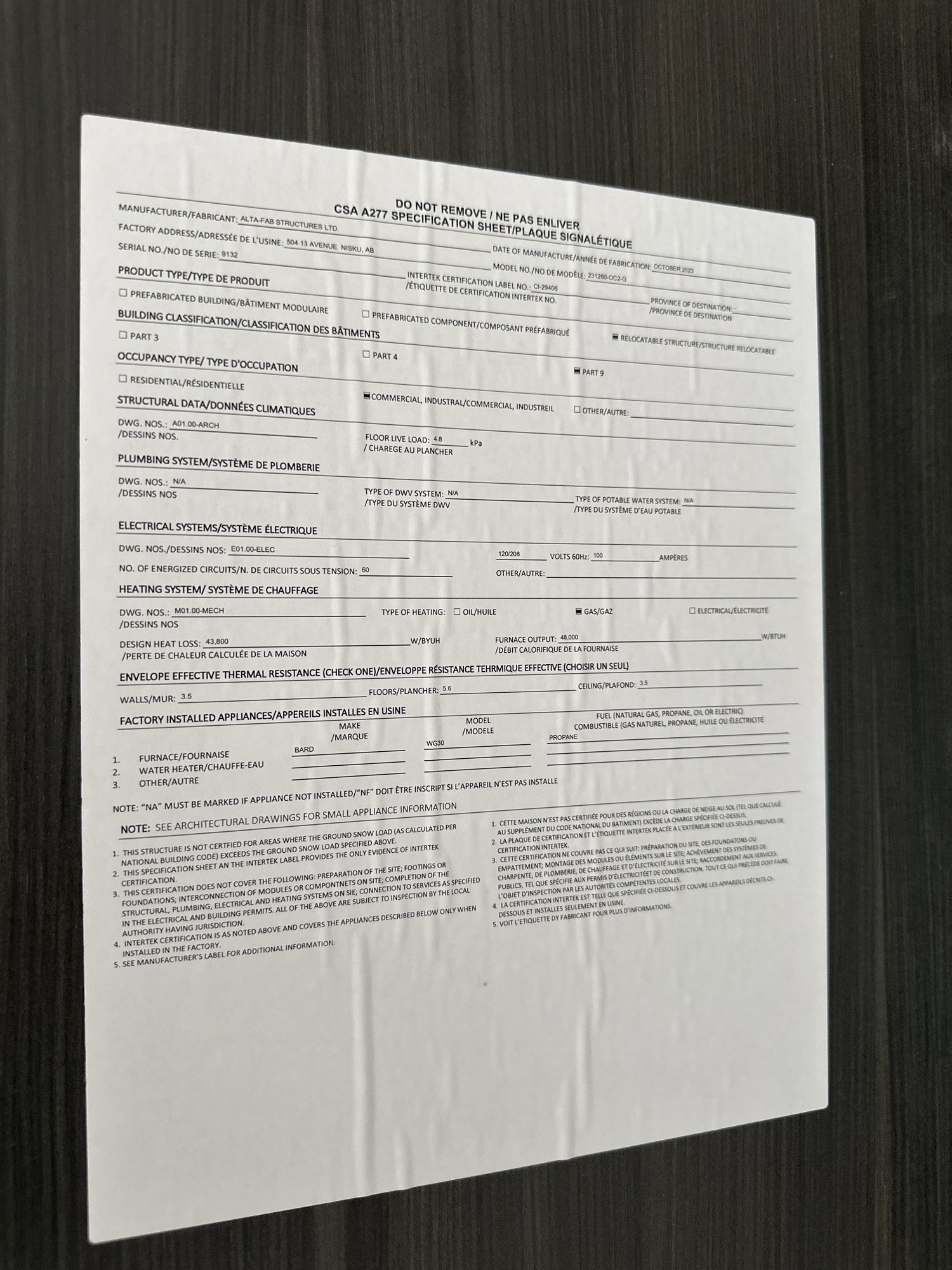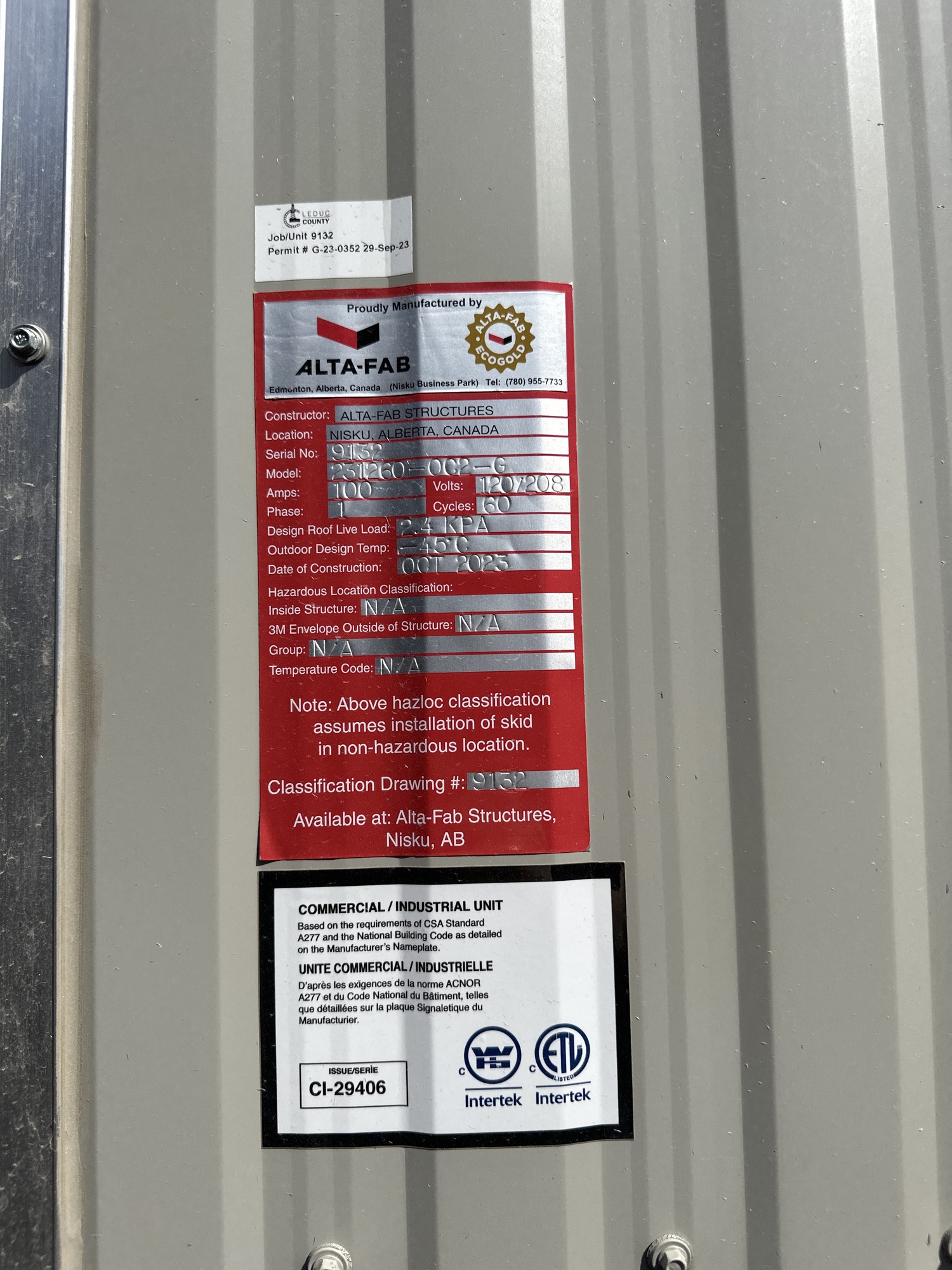 Roof Load: 2.4 KPA