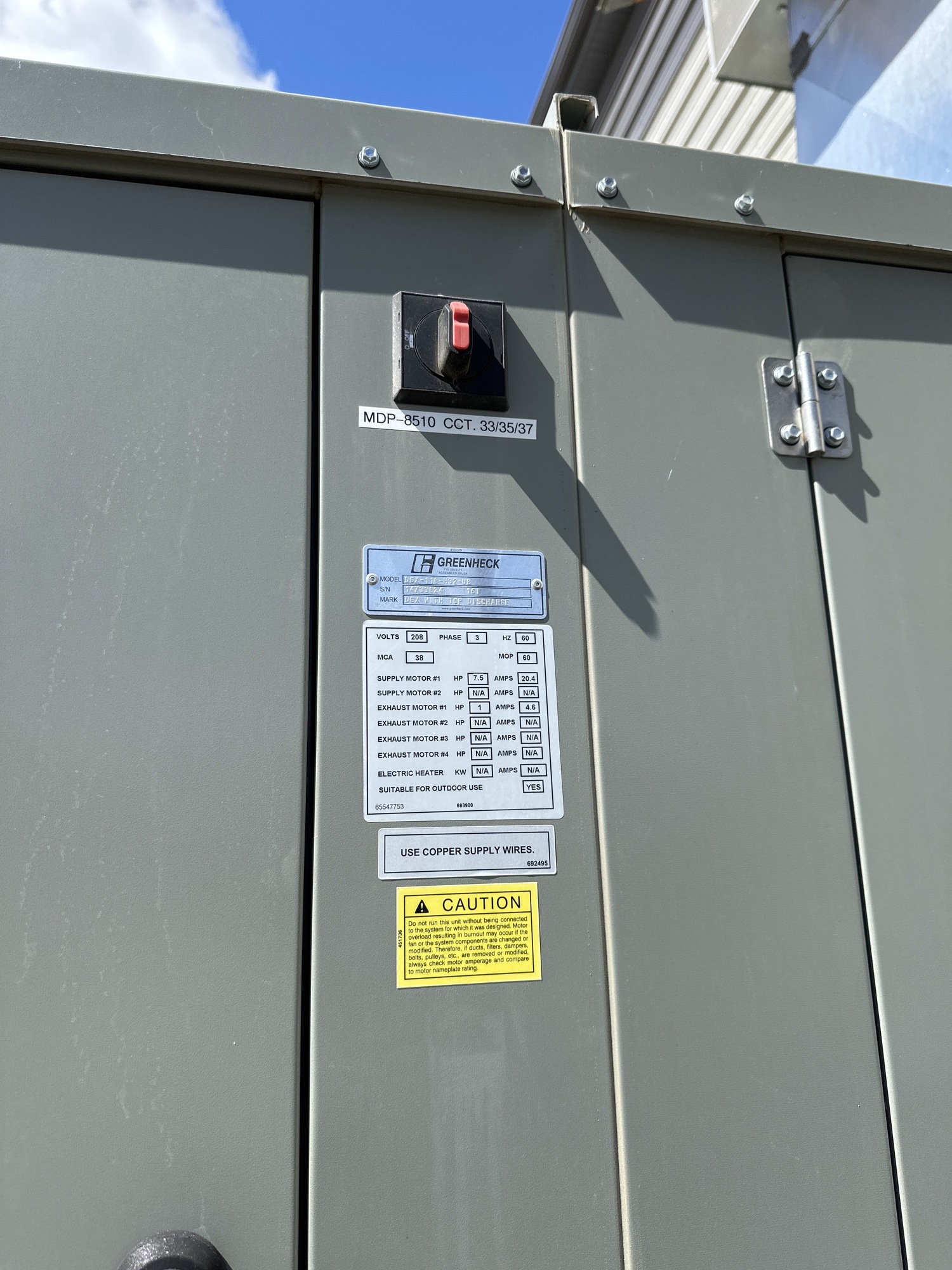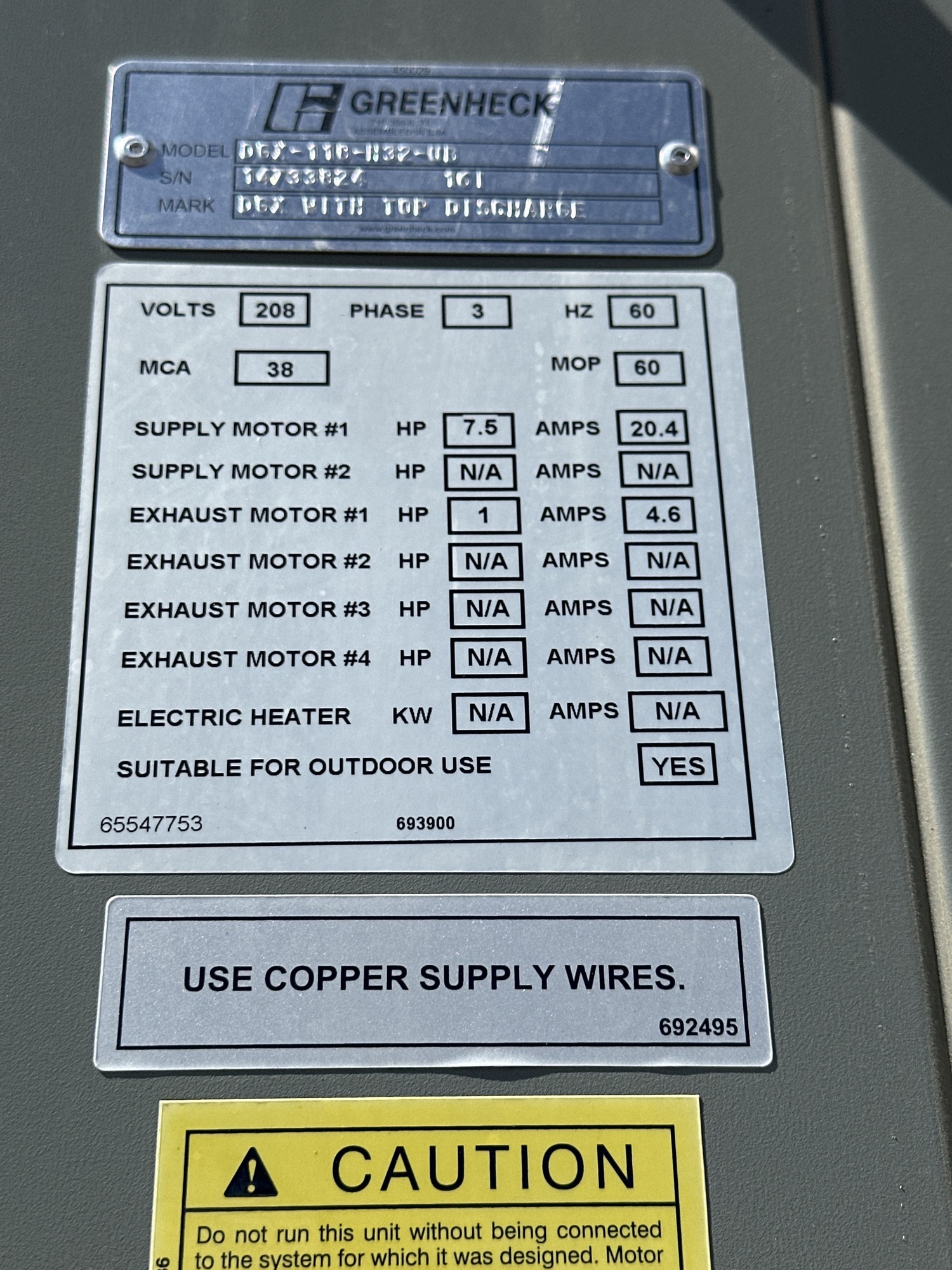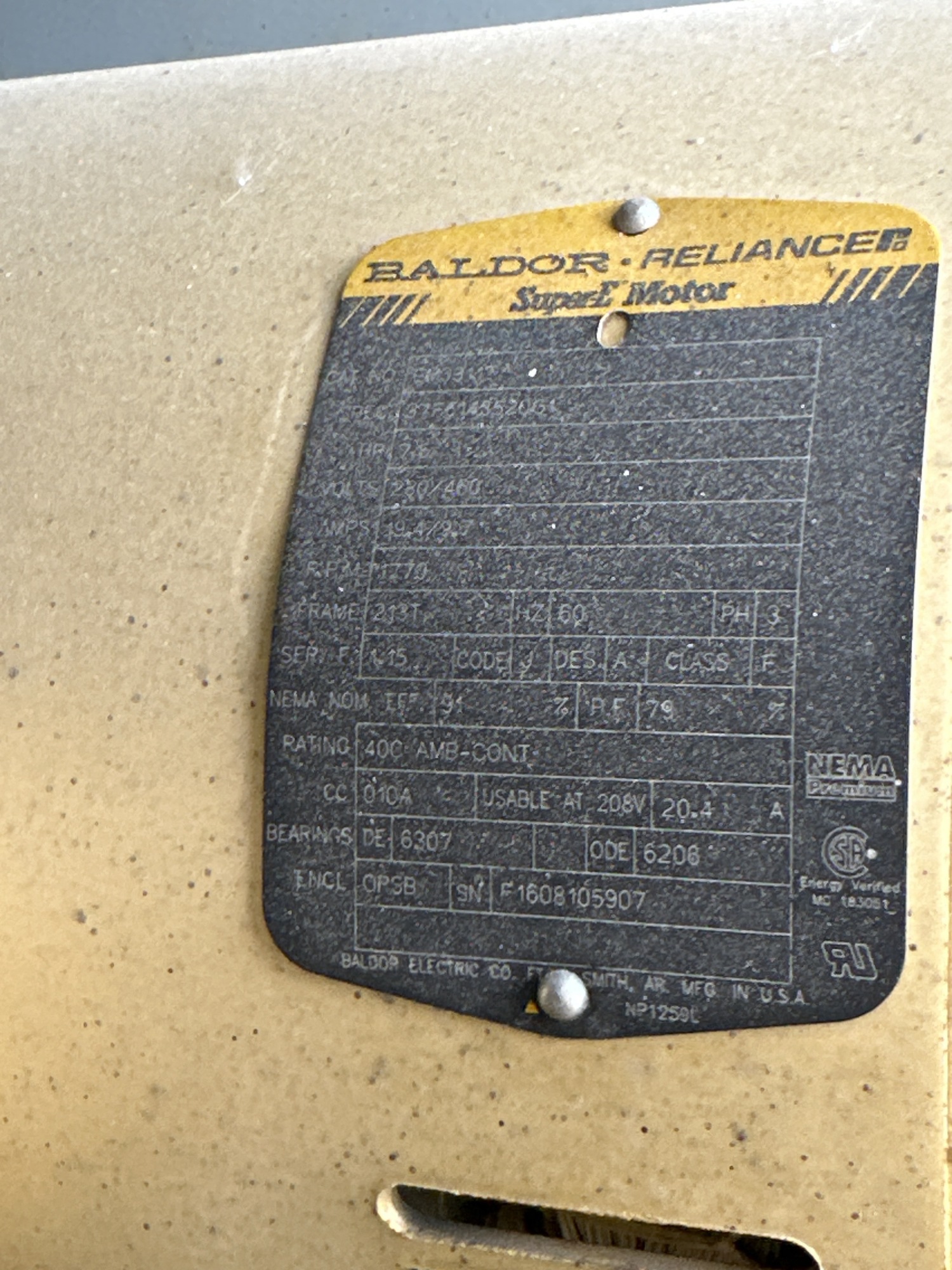 Supply Motor #1: 7.5 HP | 20.4 AMPS