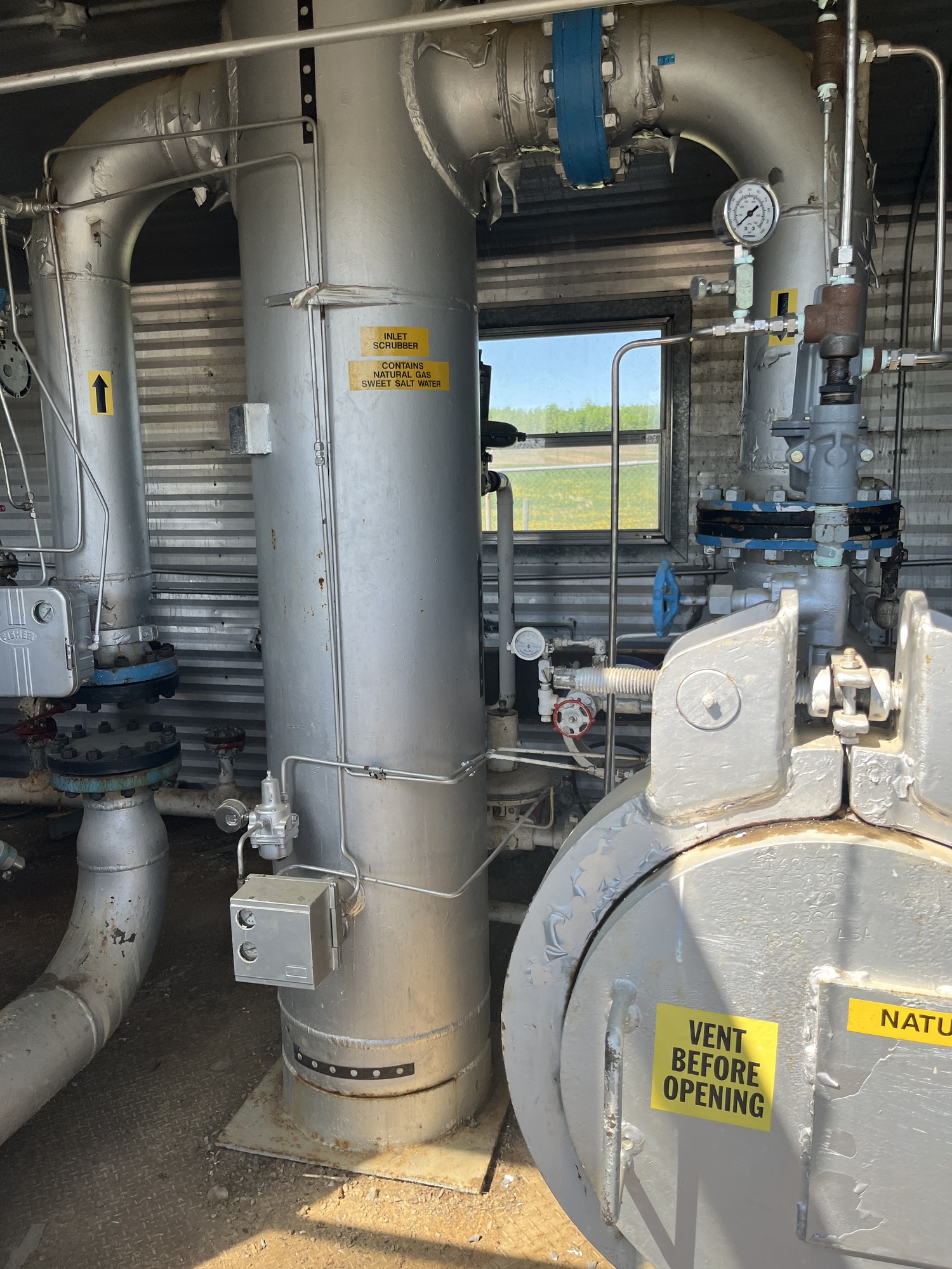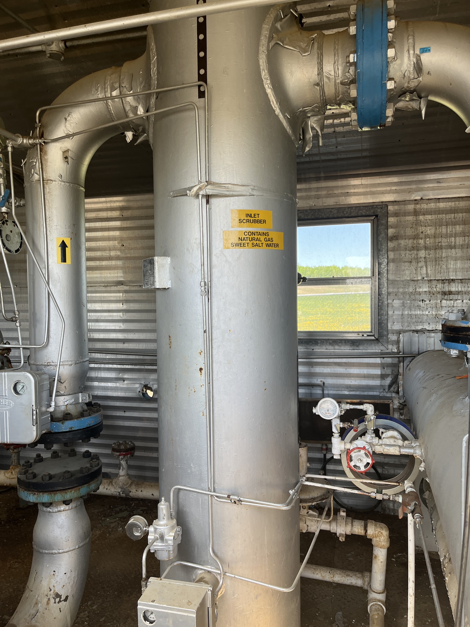 6-line inlet header building, 300 psi ANSI ratting, with 20"x8' inlet scrubber built in 1979 and horizontal filter separator built in 1974 inside 15'x30' skid shack located at FA-16-11-058-13W4