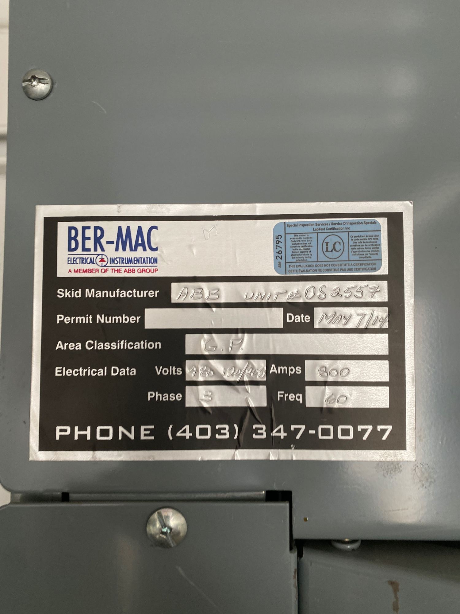 Skid Manufacturer: ABB Unit # OS2557