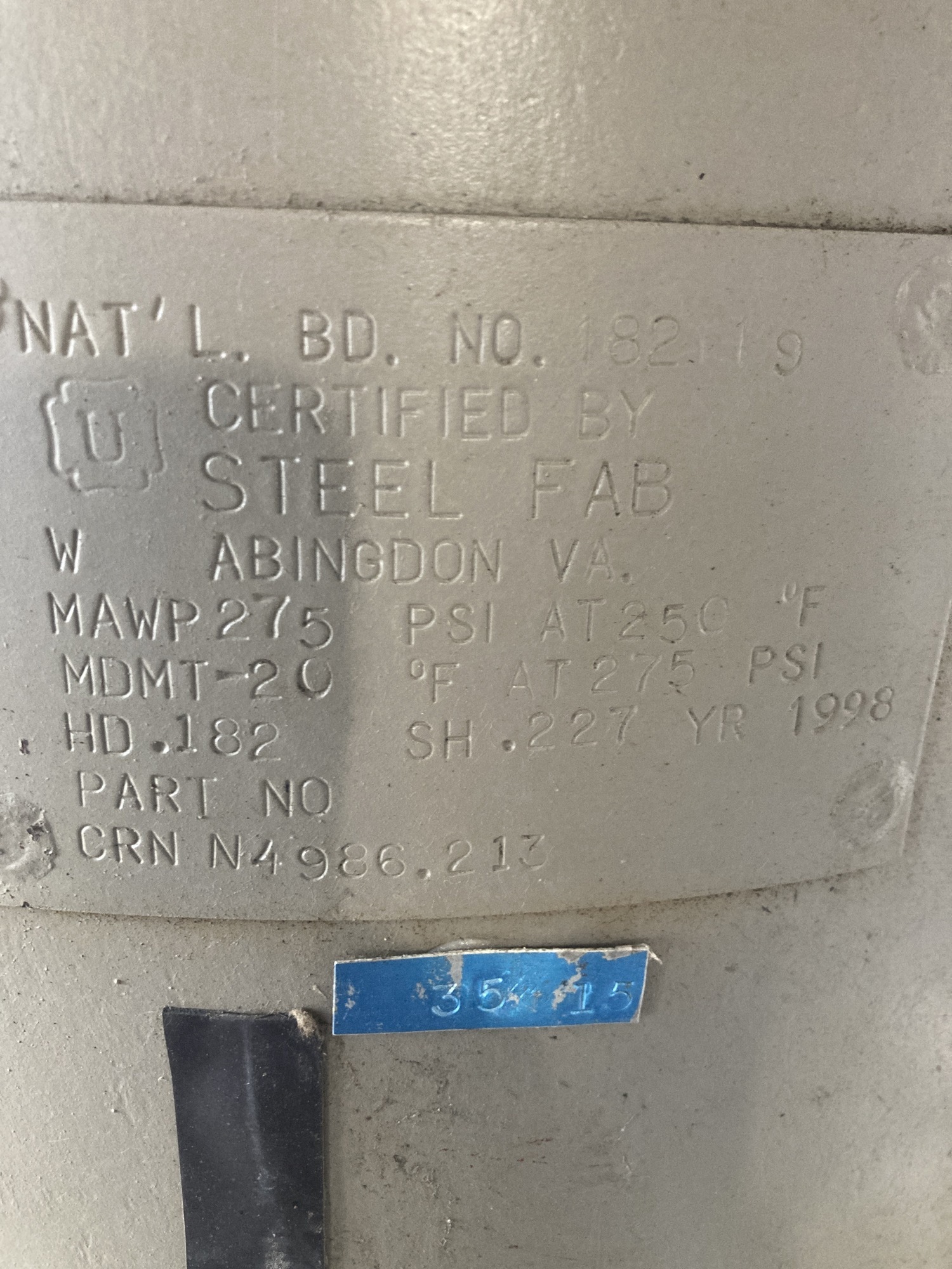 MAWP (PSI) 0