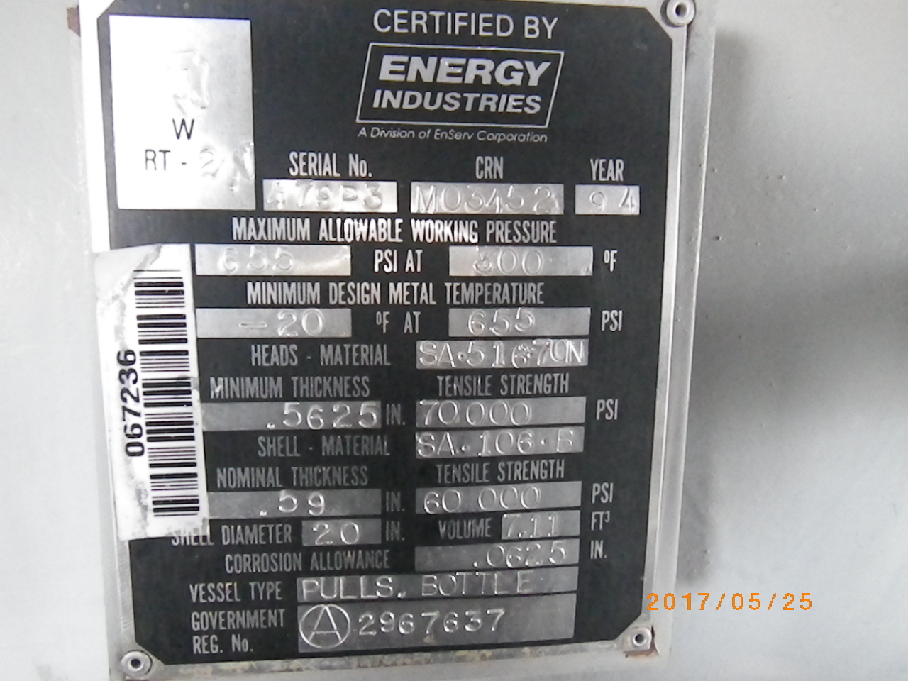 MAWP (PSI) 0