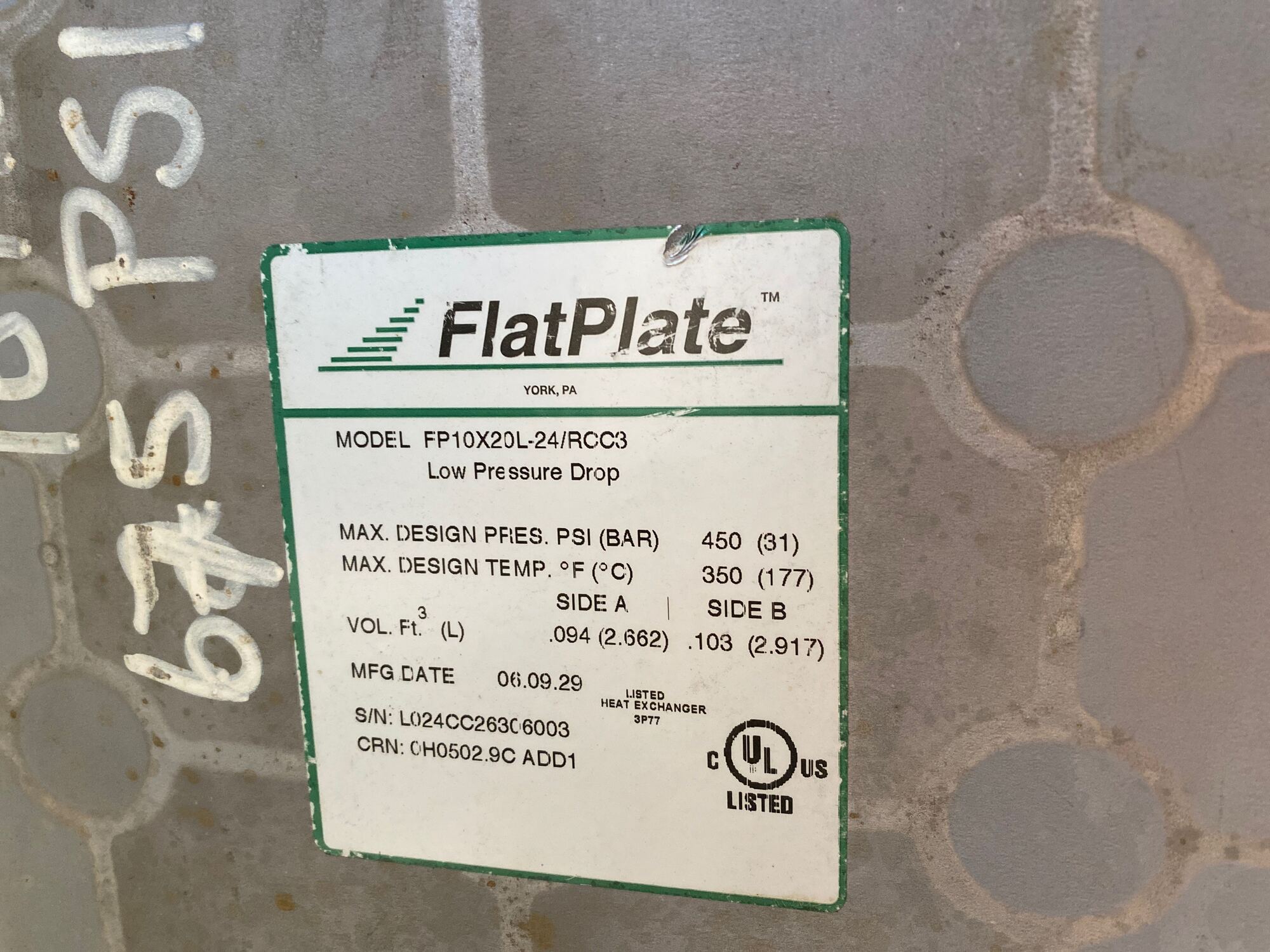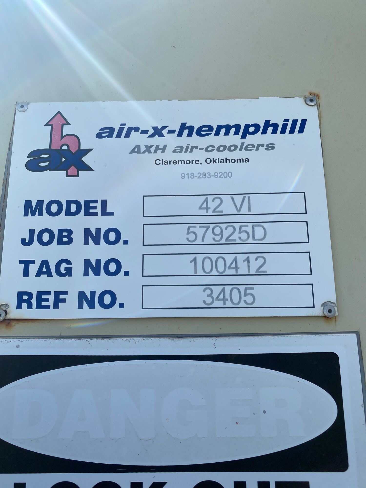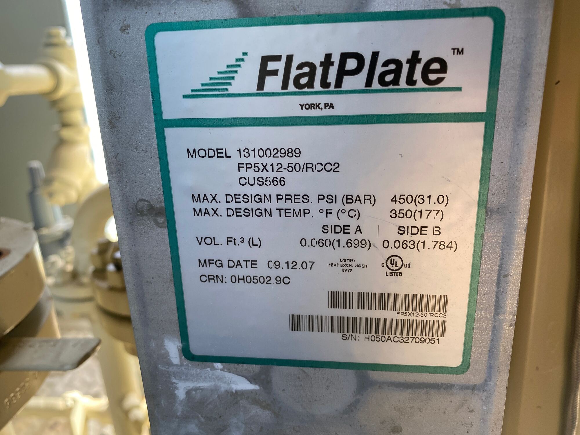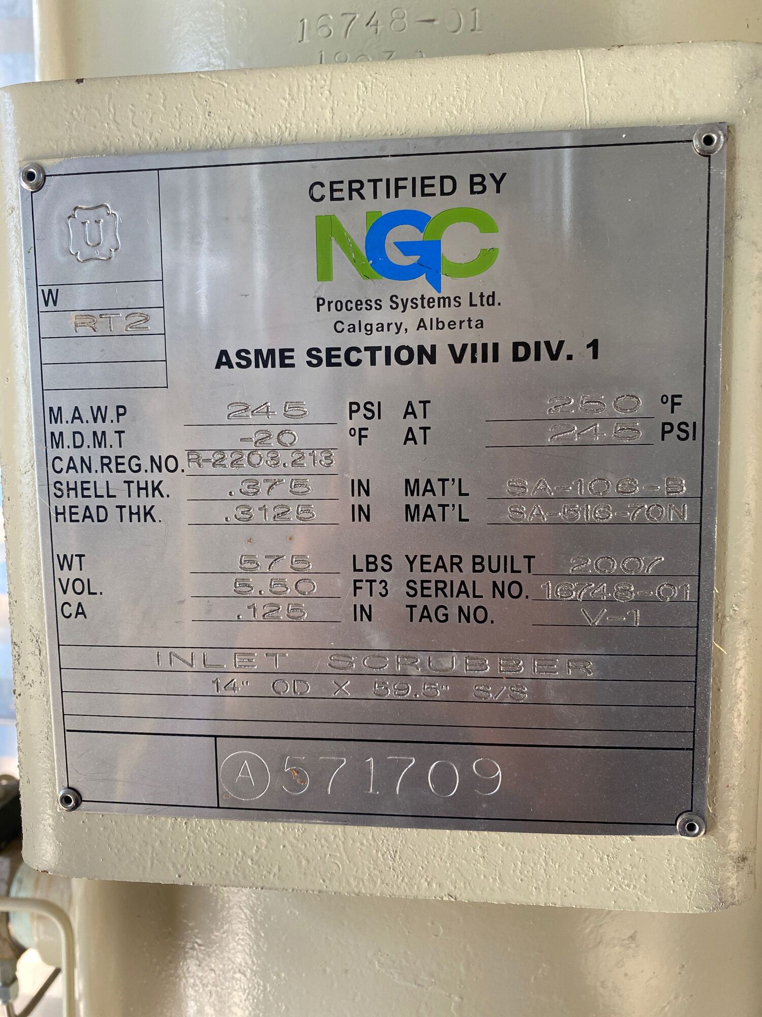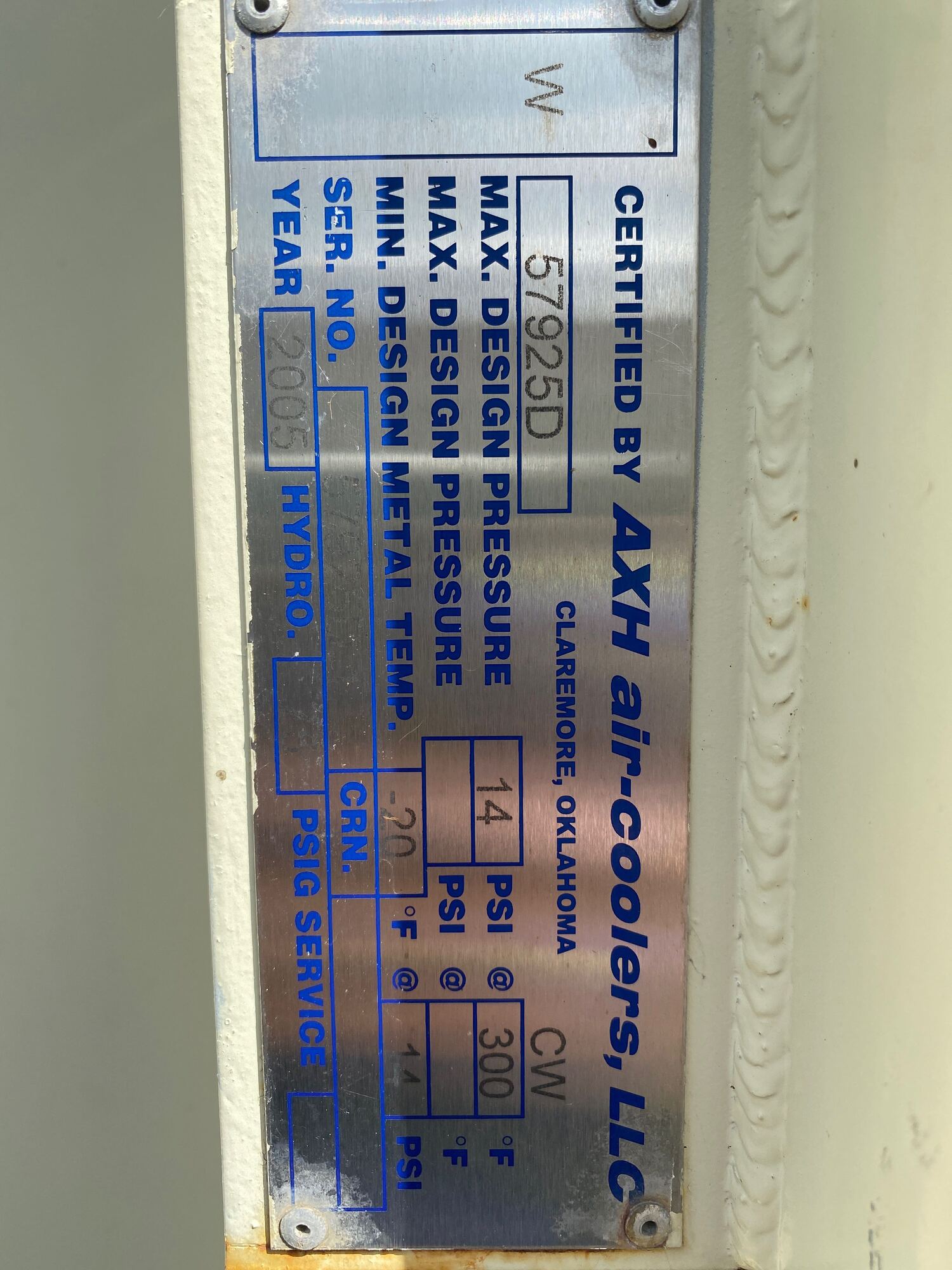 Cooler MAWP Tag*