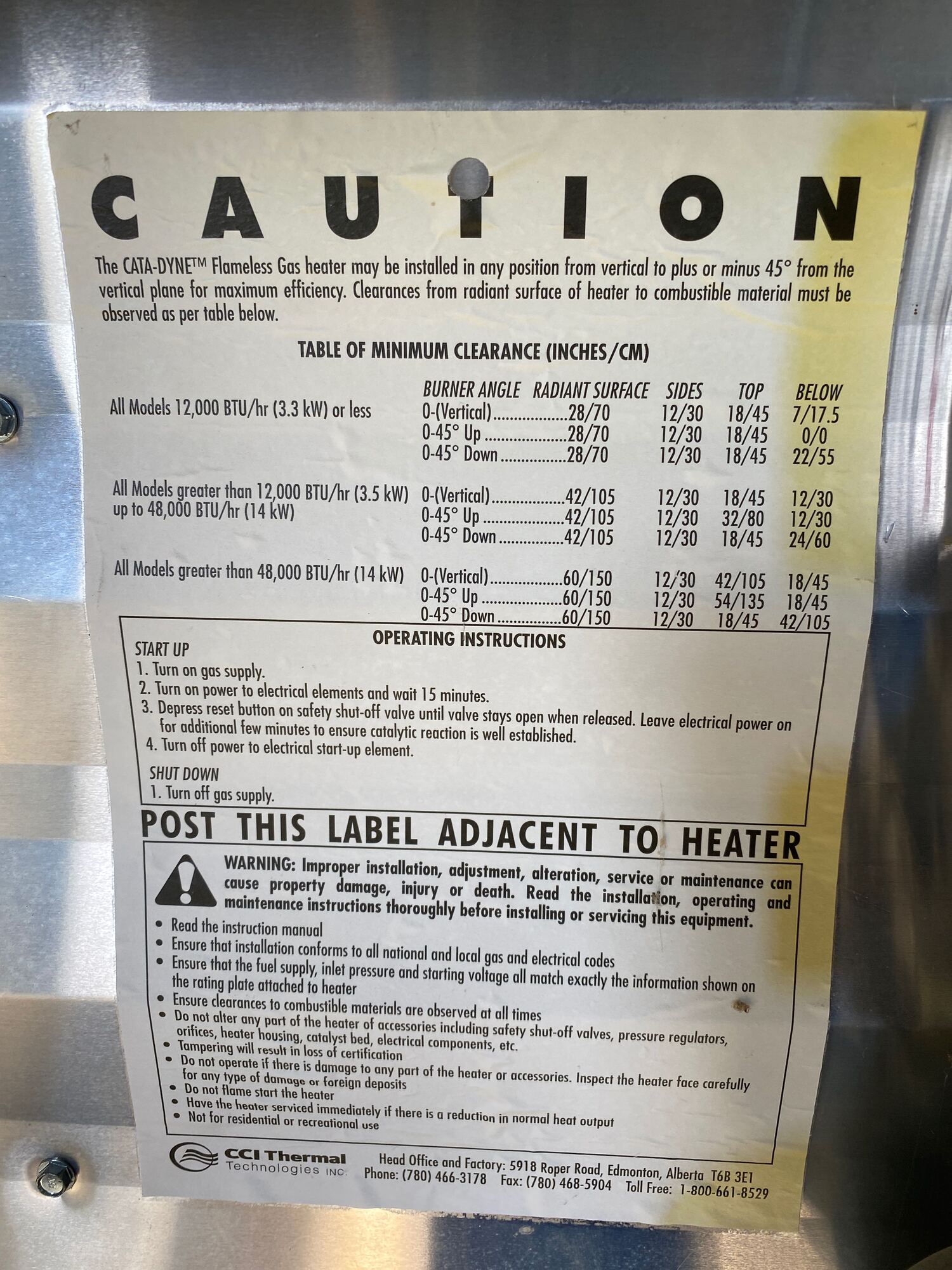 Max design pressure: 14 Psi @ 300º F