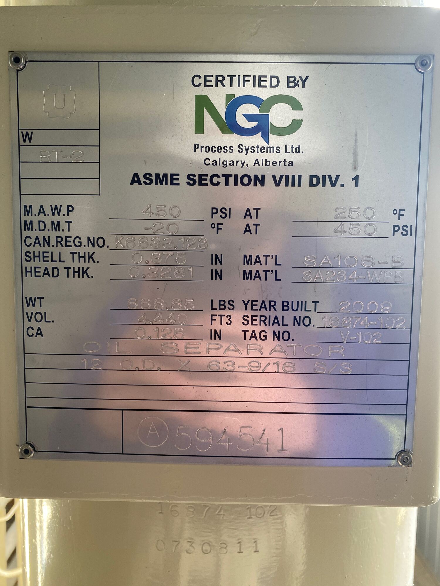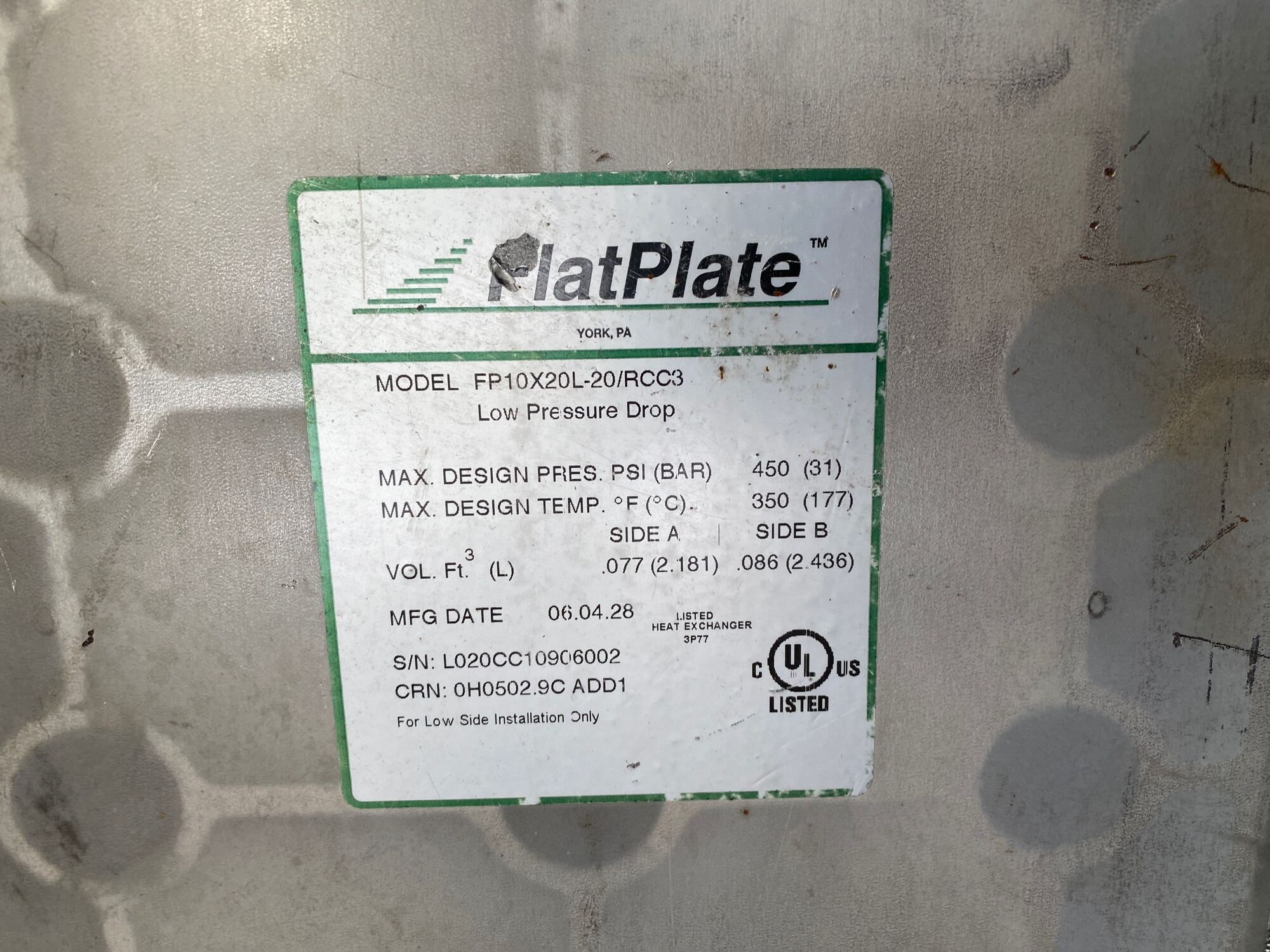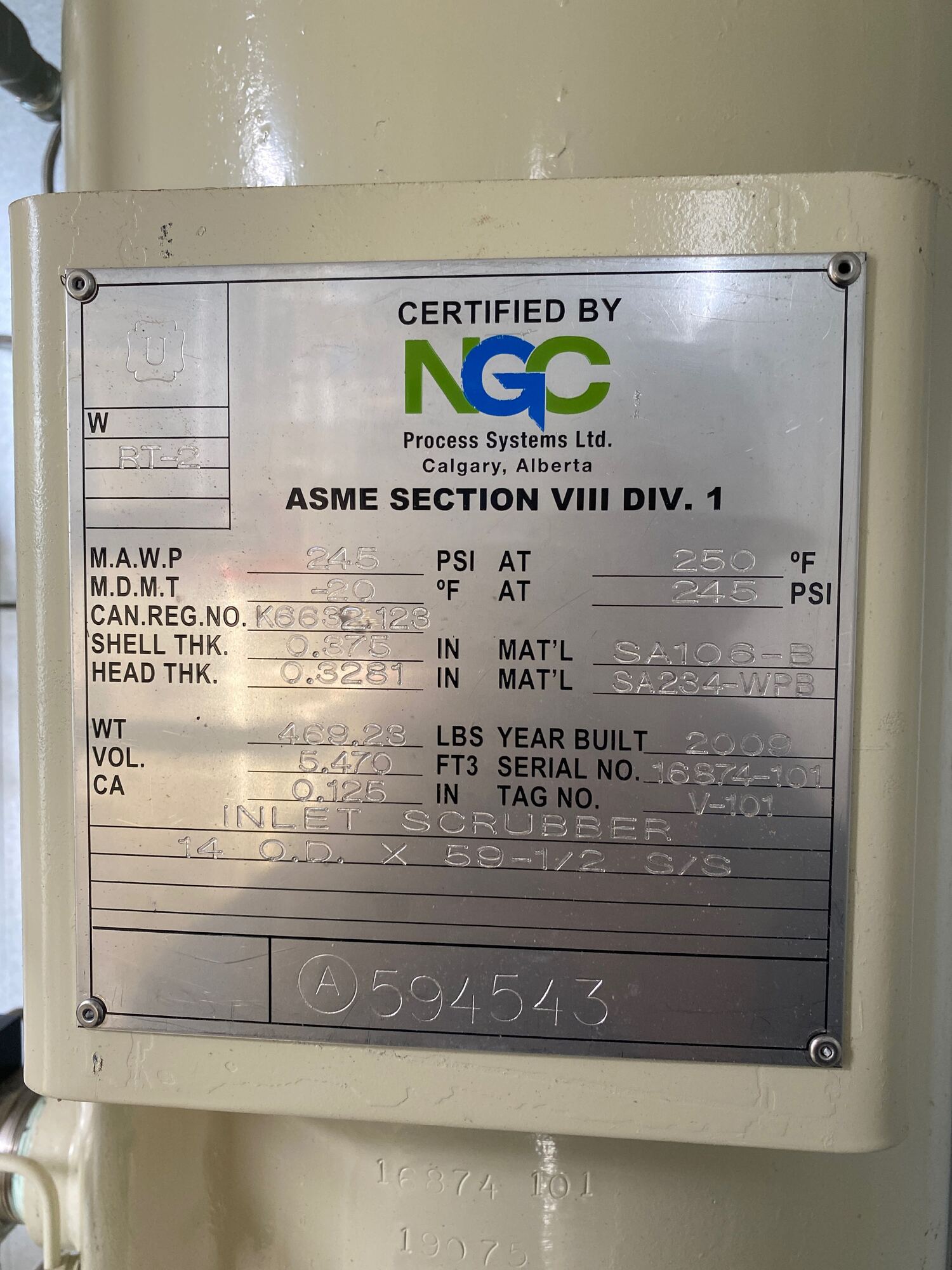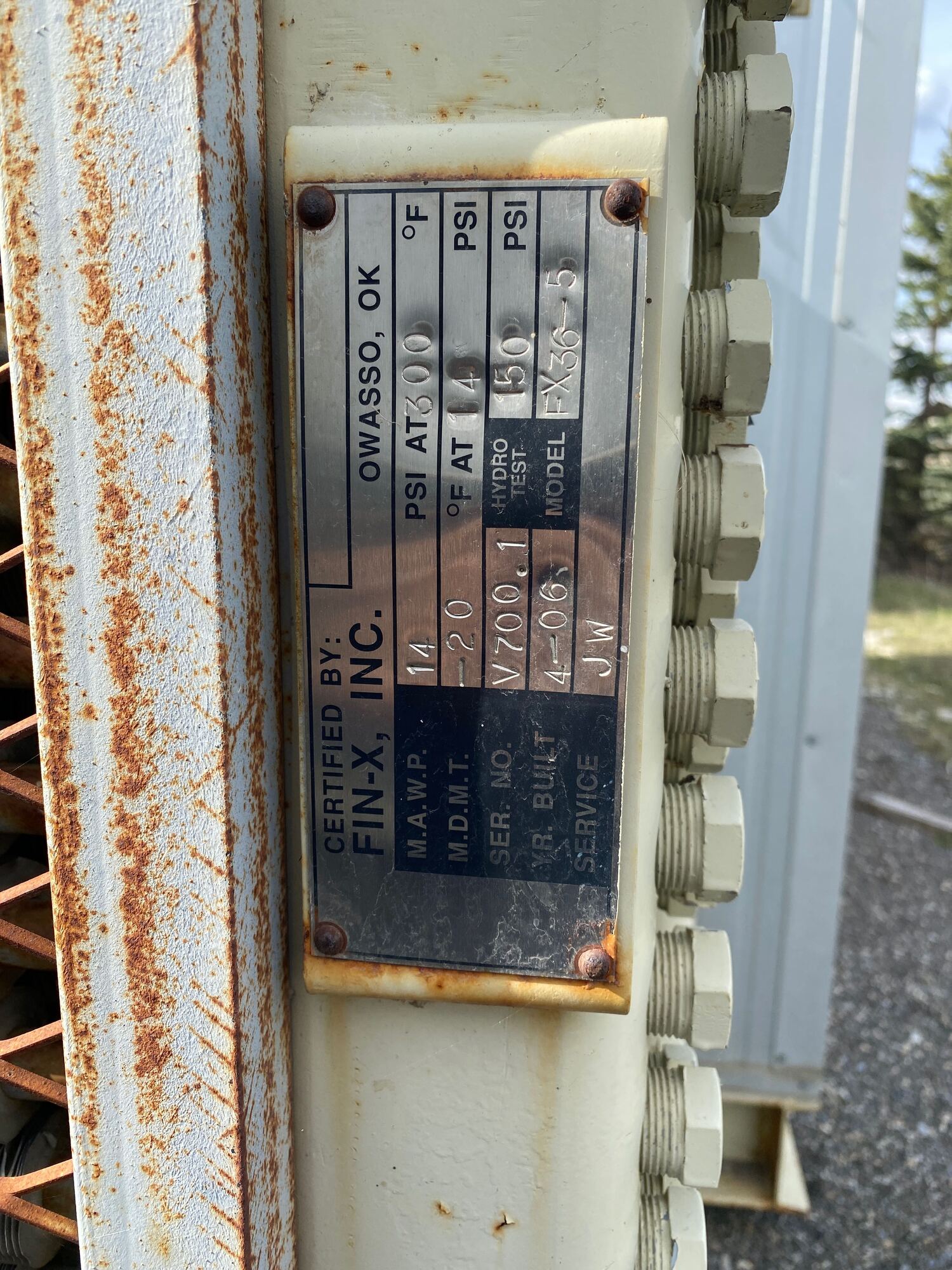 Cooler MAWP Tag*