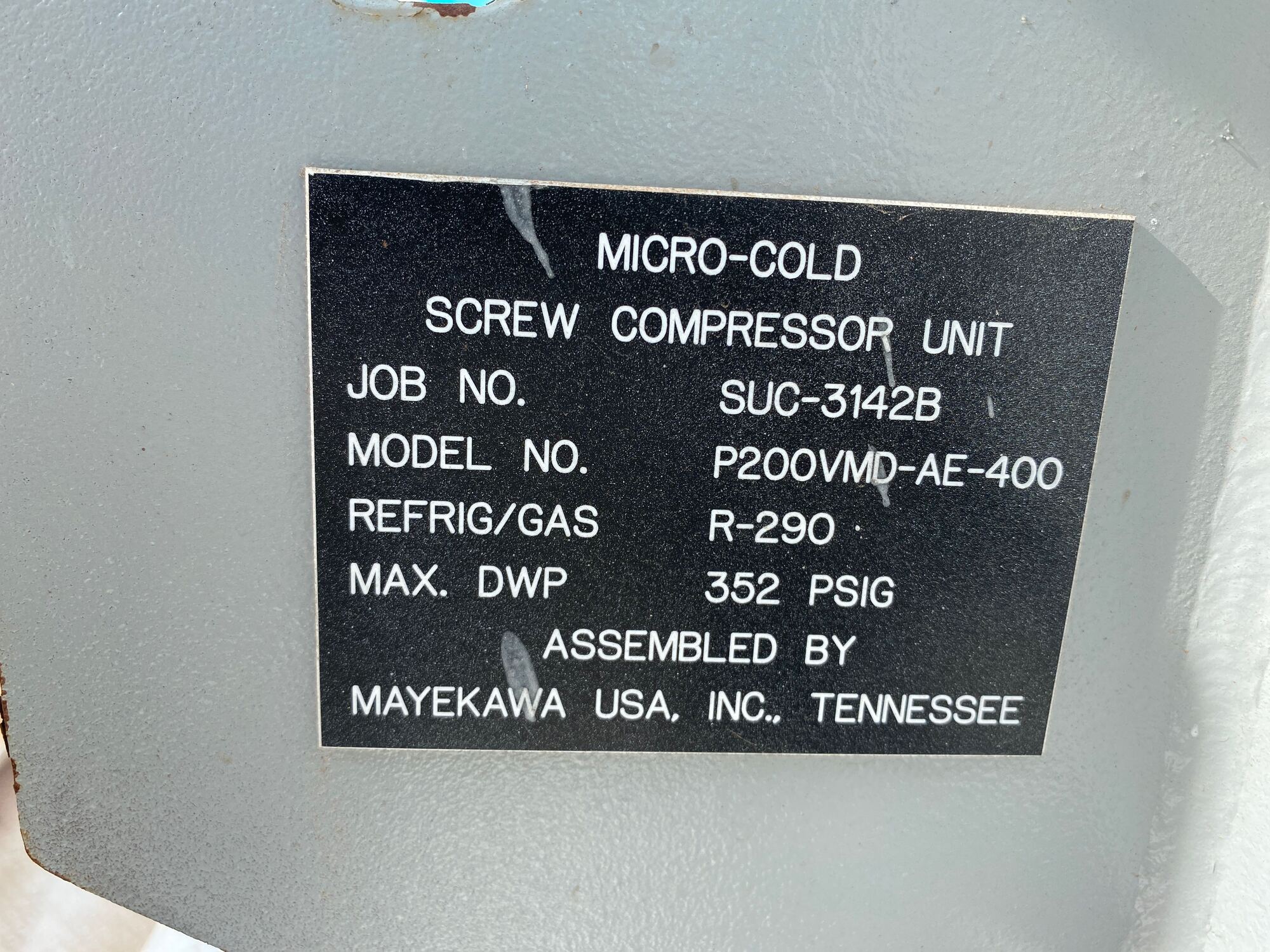 Screw Compressor Unit Tag*