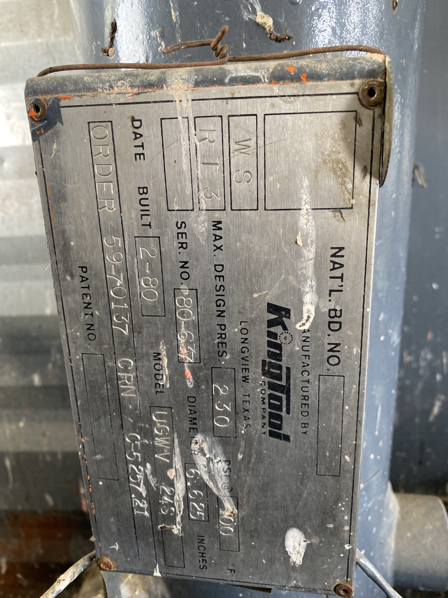 MAWP: 230 PSI at 100°F