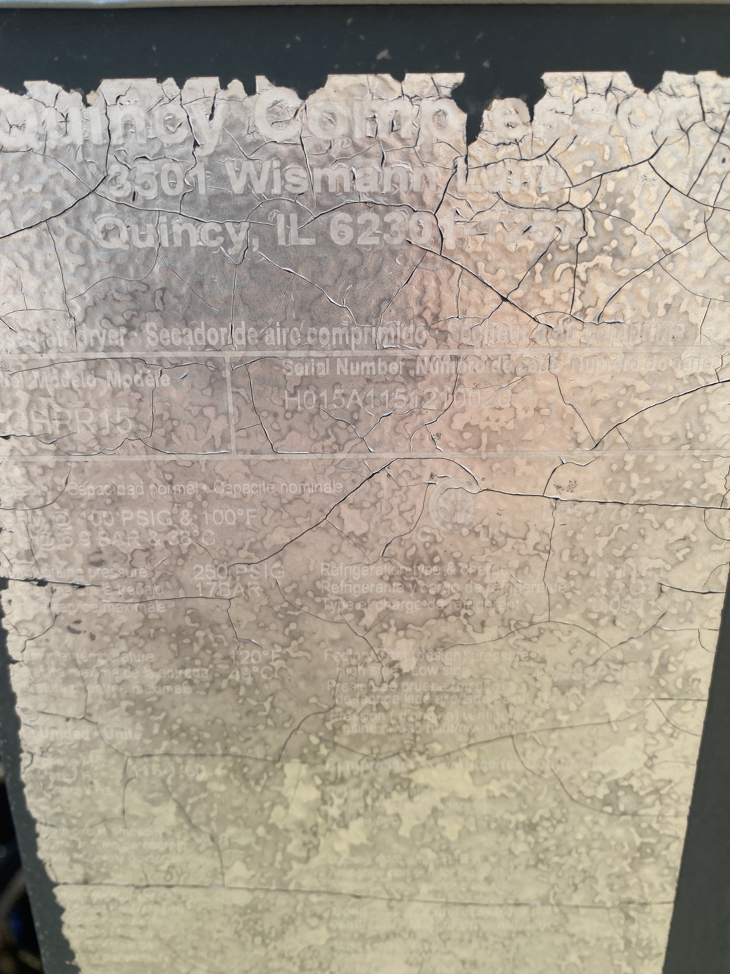 Quincy Air Dryer Tag*
