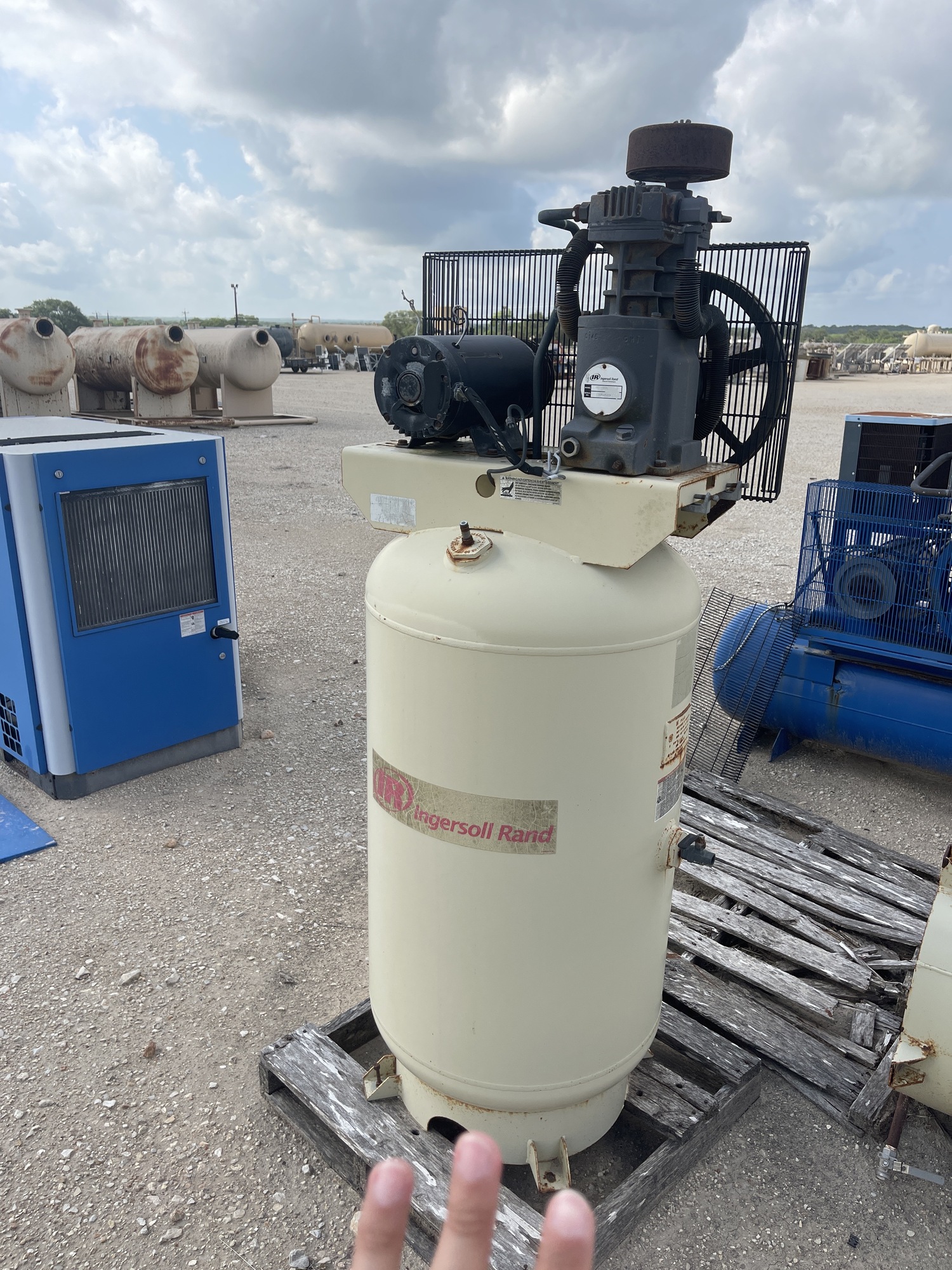 x3 Identical Vertical Cream Air Compressors