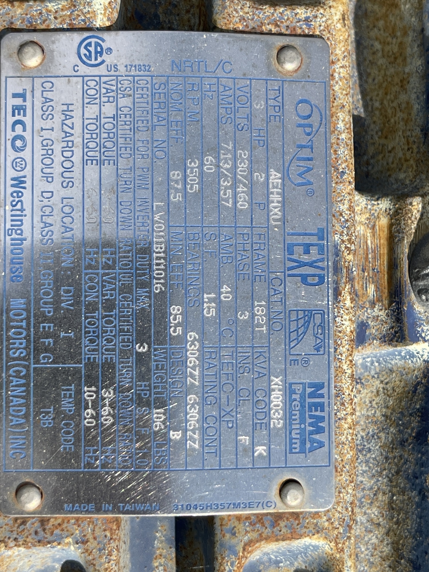 Manufacturer: TECO-Westinghouse Motors (Canada) Inc.