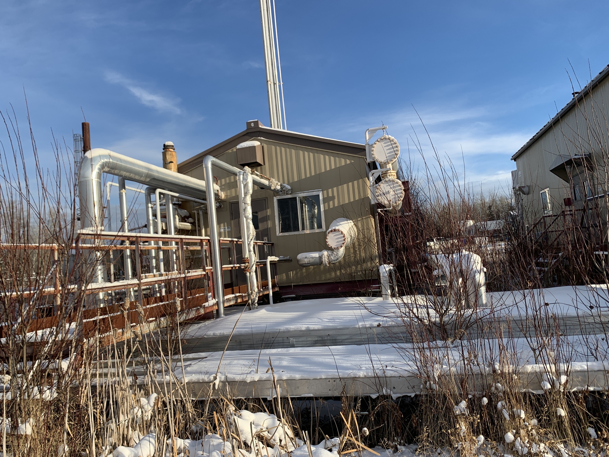 20’x45’ Compressor building with a single stage Mycom MC360 compressor and 325 hp Caterpillar engine, and 3’x40’ gas chiller located at 11-22-087-07W6 (Facility)