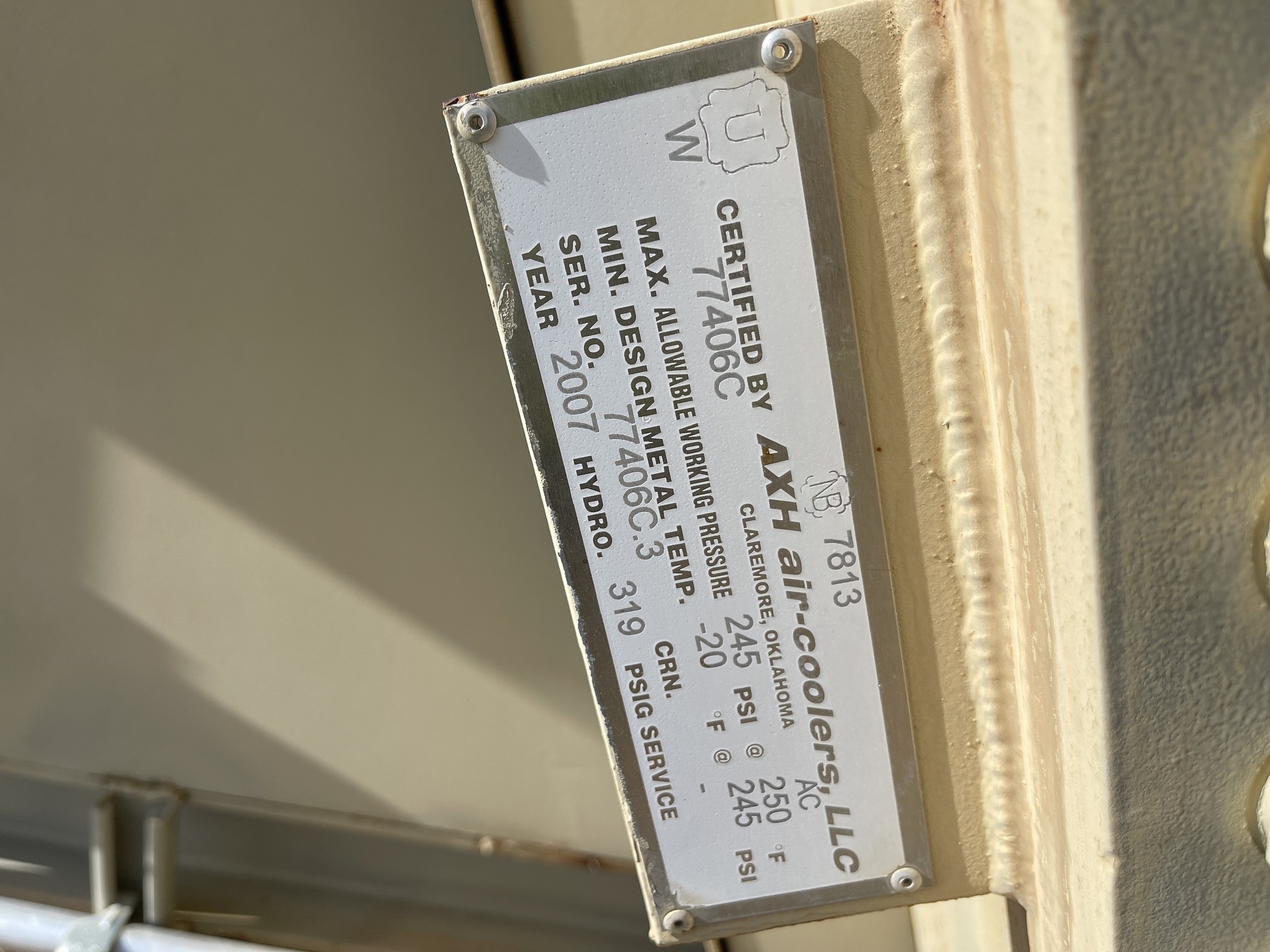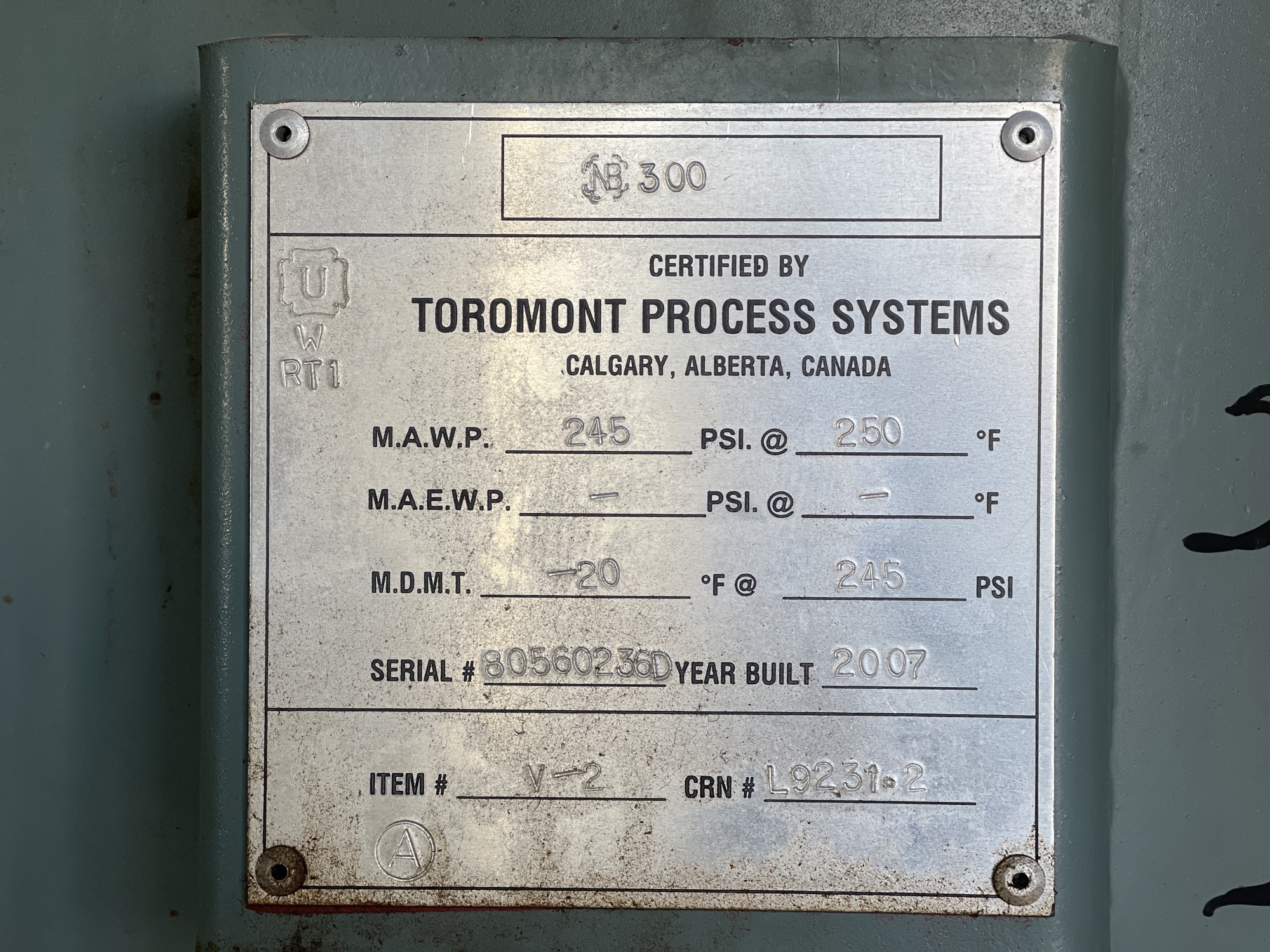 MAWP: 245 PSI @ 250 F