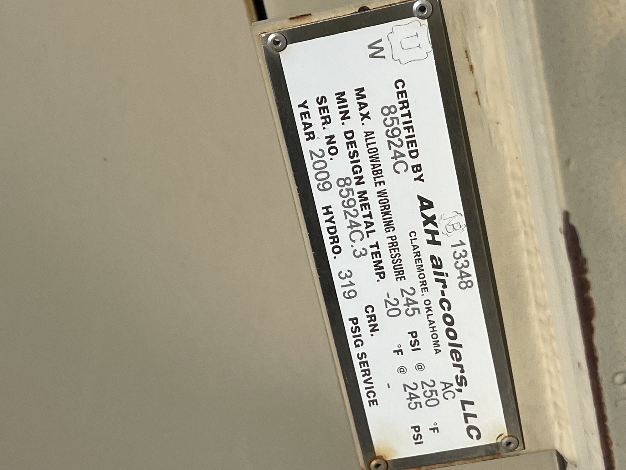 MAWP: 245 PSI @ 250 °F