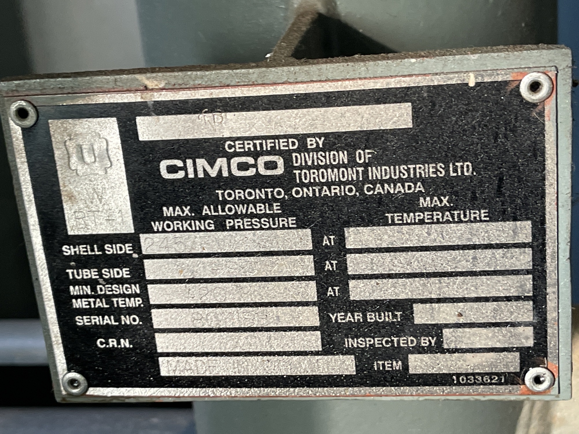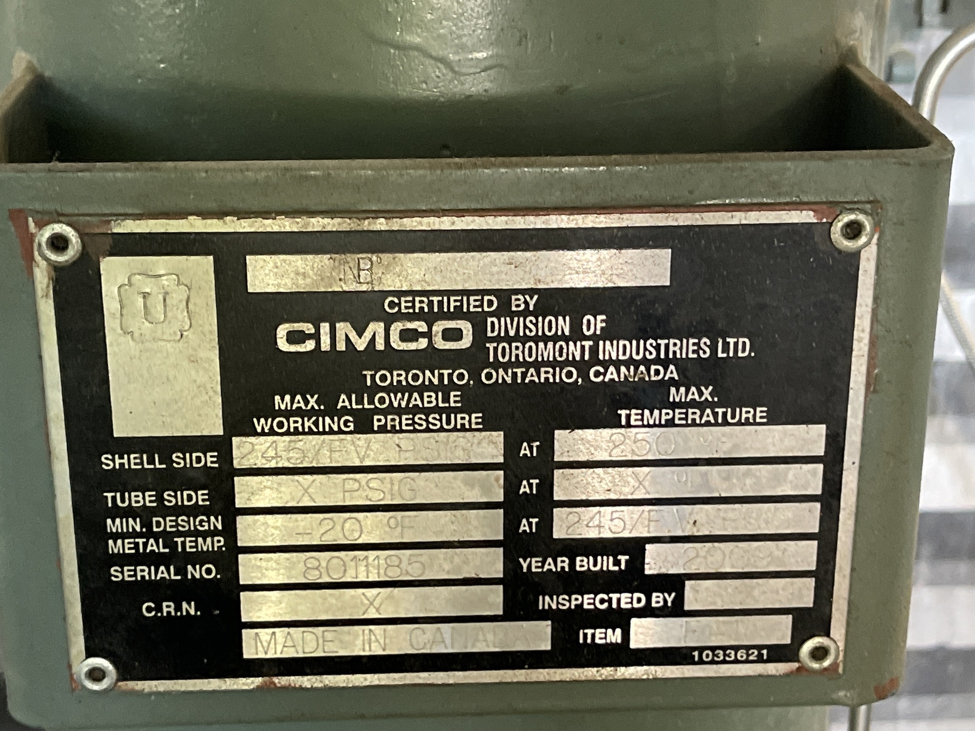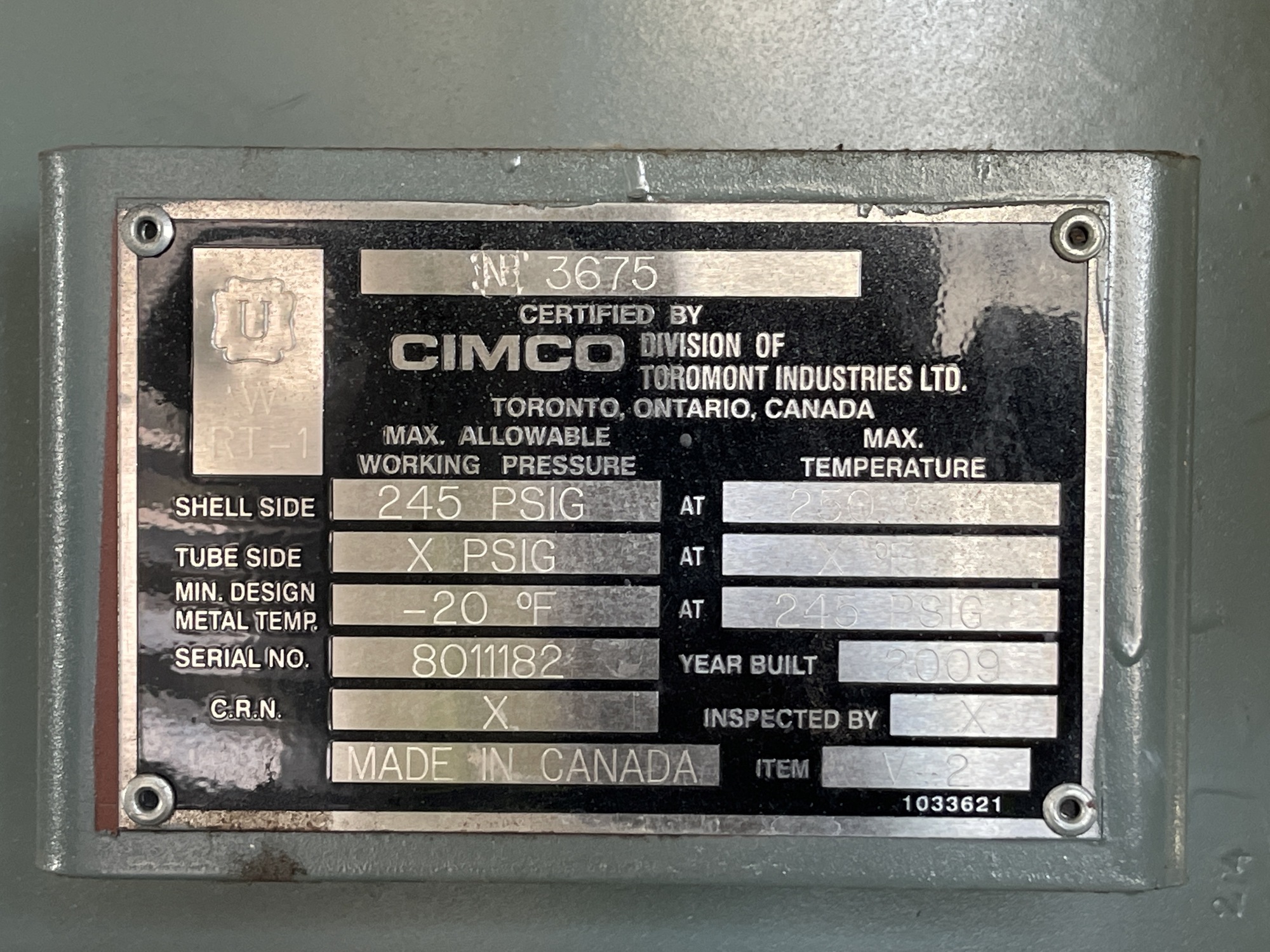 MAWP: 245 PSIG @ 250 °F
