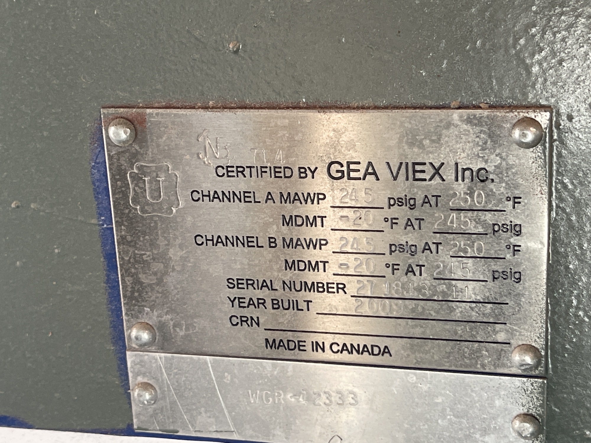 Channel B MAWP: 245 PSIG @ 250 °F