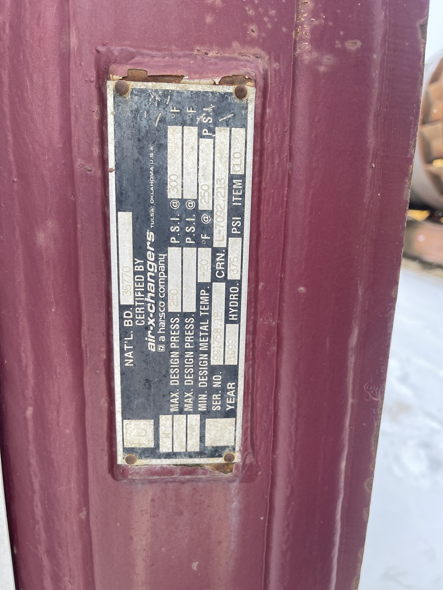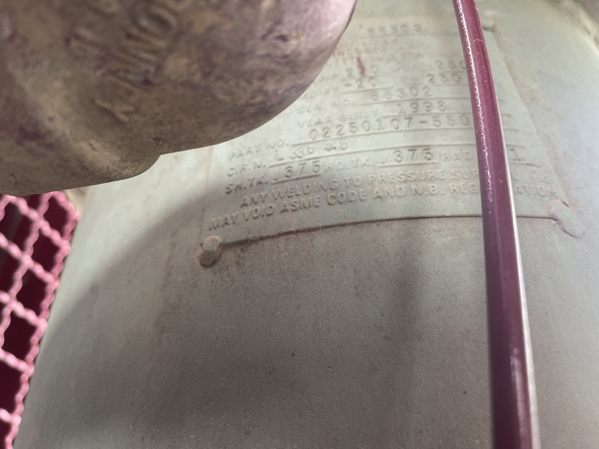 MAWP: 250 PSI at 250 F