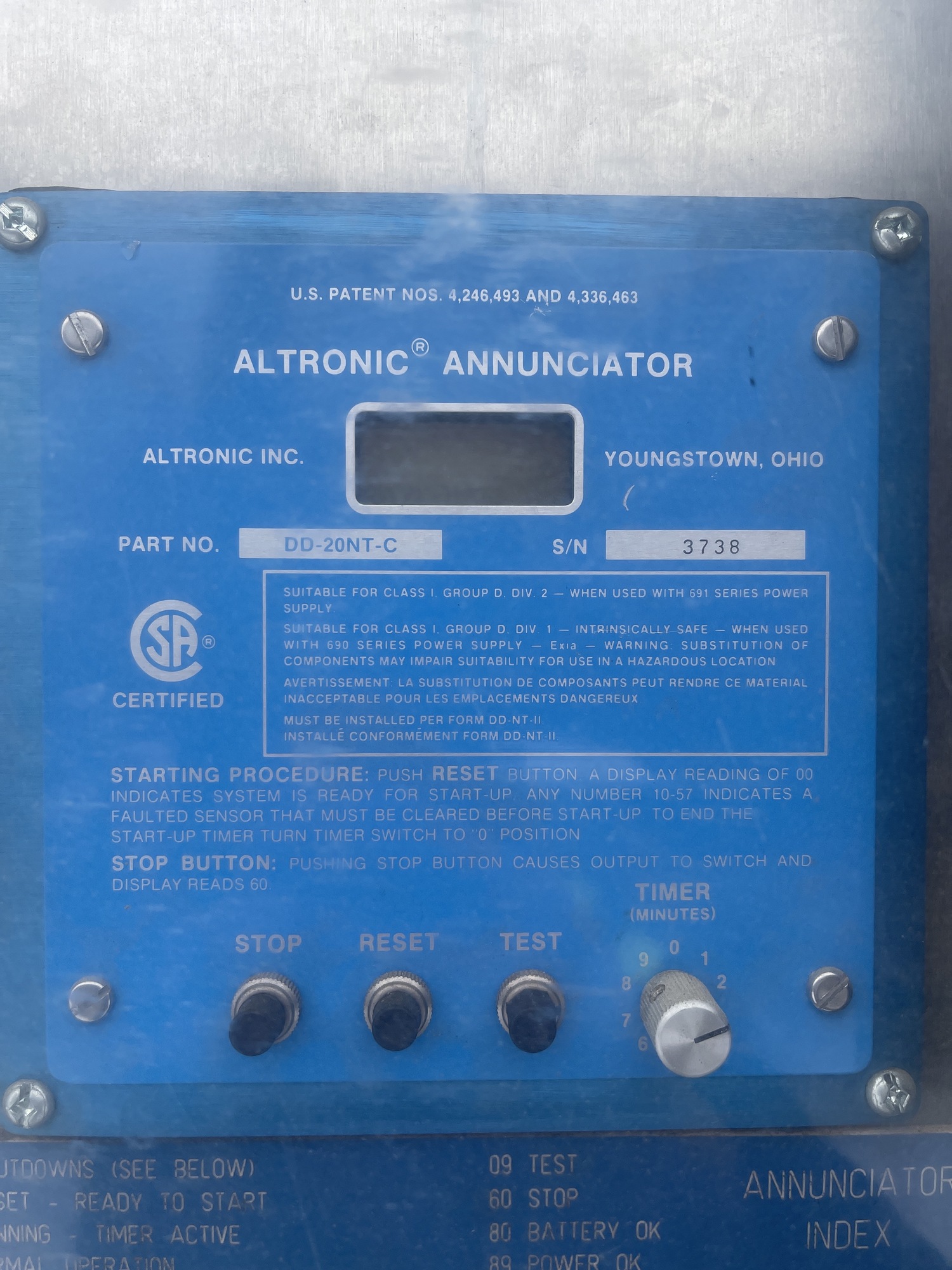 Model #: Altronic Annunciator