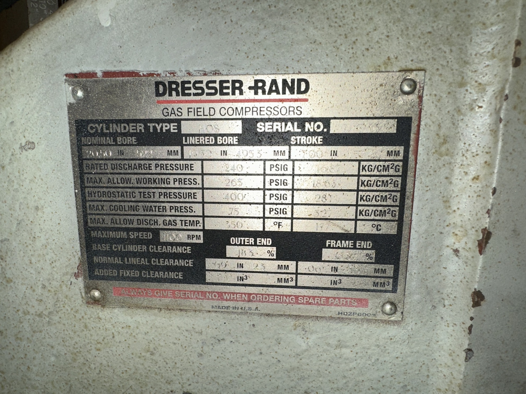 PACKAGER: DRESSER RAND - S/N:7HF114