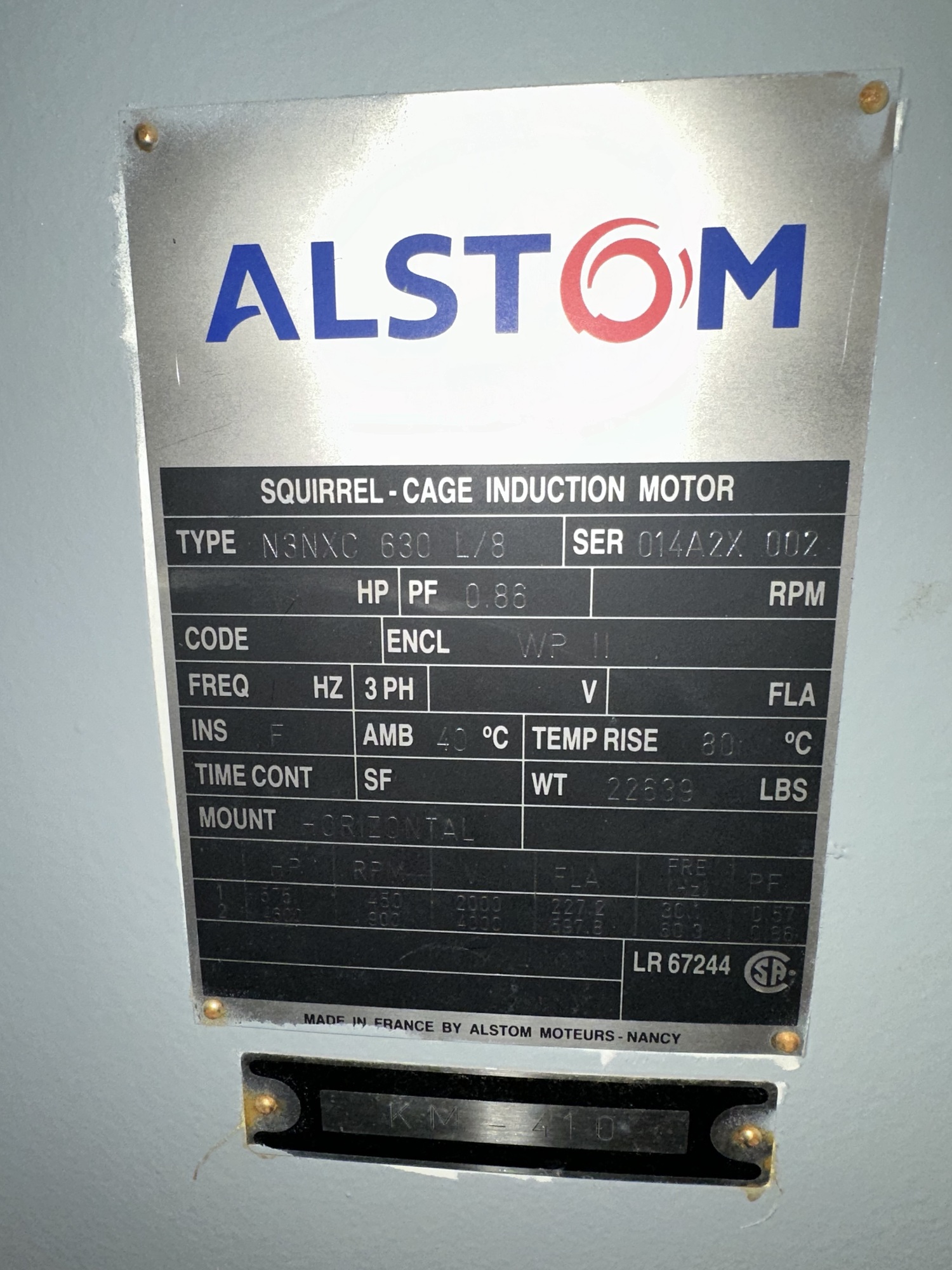 DRIVER: ALSTHOM - SQUIRREL CAGE INDUCTION MOTOR - S/N: 014A2X 002