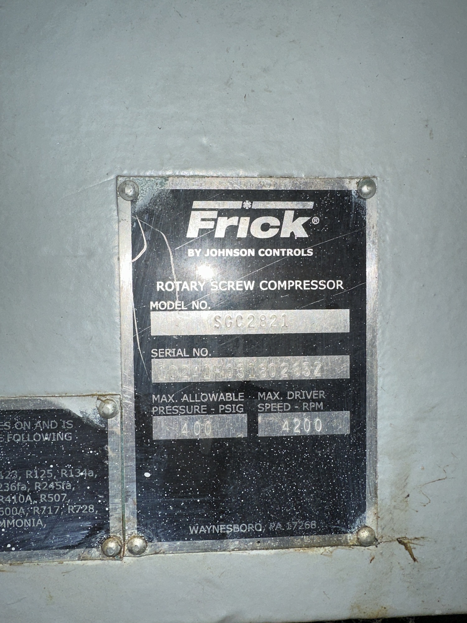 Toshiba 3UL700L142681 Frick SGC2821 Sweet 2-Stage Compressor Package