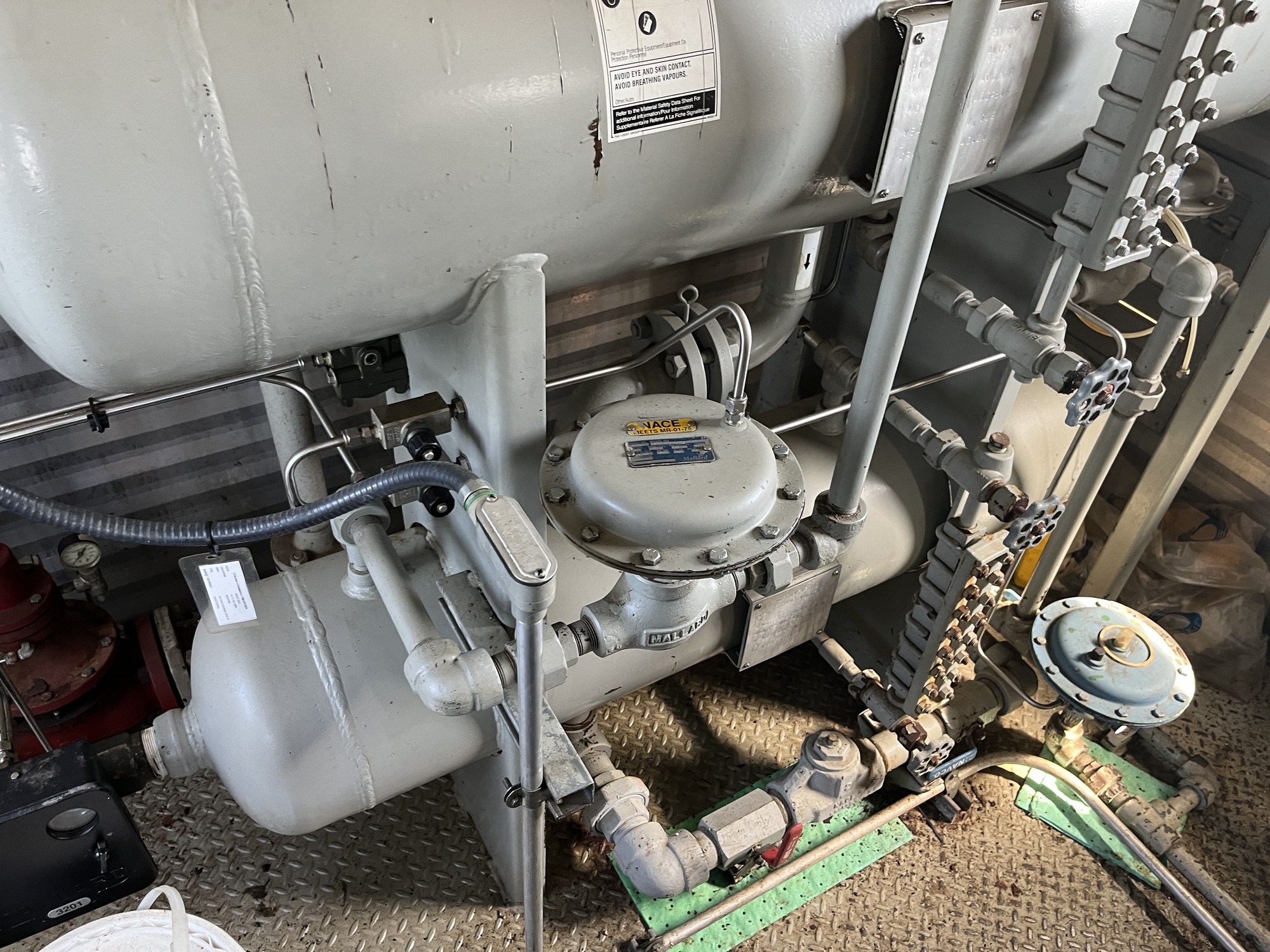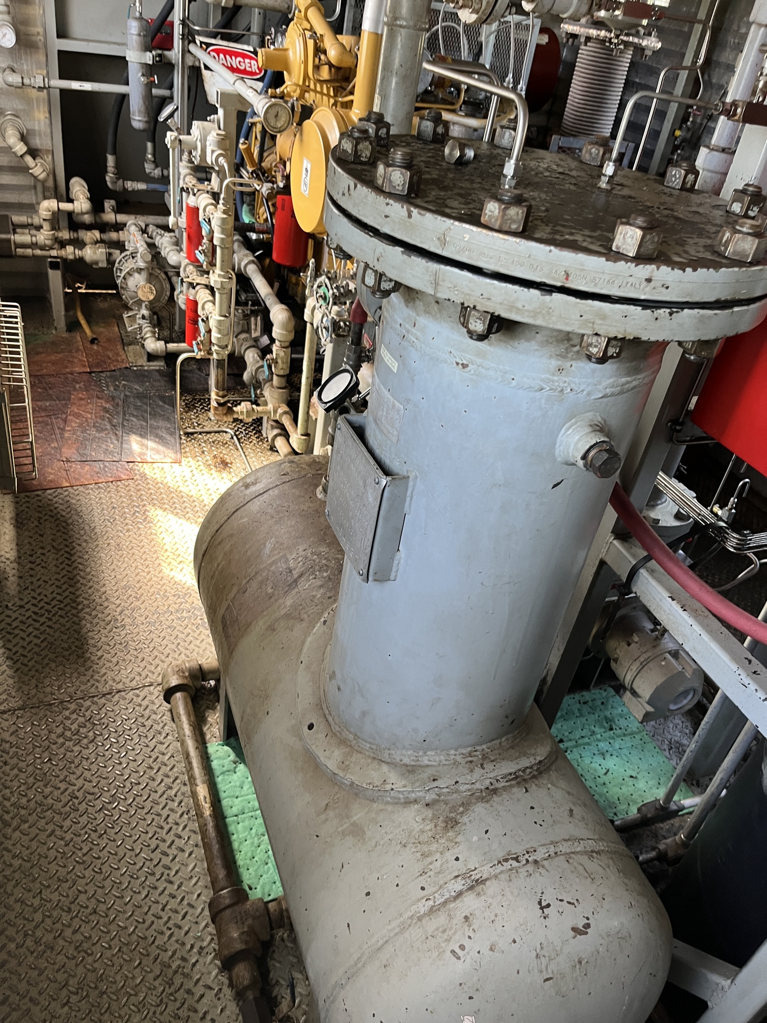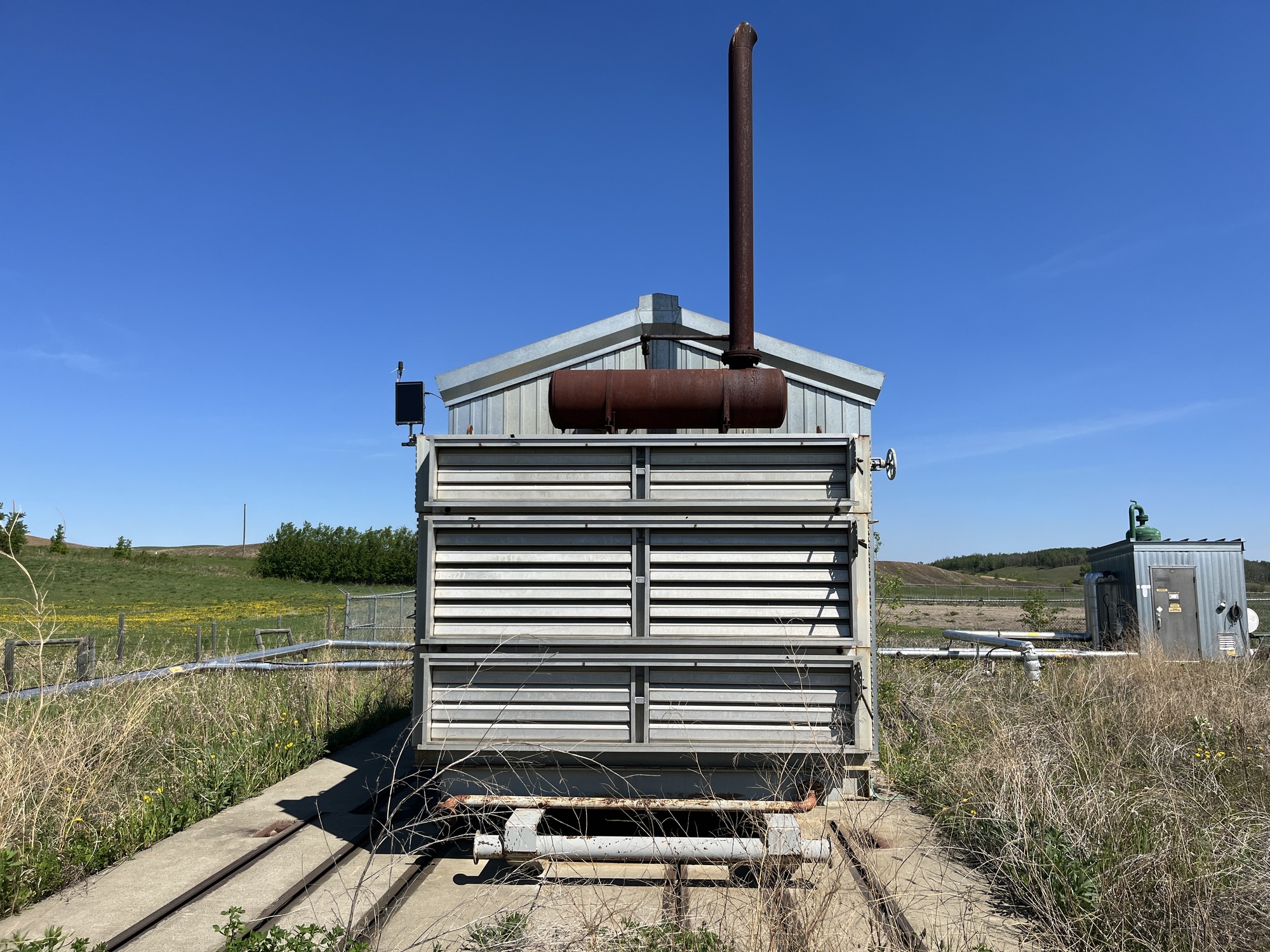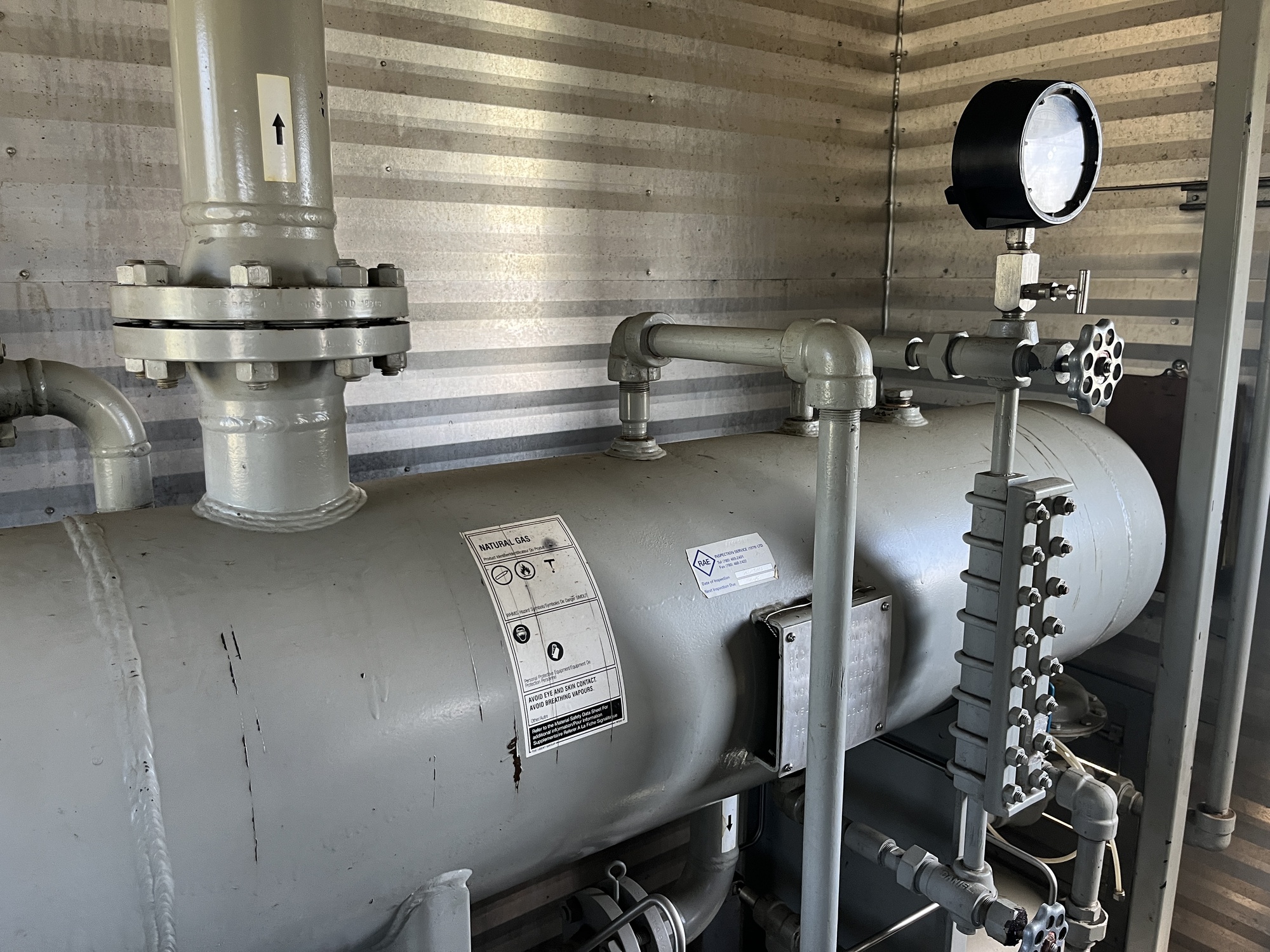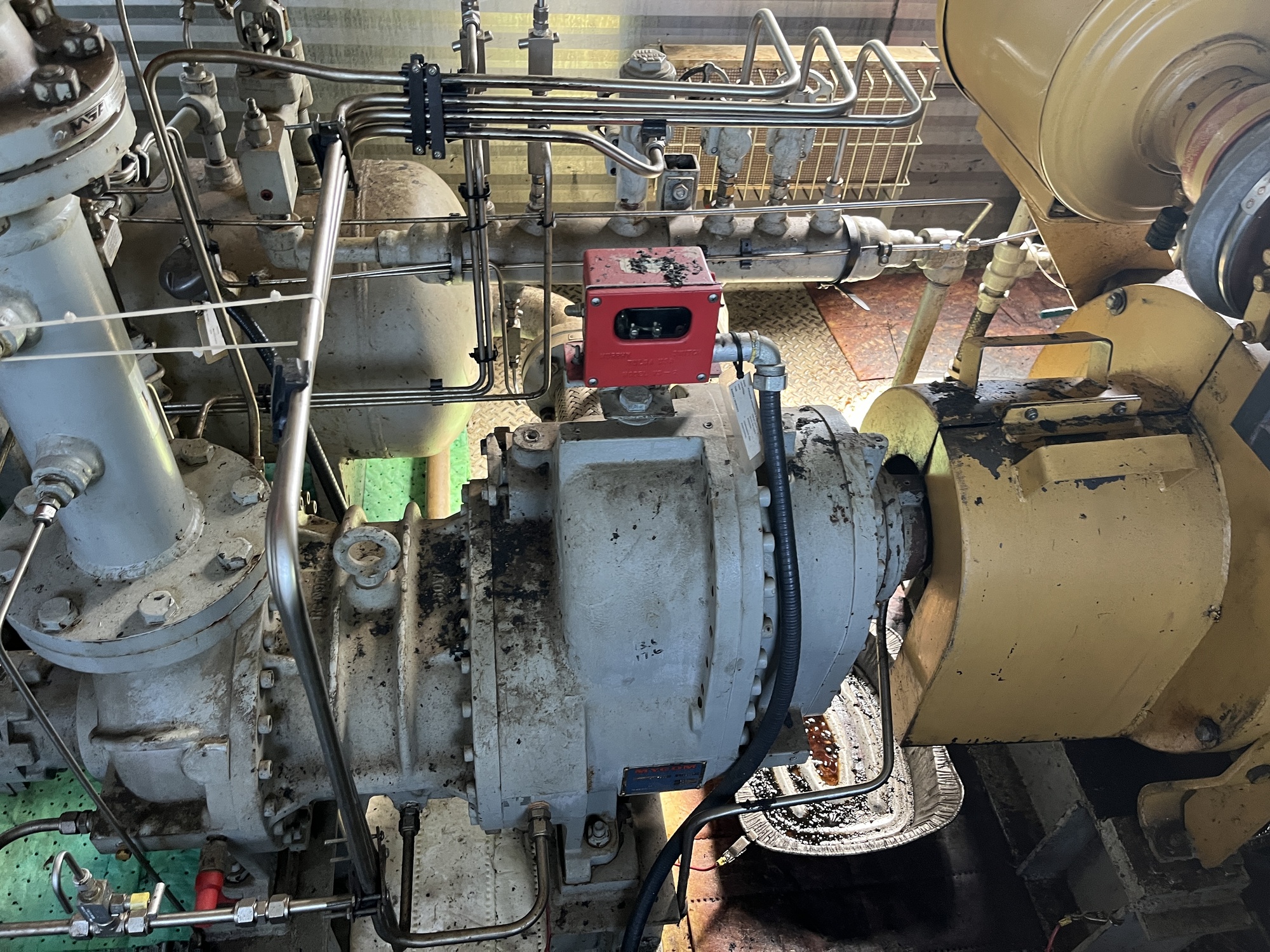 Single stage MYCOM SCV-series screw compressor with inline 10.5L 6-cylinder Caterpillar 3306 engine driver inside 10’x25’ building on 15’x40’ cement pad located at FA/16-11-058-13W4