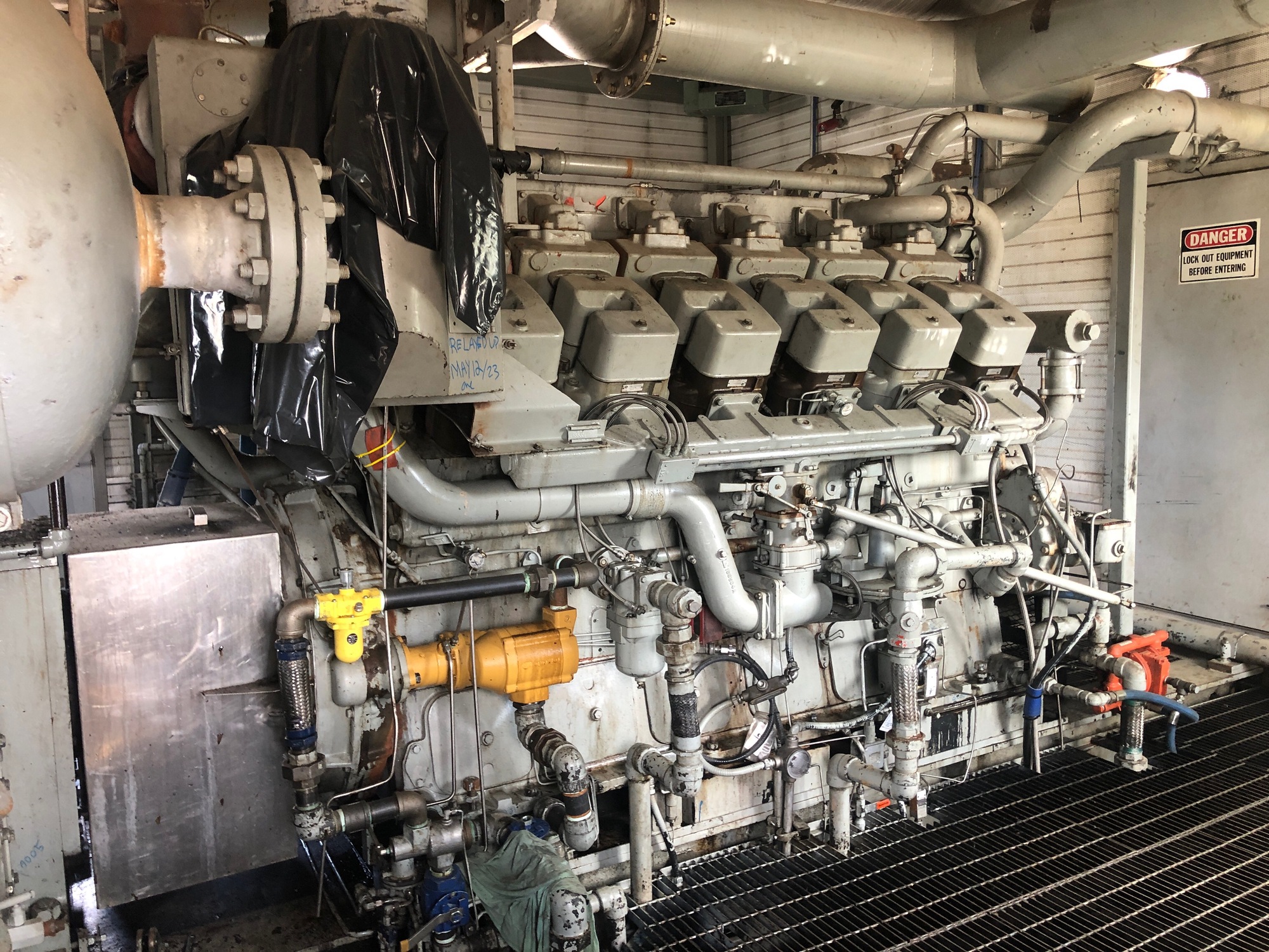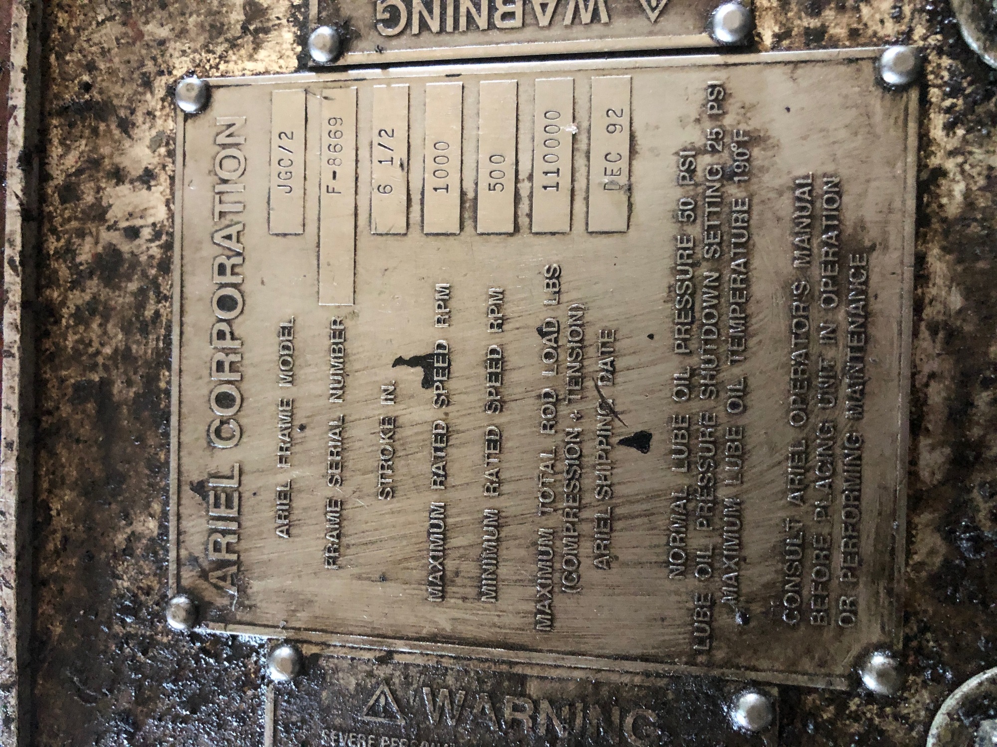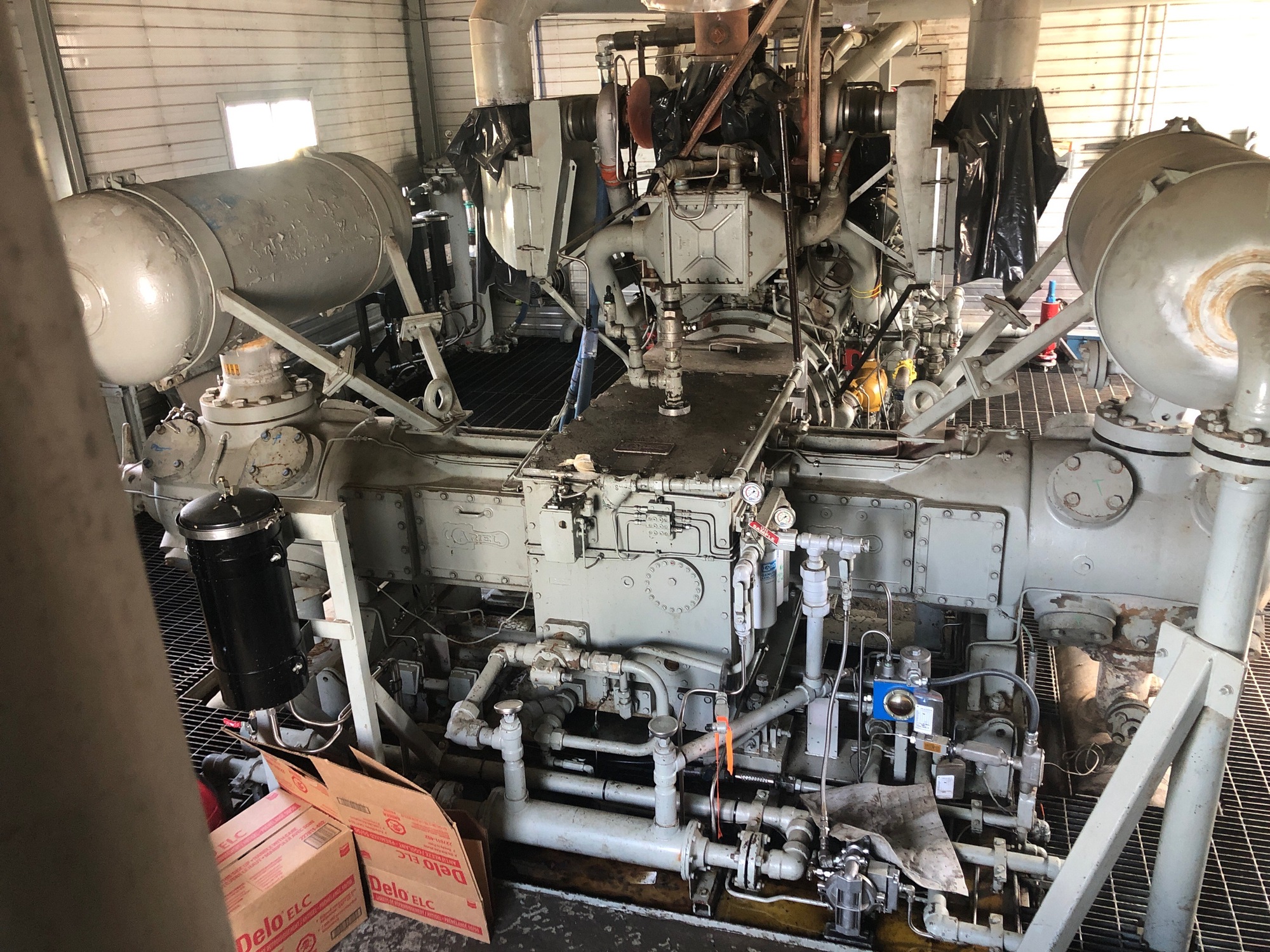 12 cly Waukesha GSIU 2 throw Ariel JGC 2 frame F8669 and aftermarket oil filters.