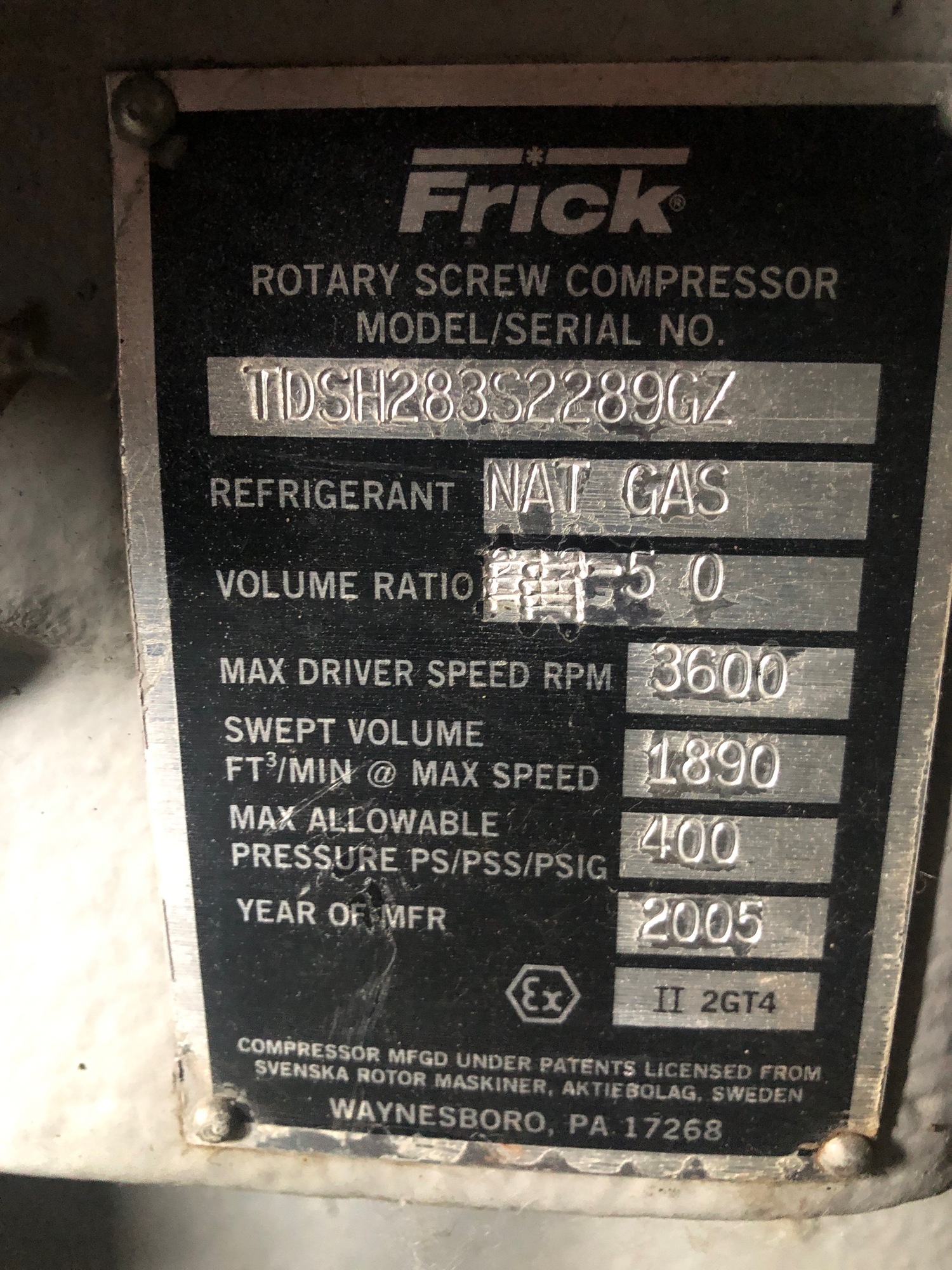 Frick S/N: S2289GZ