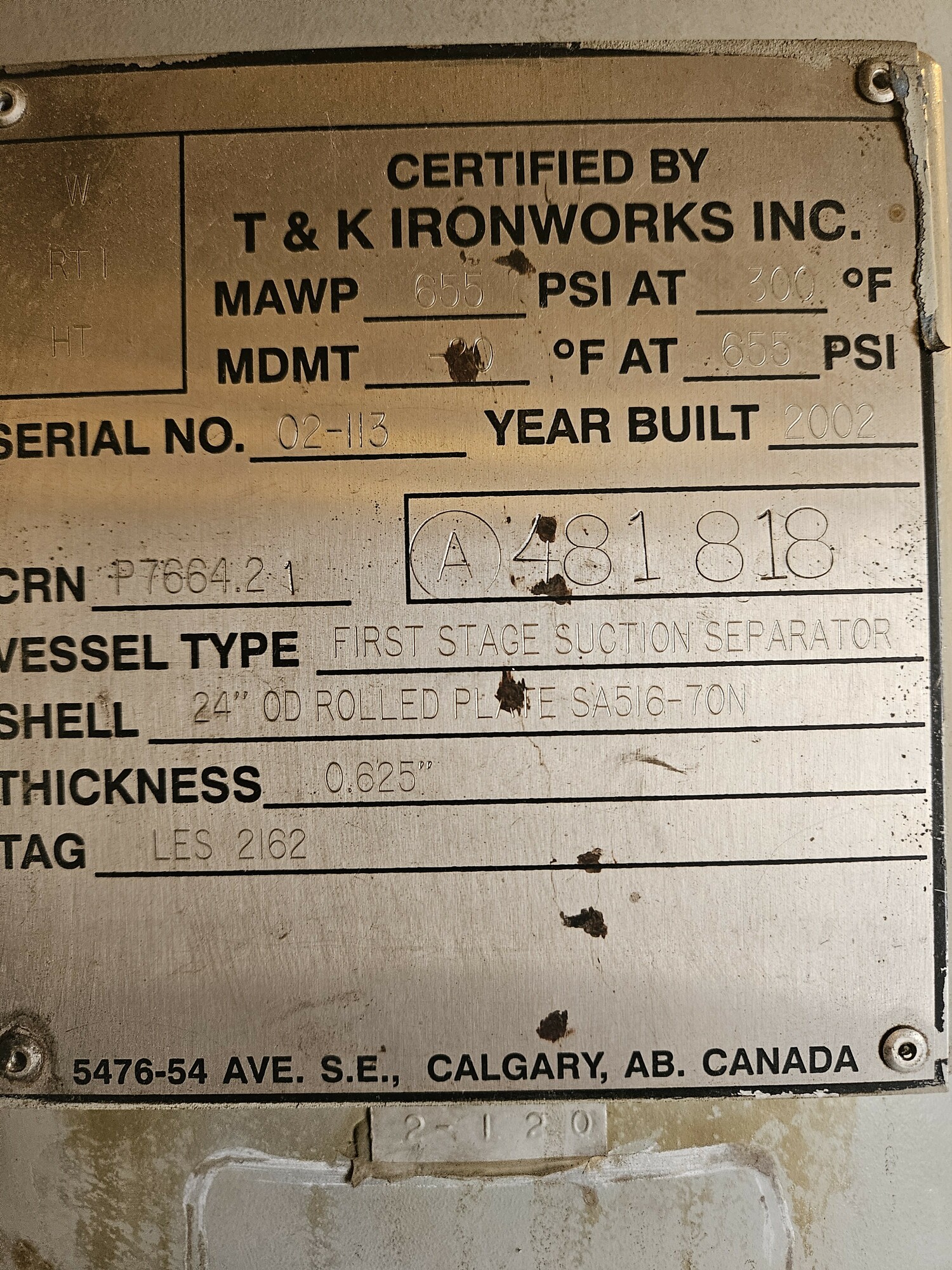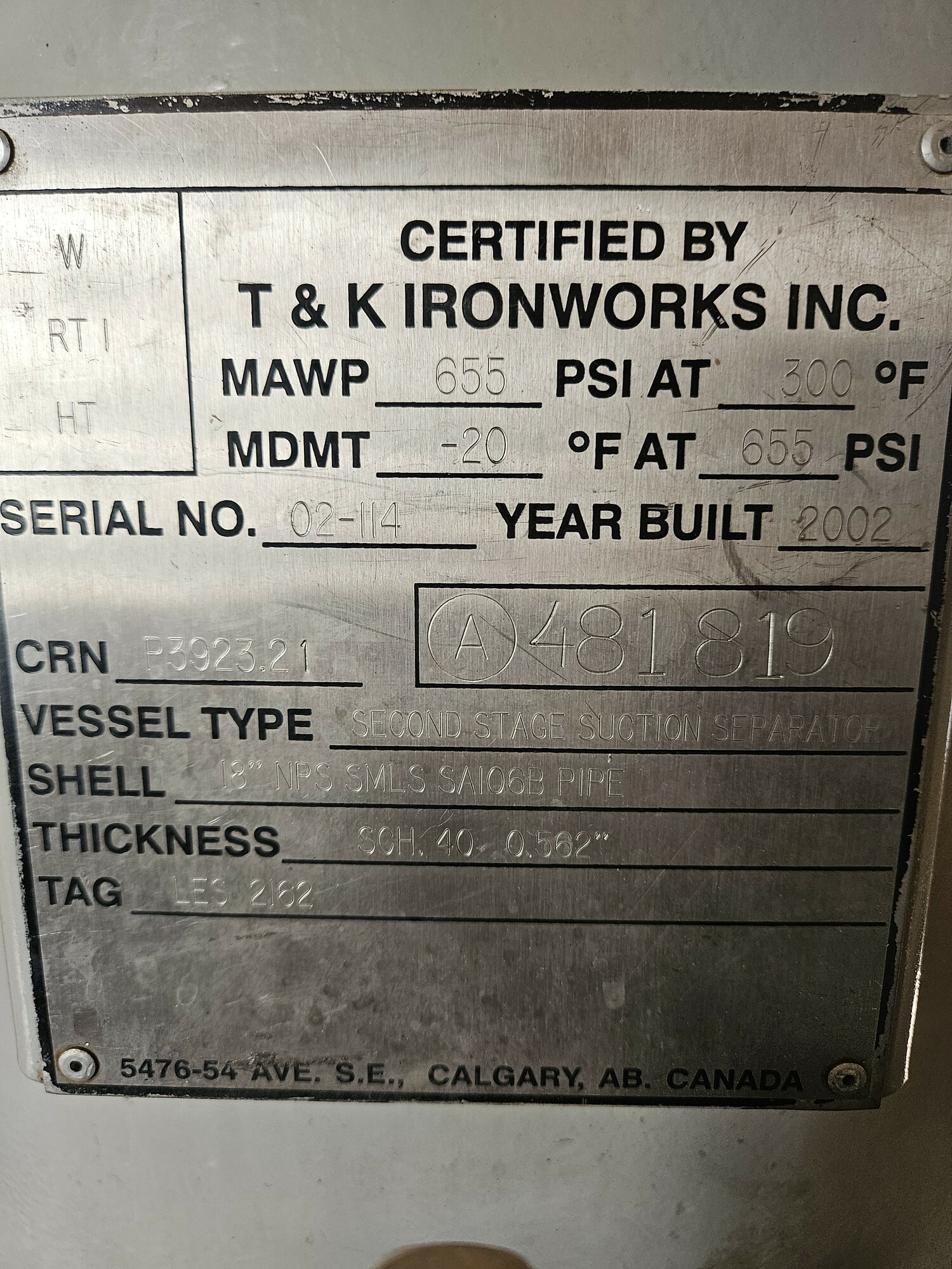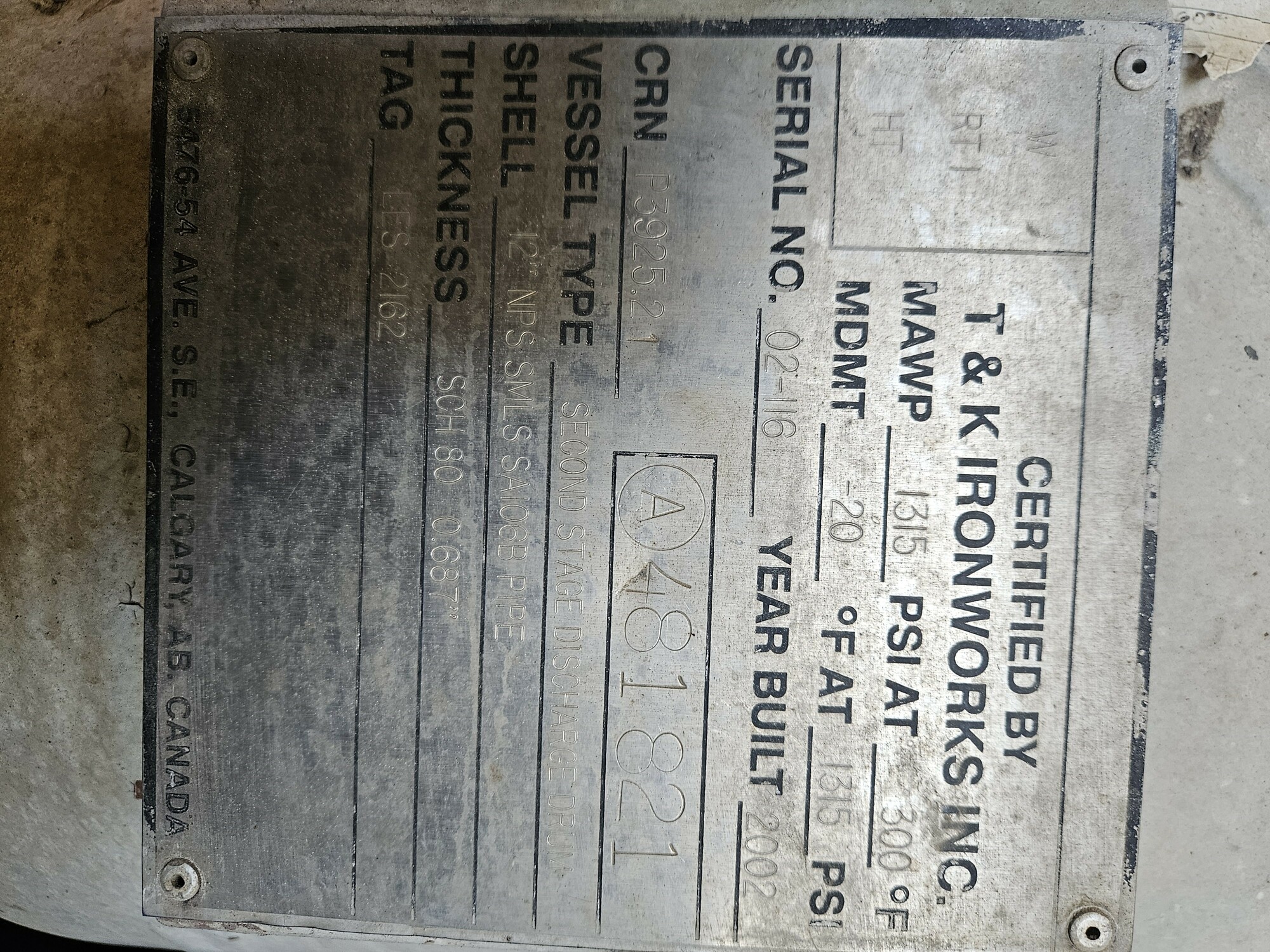 MAWP (PSI) 0