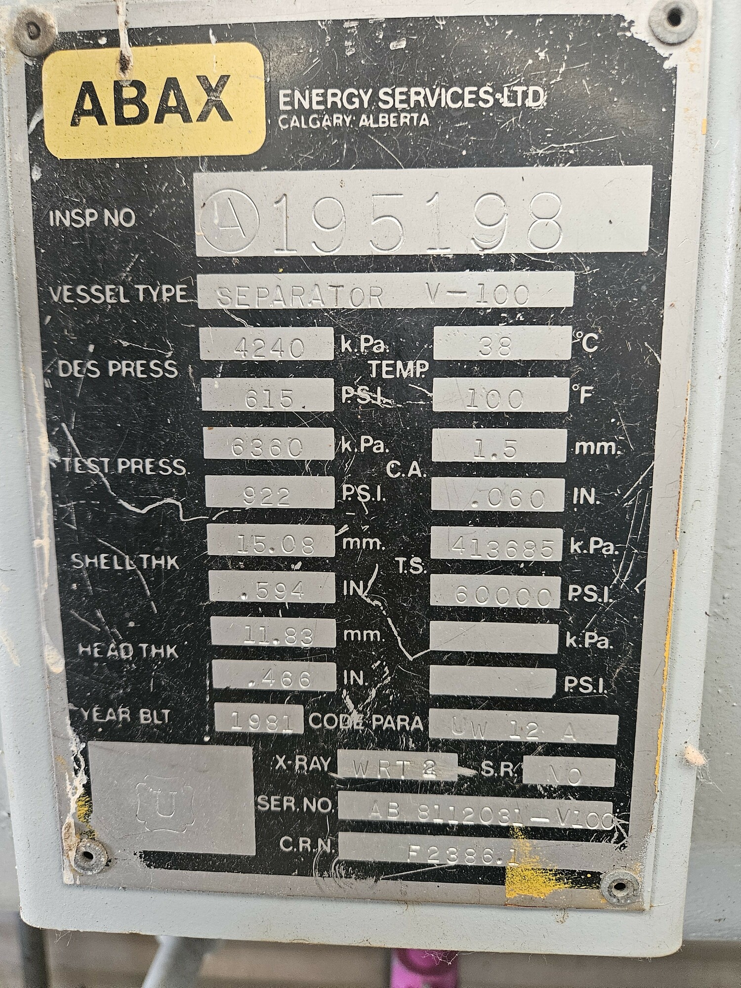 MAWP (PSI) 0