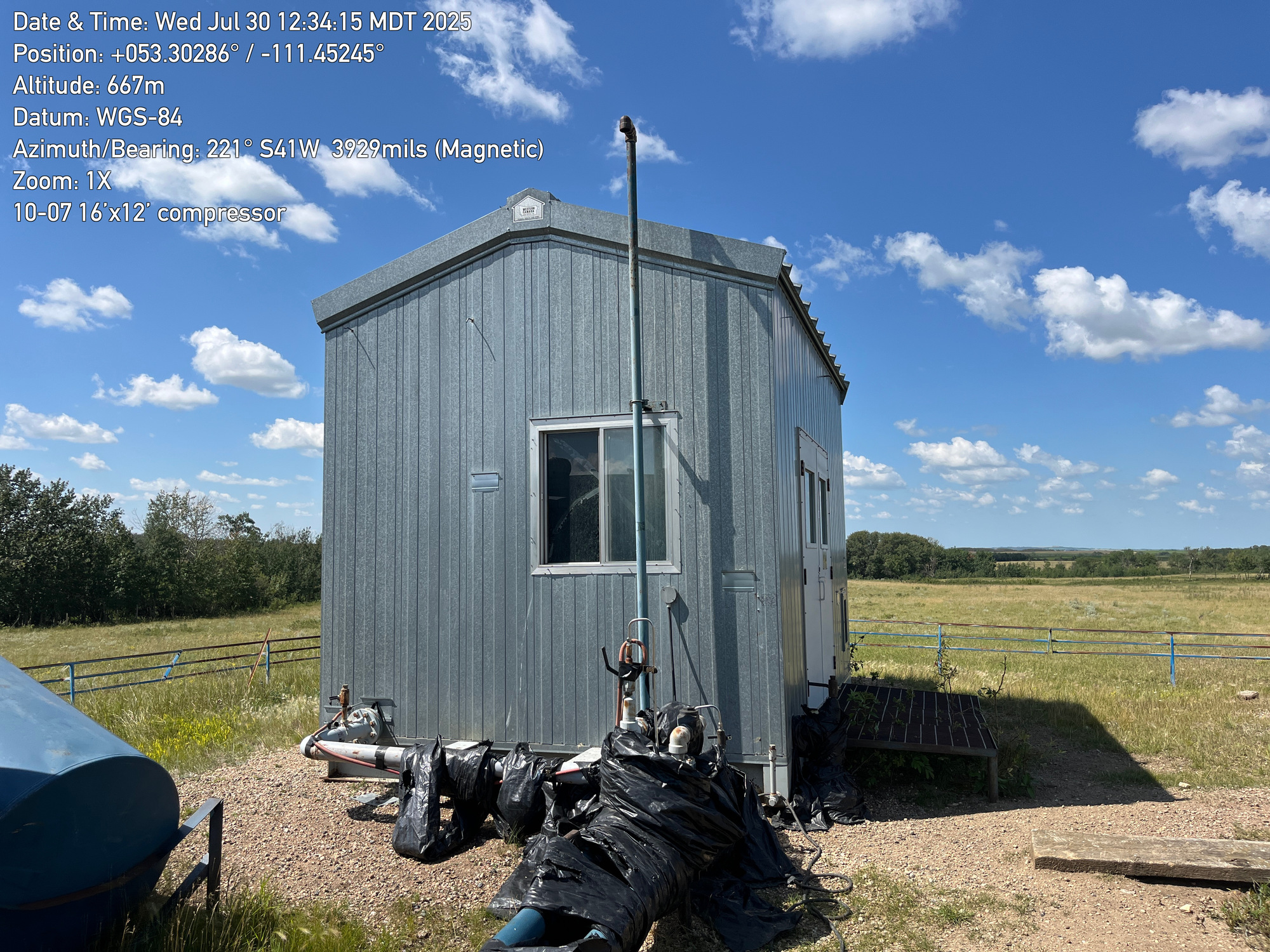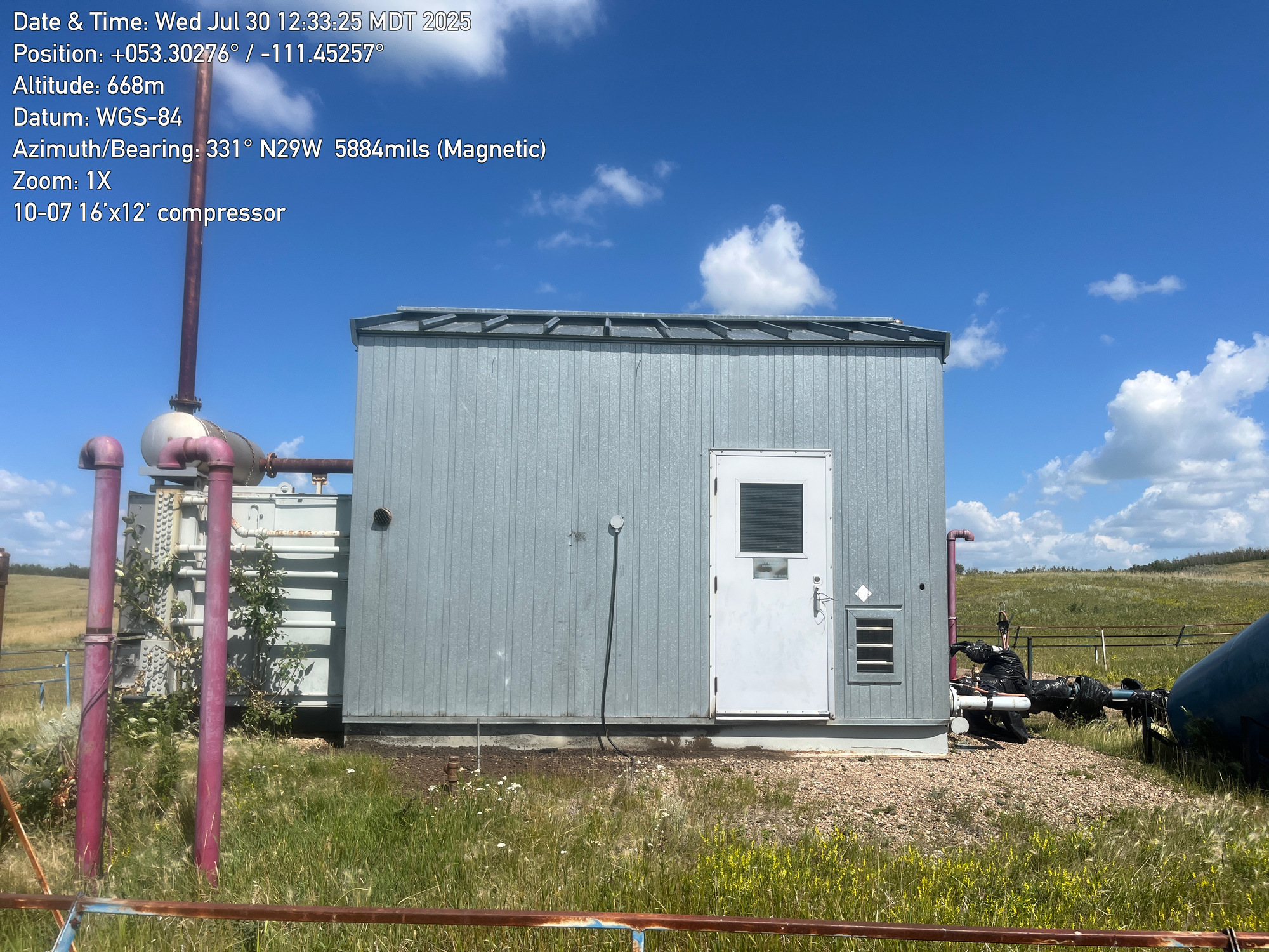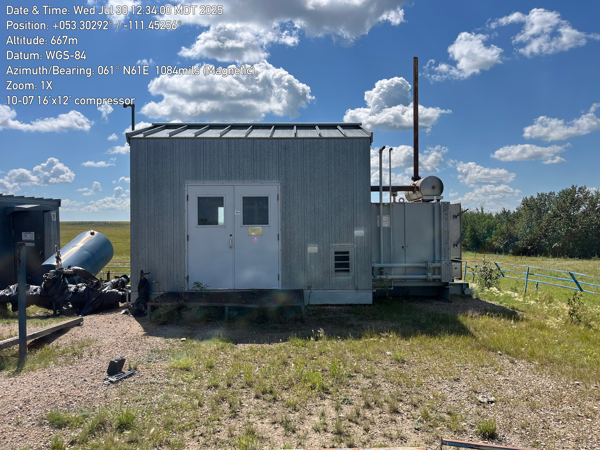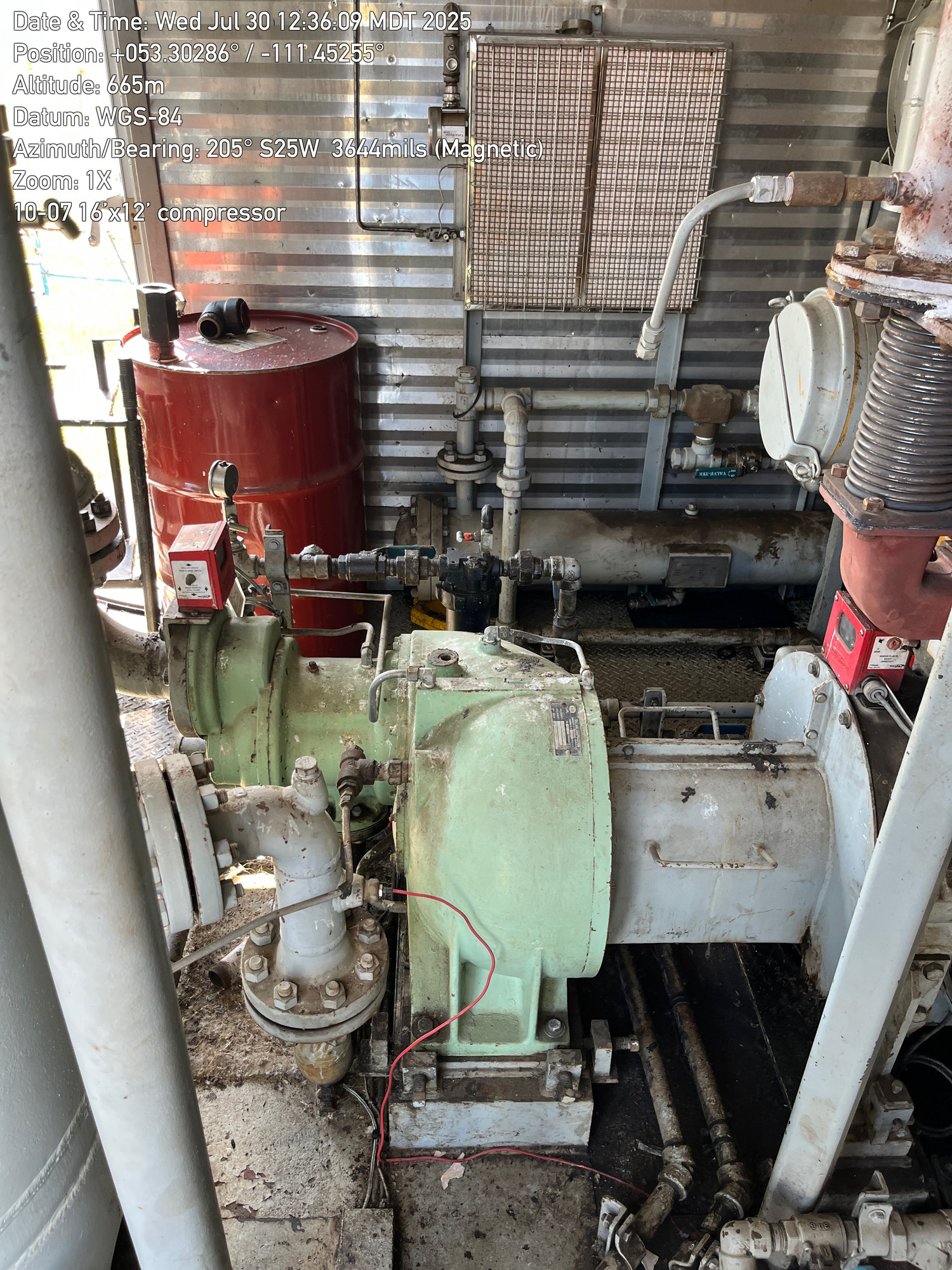 Single stage Sullair compressor with a inline 6 cylinder Caterpillar G3306 engine inside a 16'x12' building located at 10-07-050-10W4 (100)