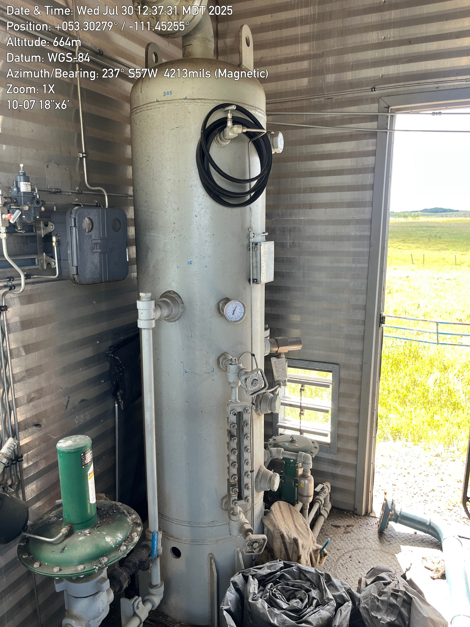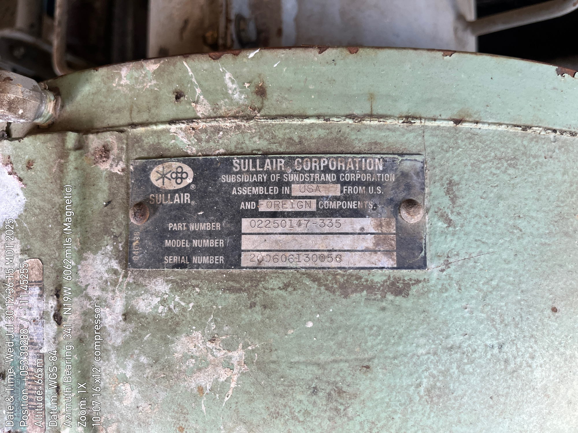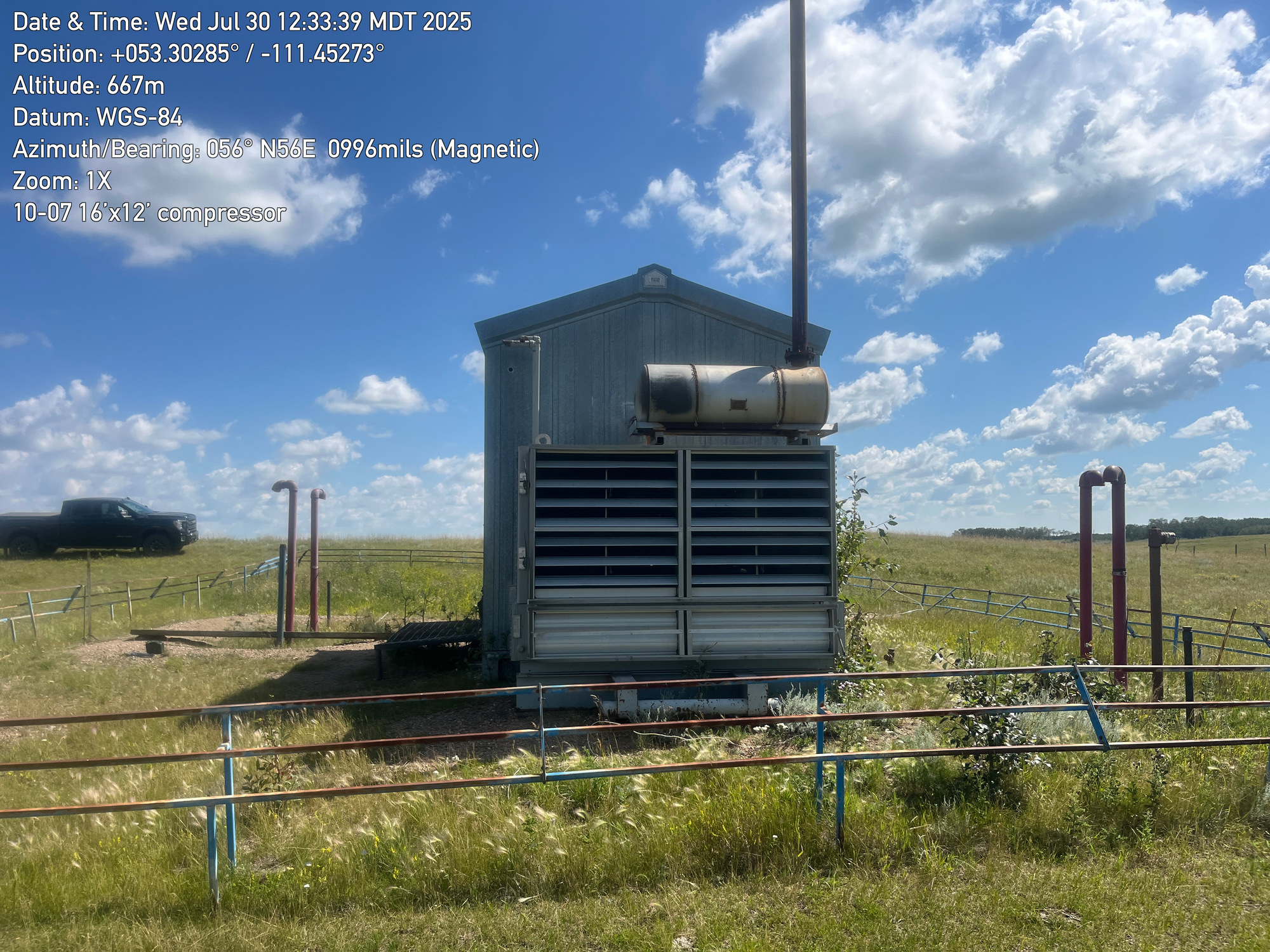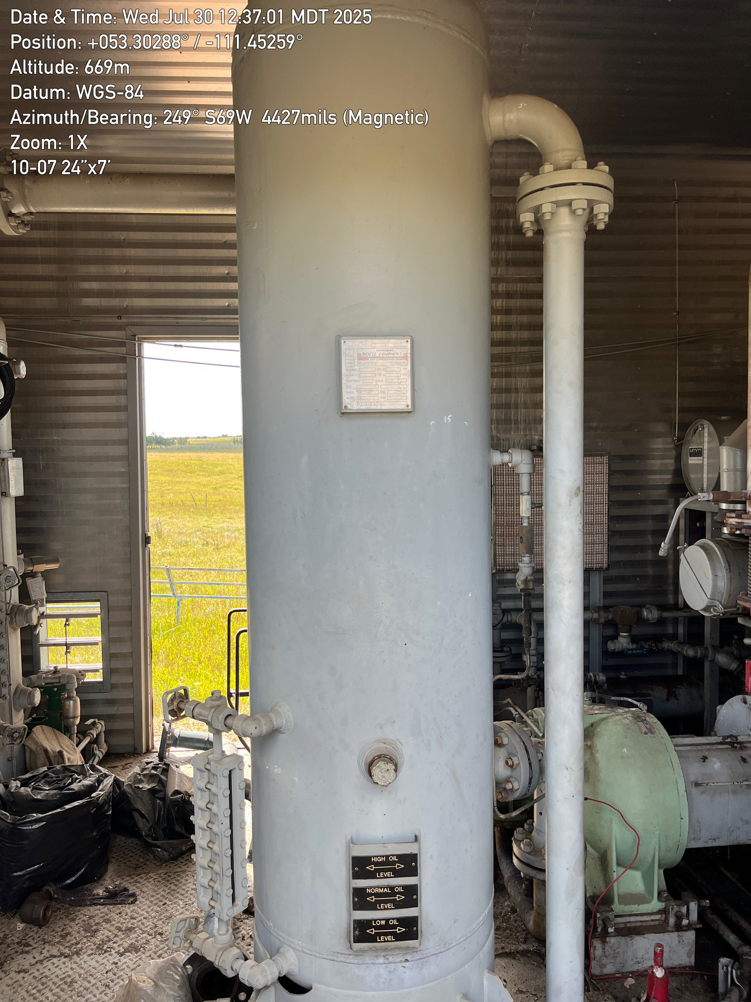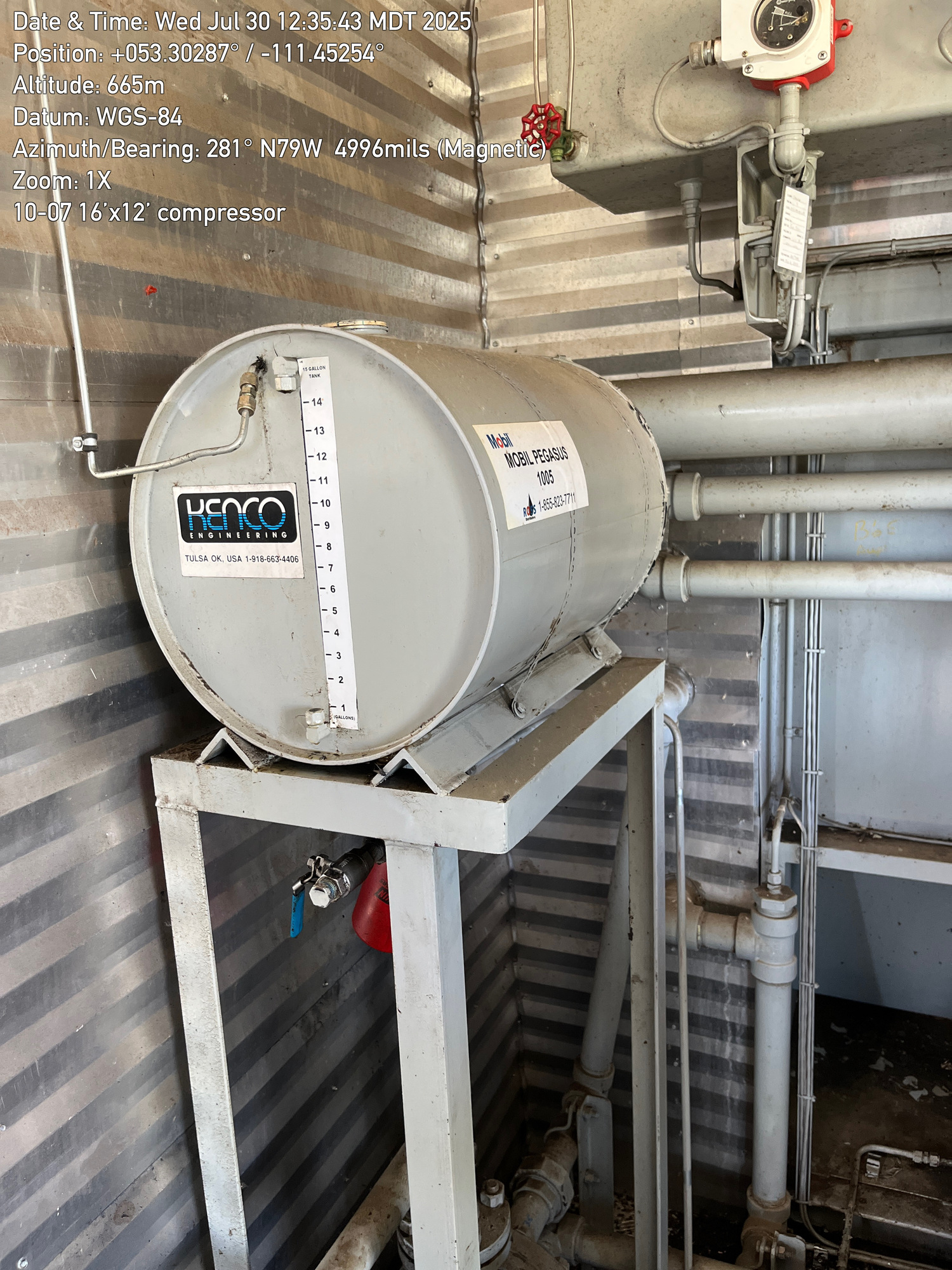 Single stage Sullair compressor with a inline 6 cylinder Caterpillar G3306 engine inside a 16'x12' building located at 10-07-050-10W4 (100)