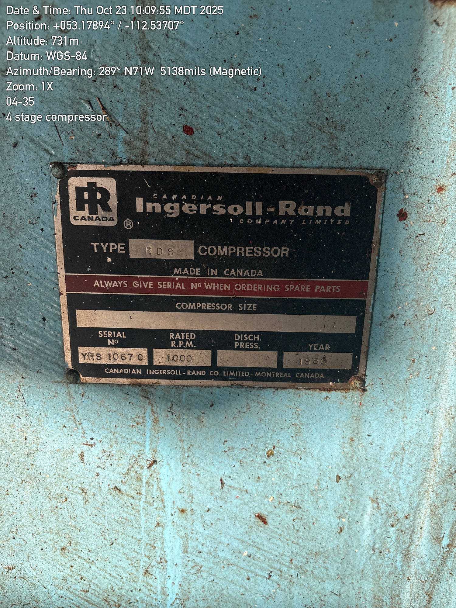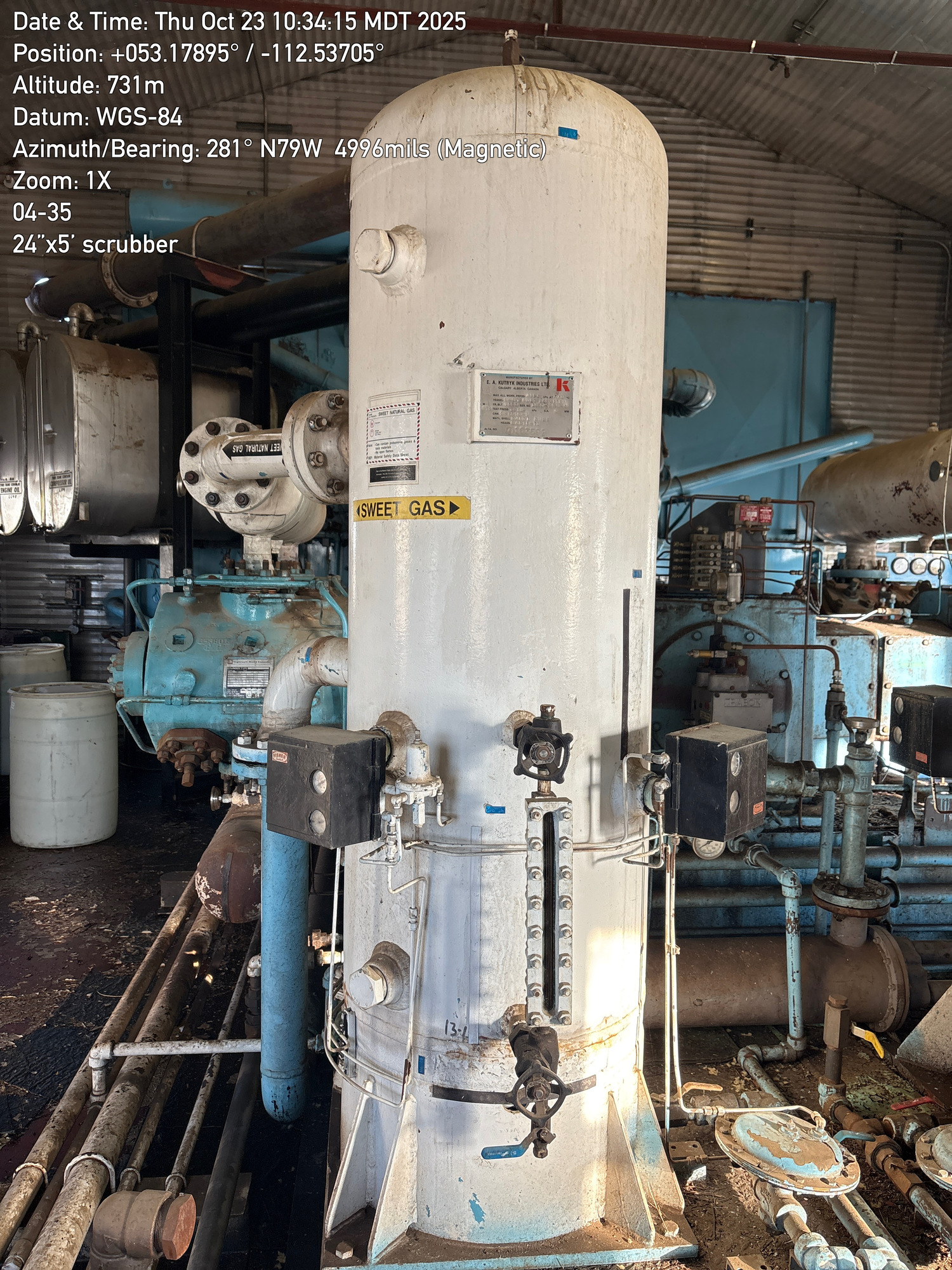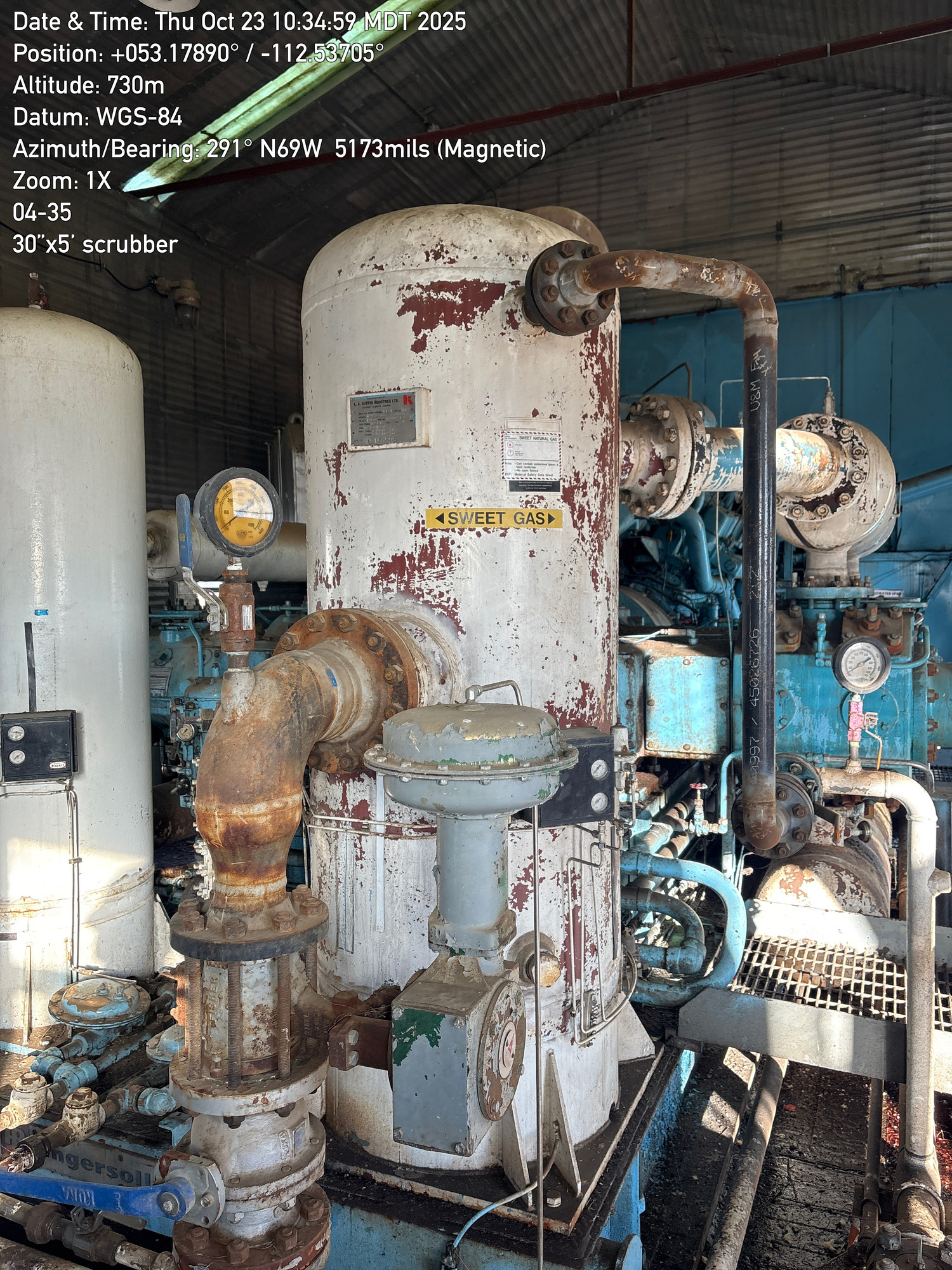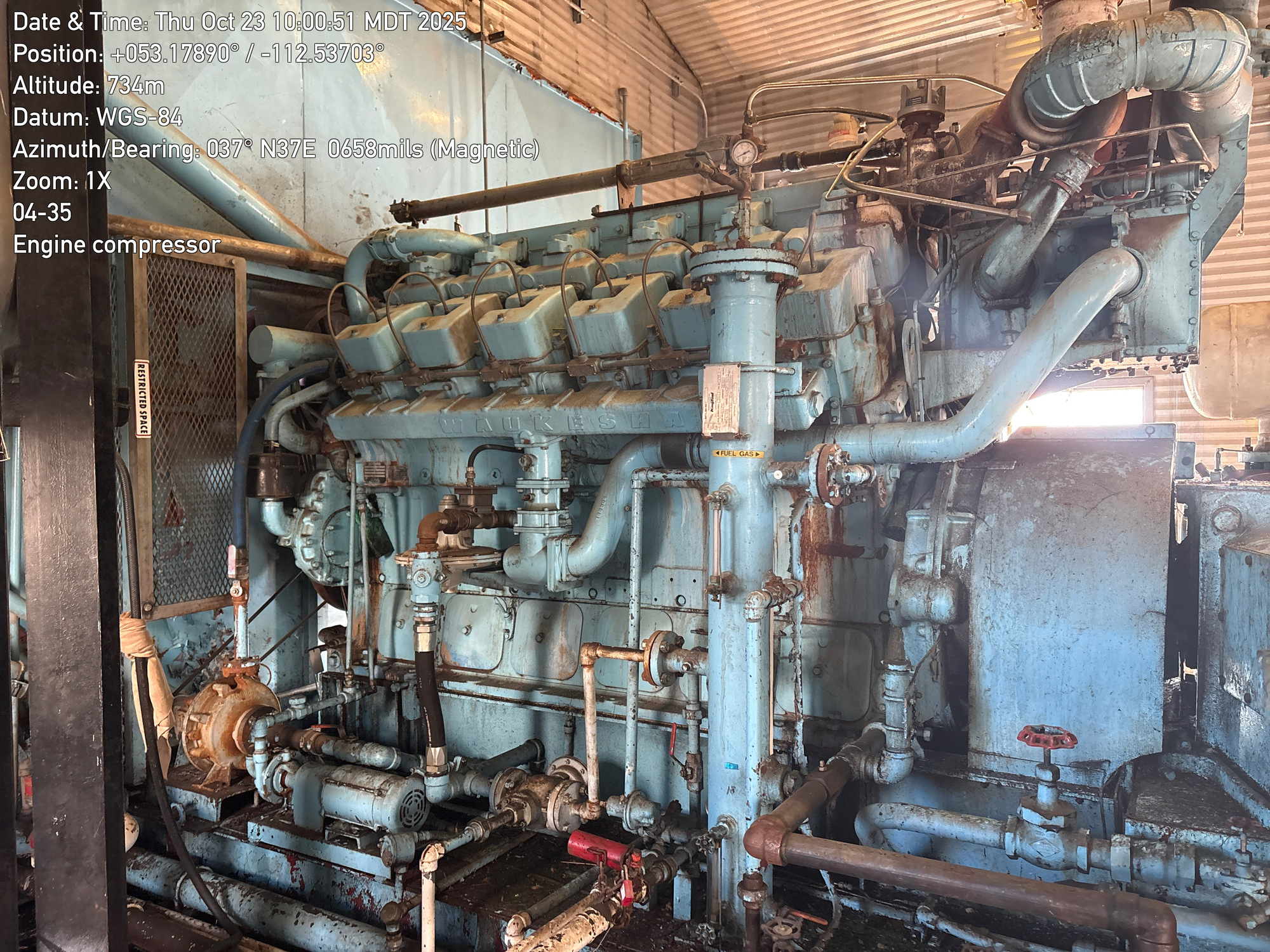 4 Stage Ingersoll Rand RDS compressor with V-12 L7042GSIU Waukesha engine inside a 35'x25' building located at 04-35-048-18W4 (Facility)