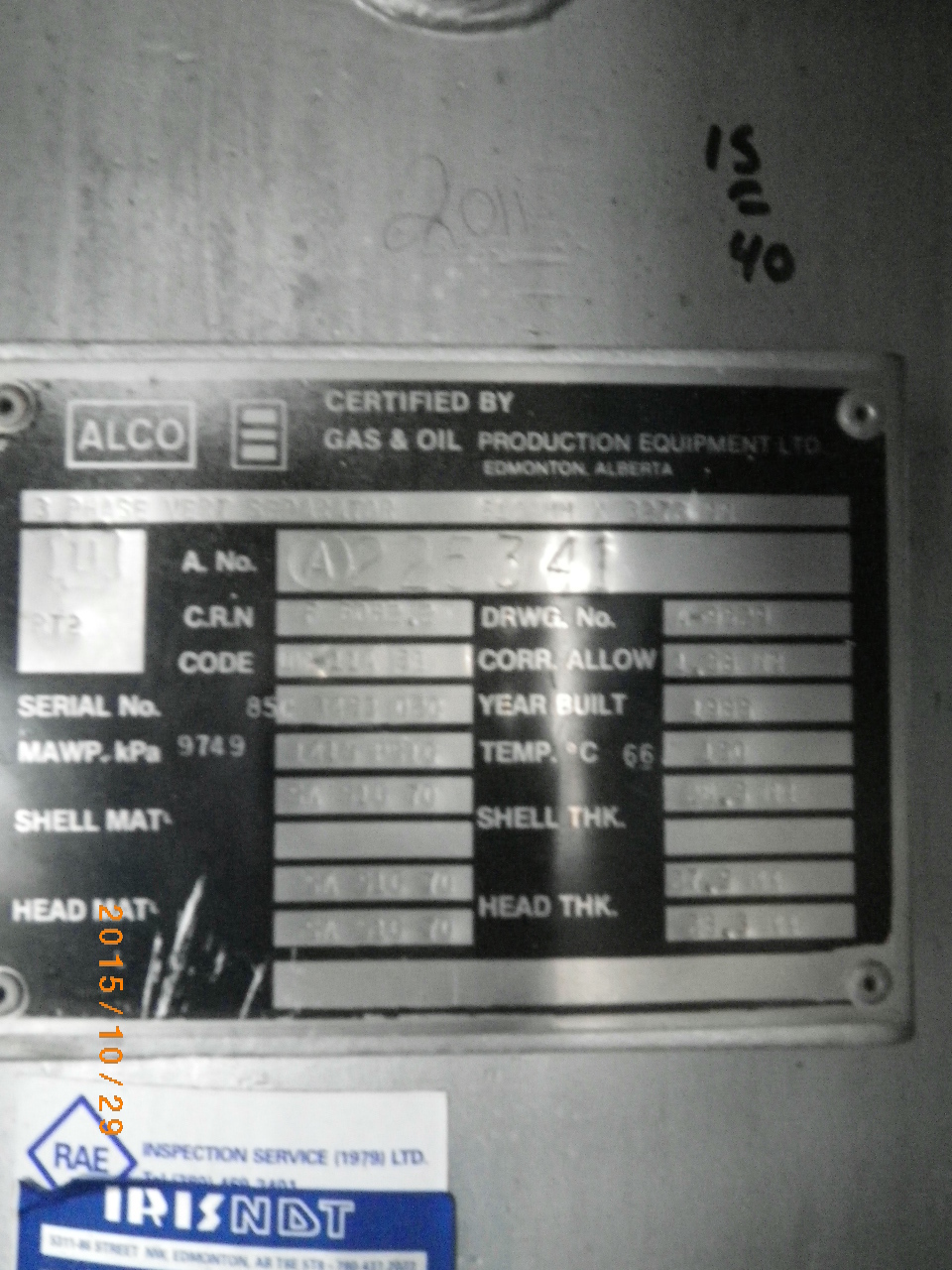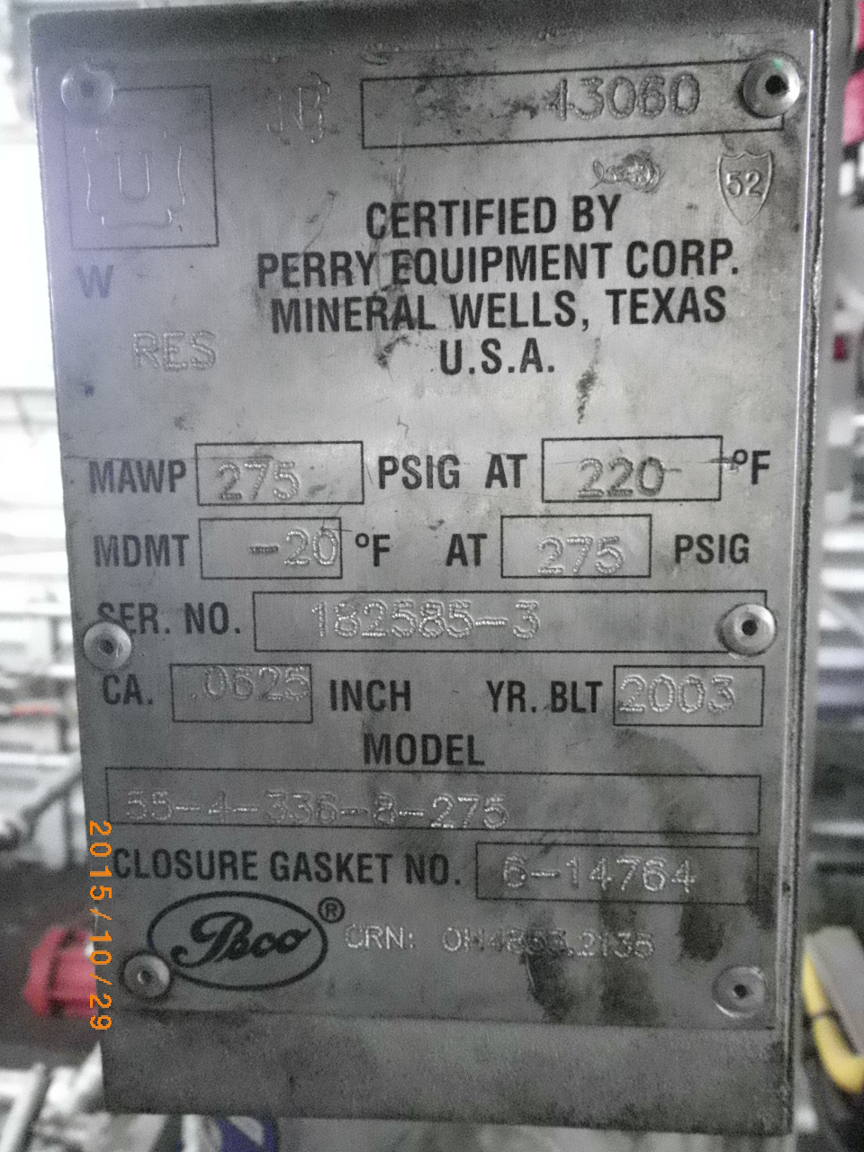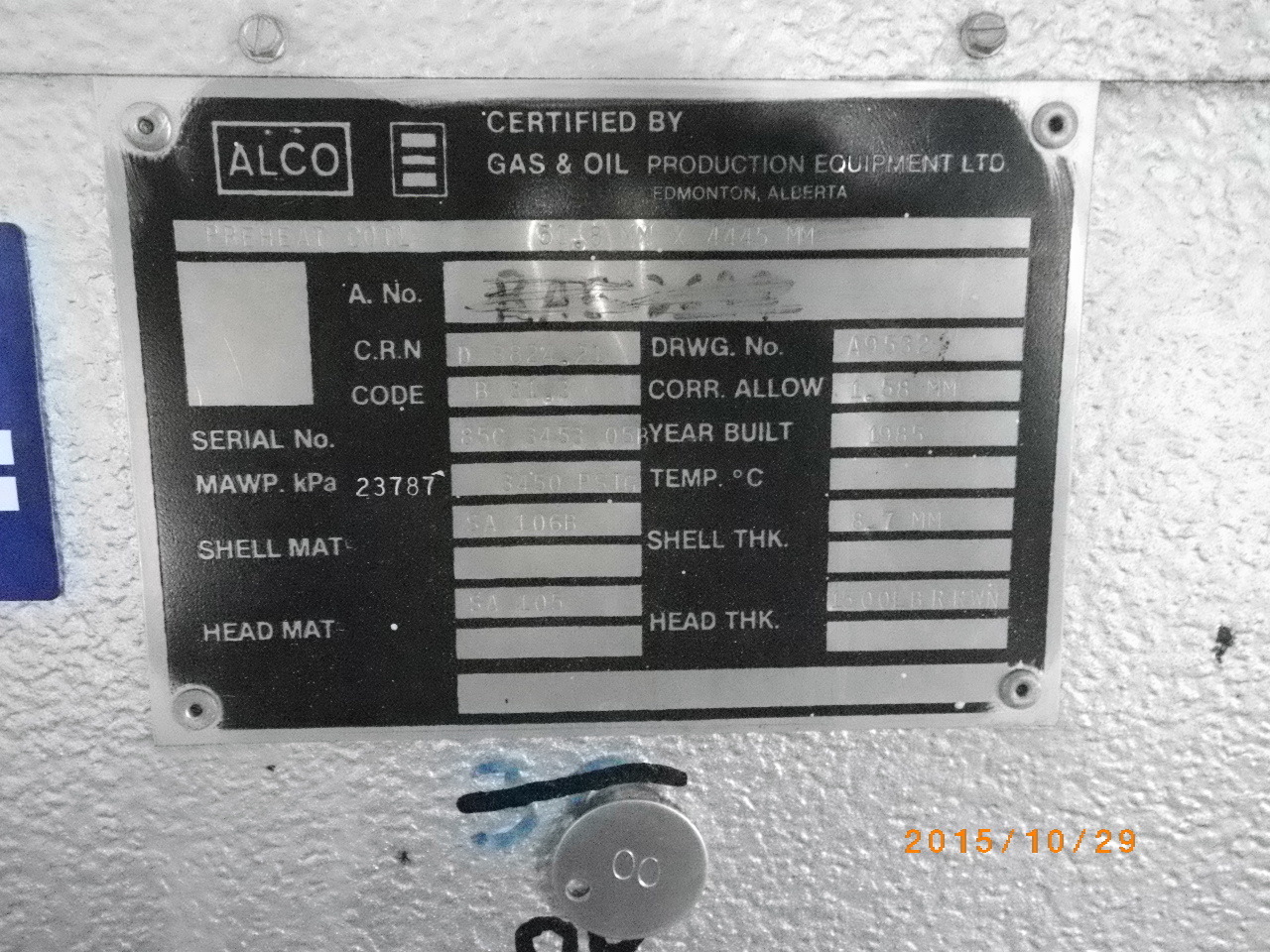 MAWP (PSI) 1415