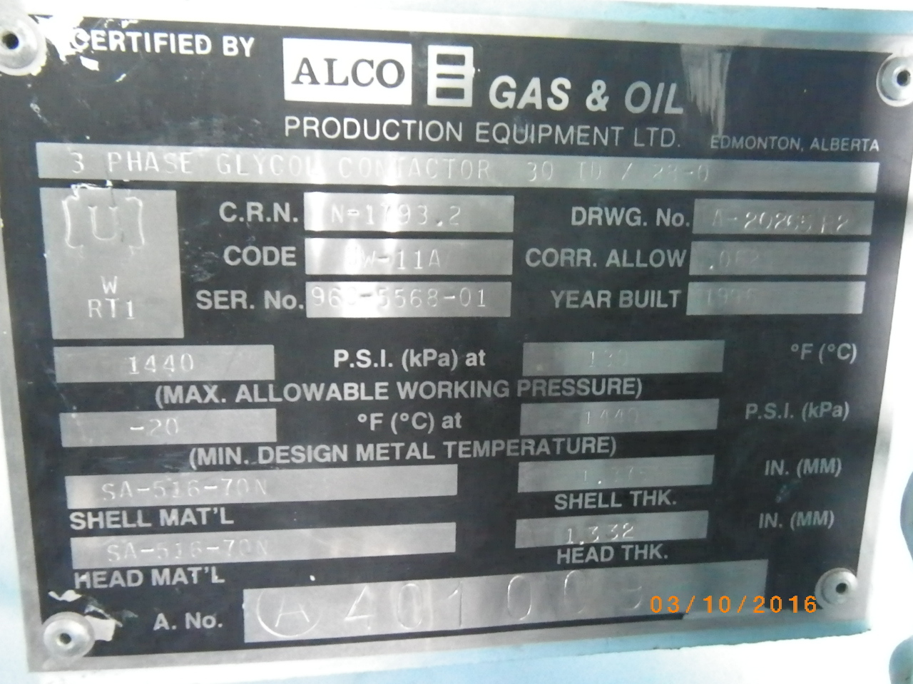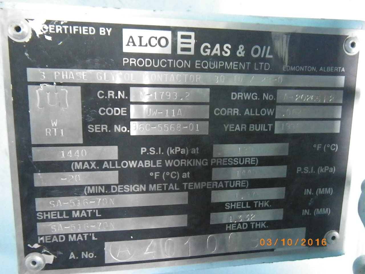 MAWP (PSI) 1440