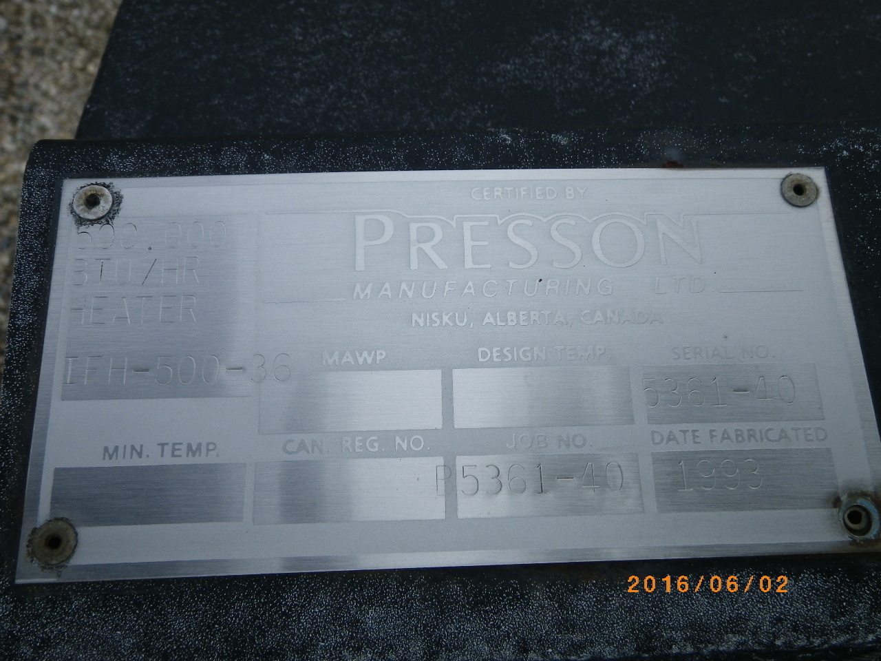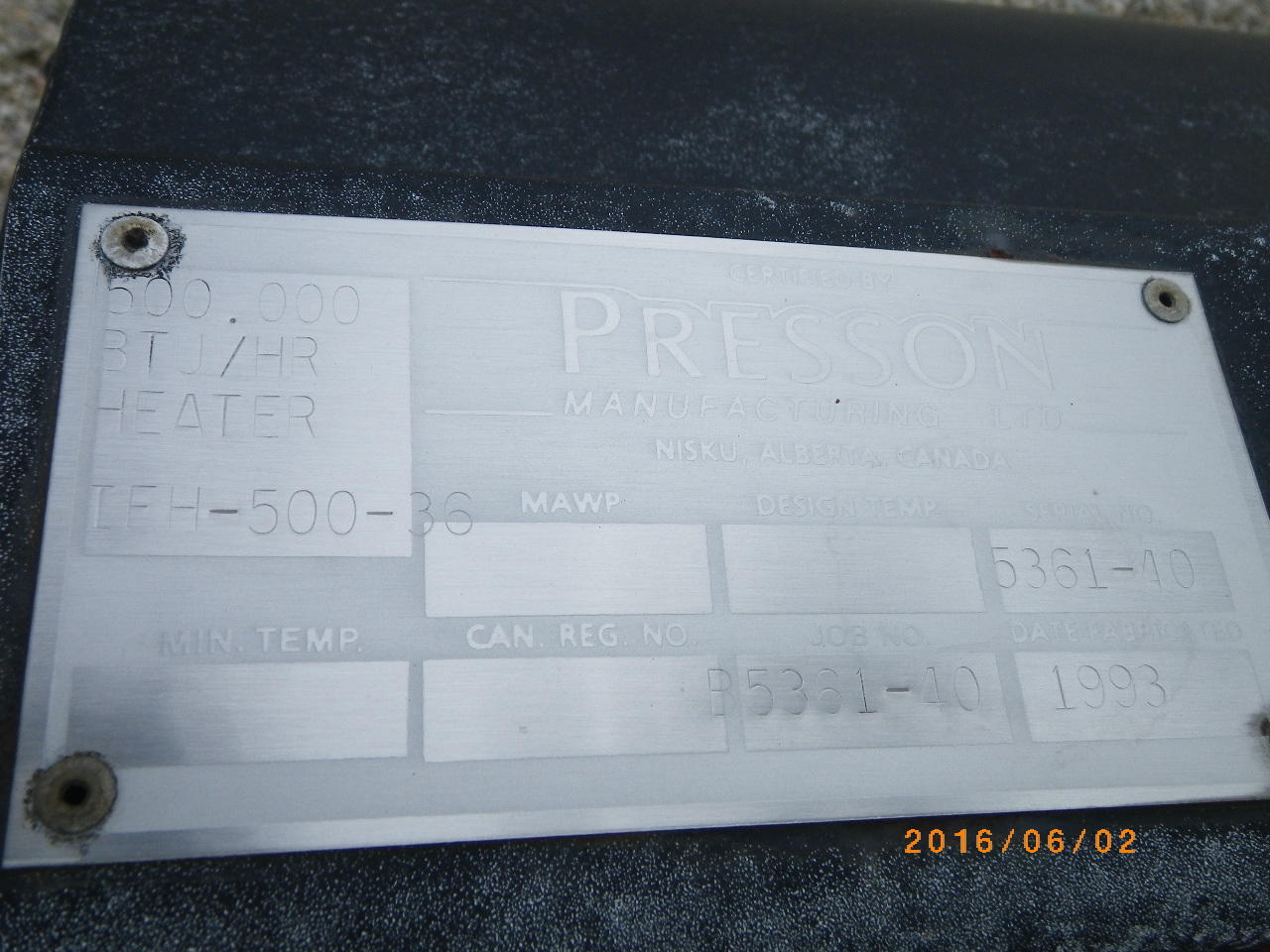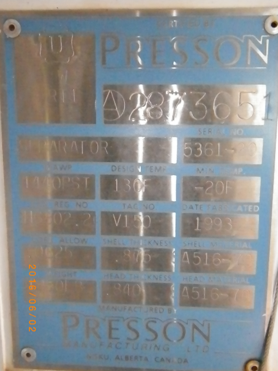 MAWP (PSI) 1440