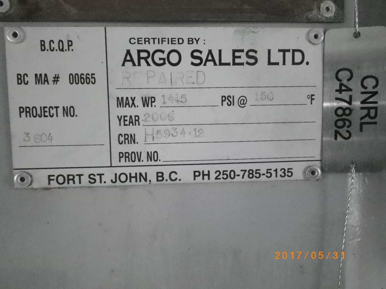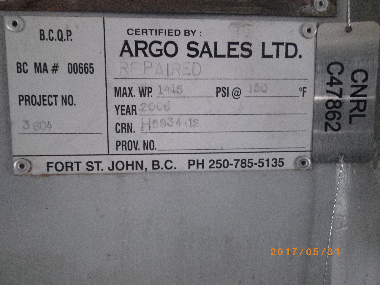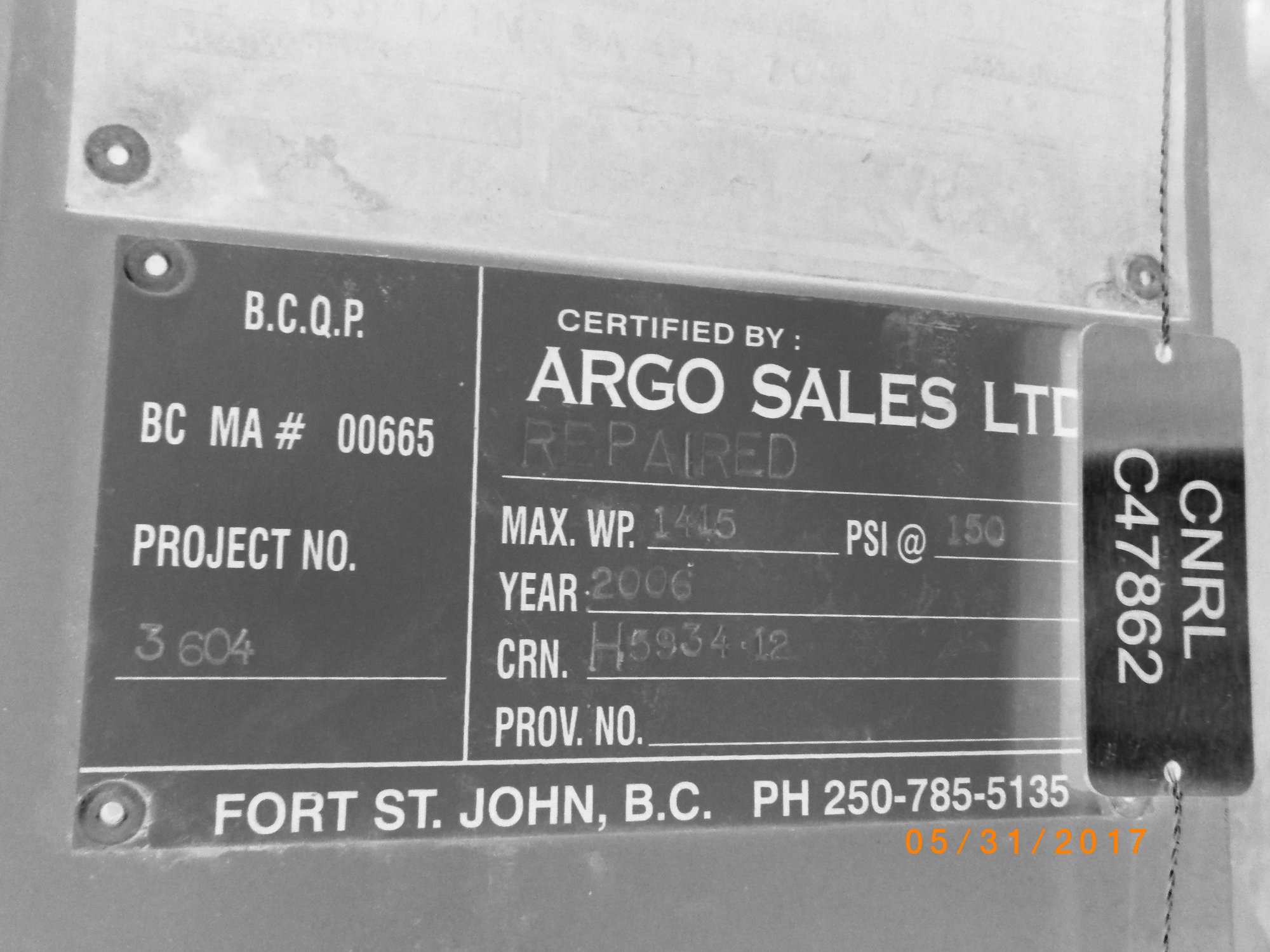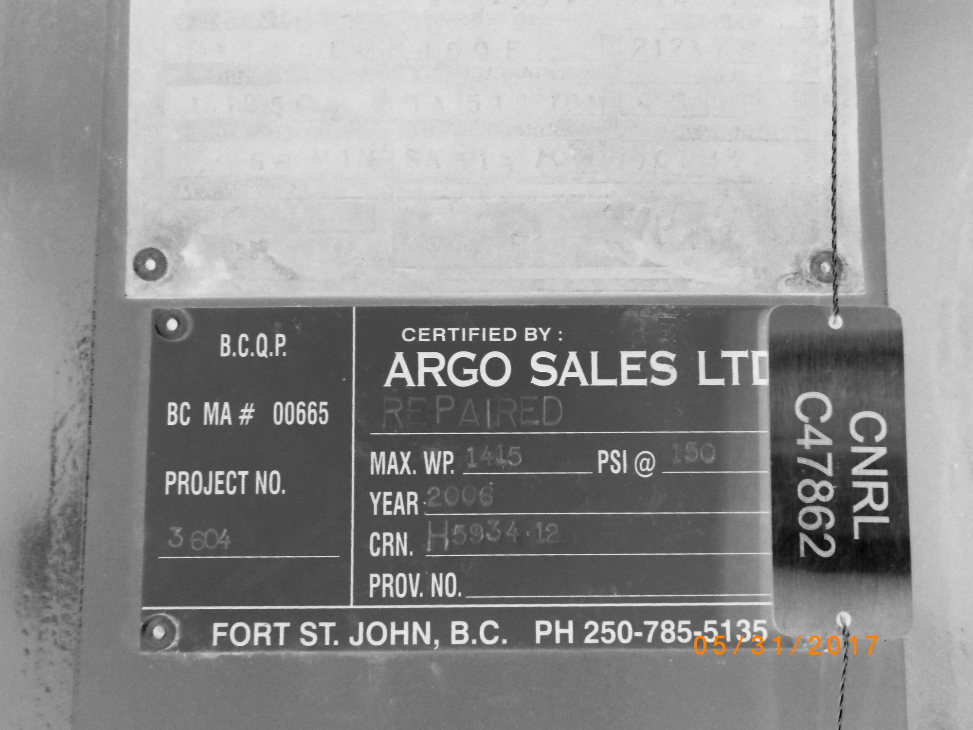 MAWP (PSI) 1415