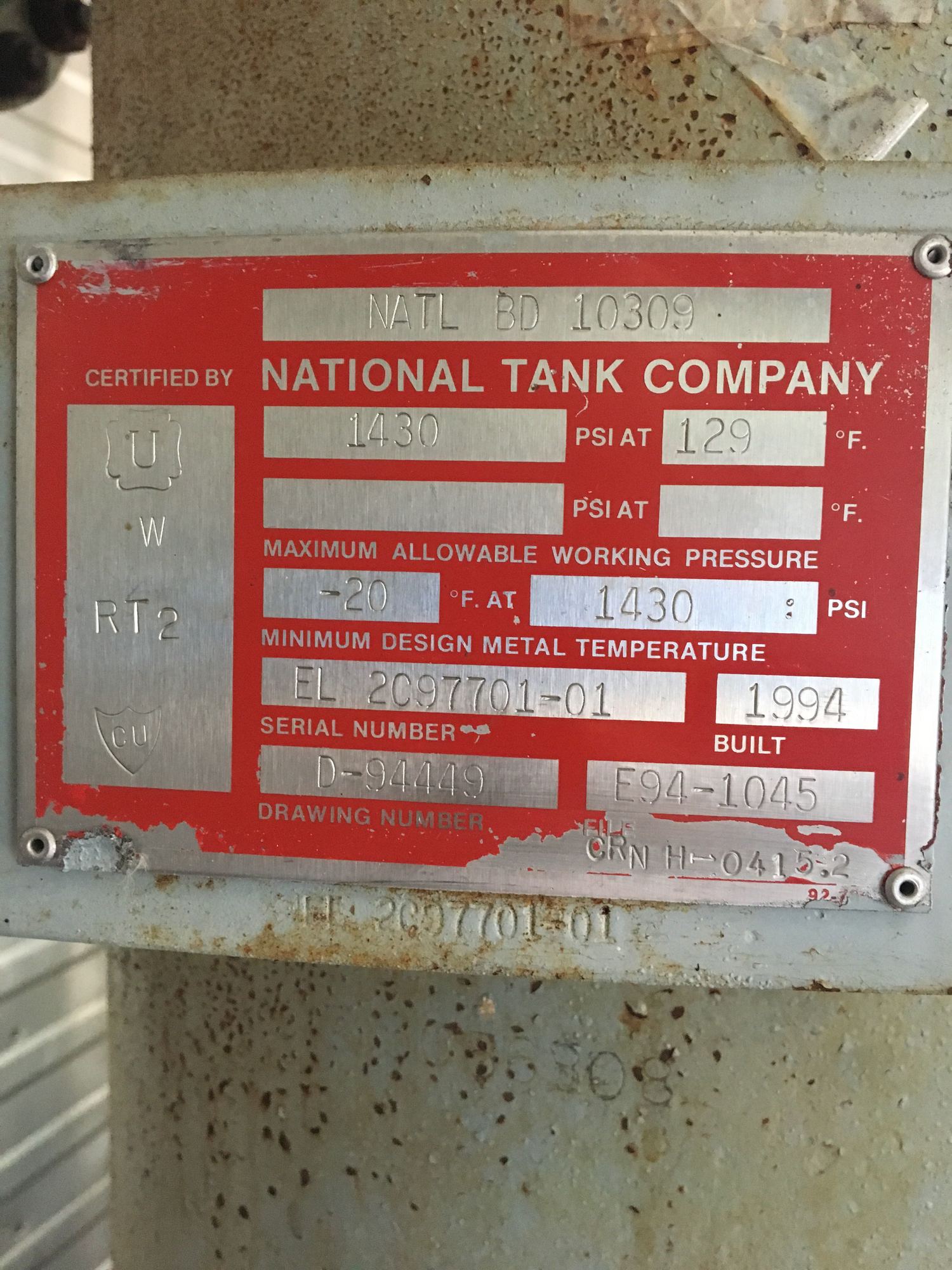 MAWP (PSI) 1430
