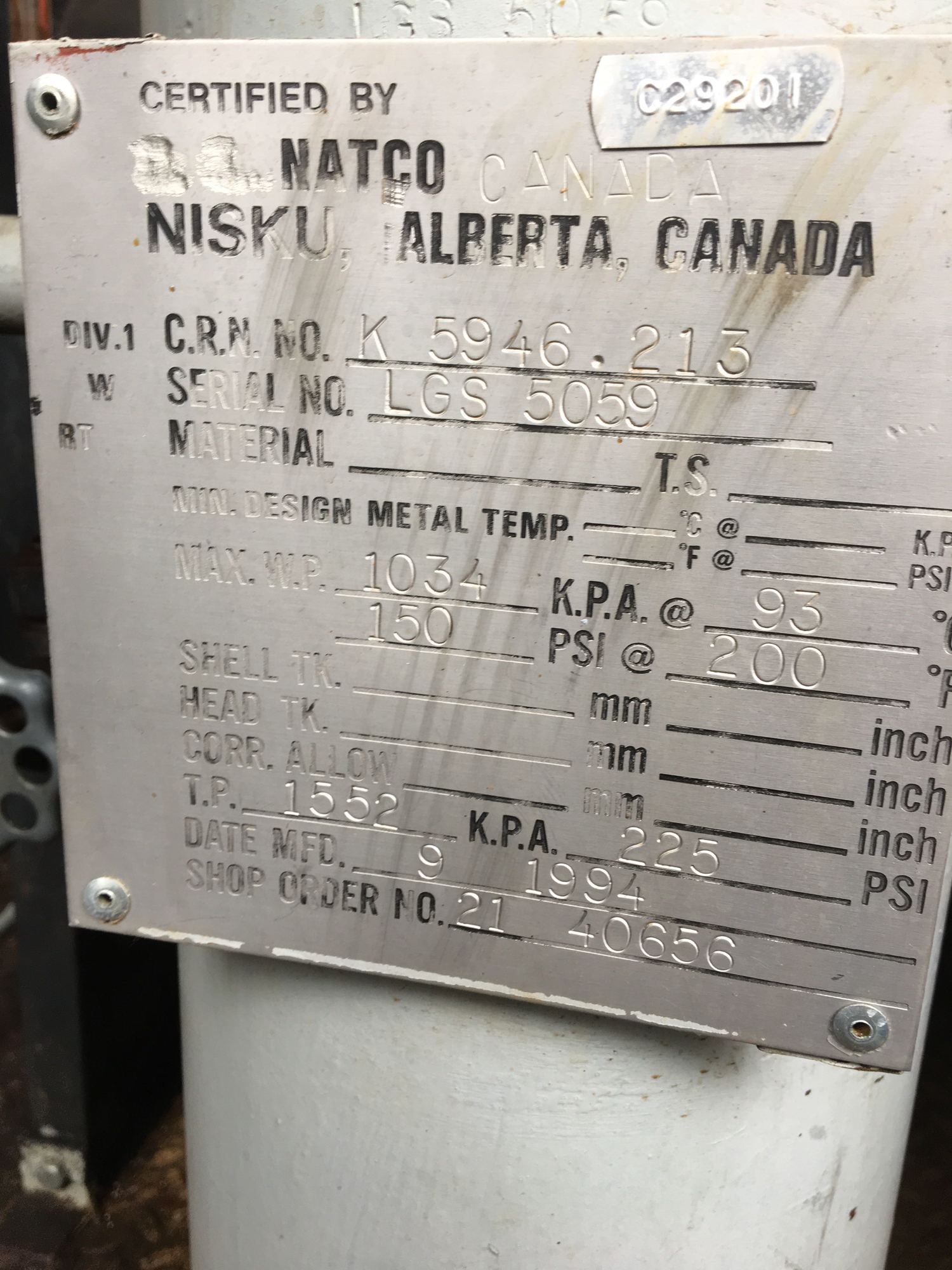 MAWP (kPa) 9860