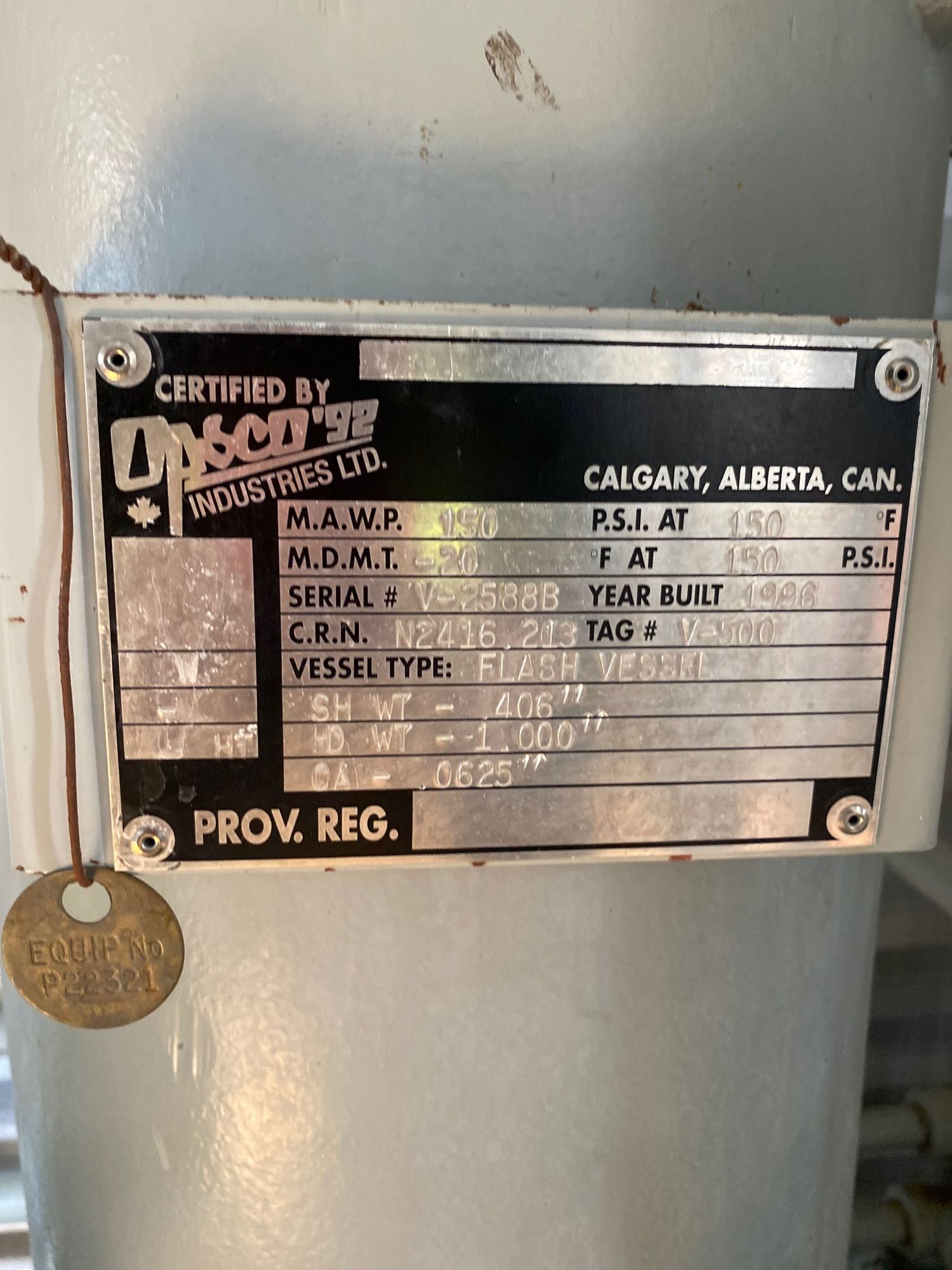 MAWP: 150 PSI @ 150 F