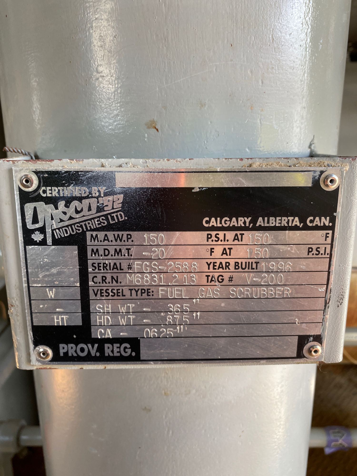 20" x 25' (EST) 500000 BTU/Hr 1395 PSI Dehydrator