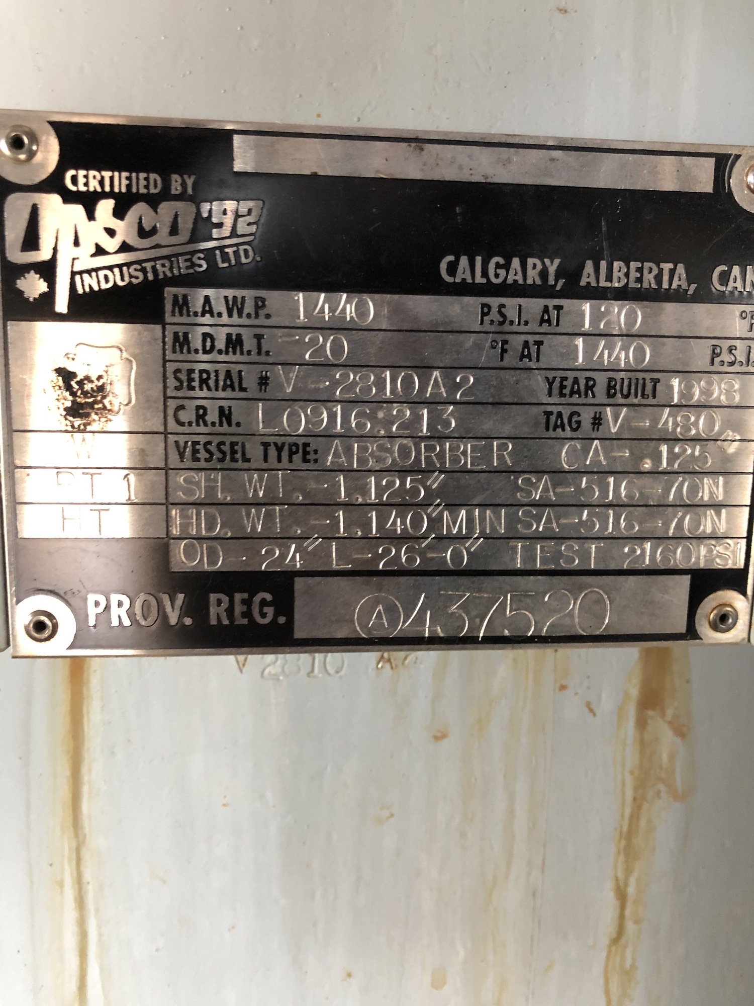 MAWP (PSI) 1440