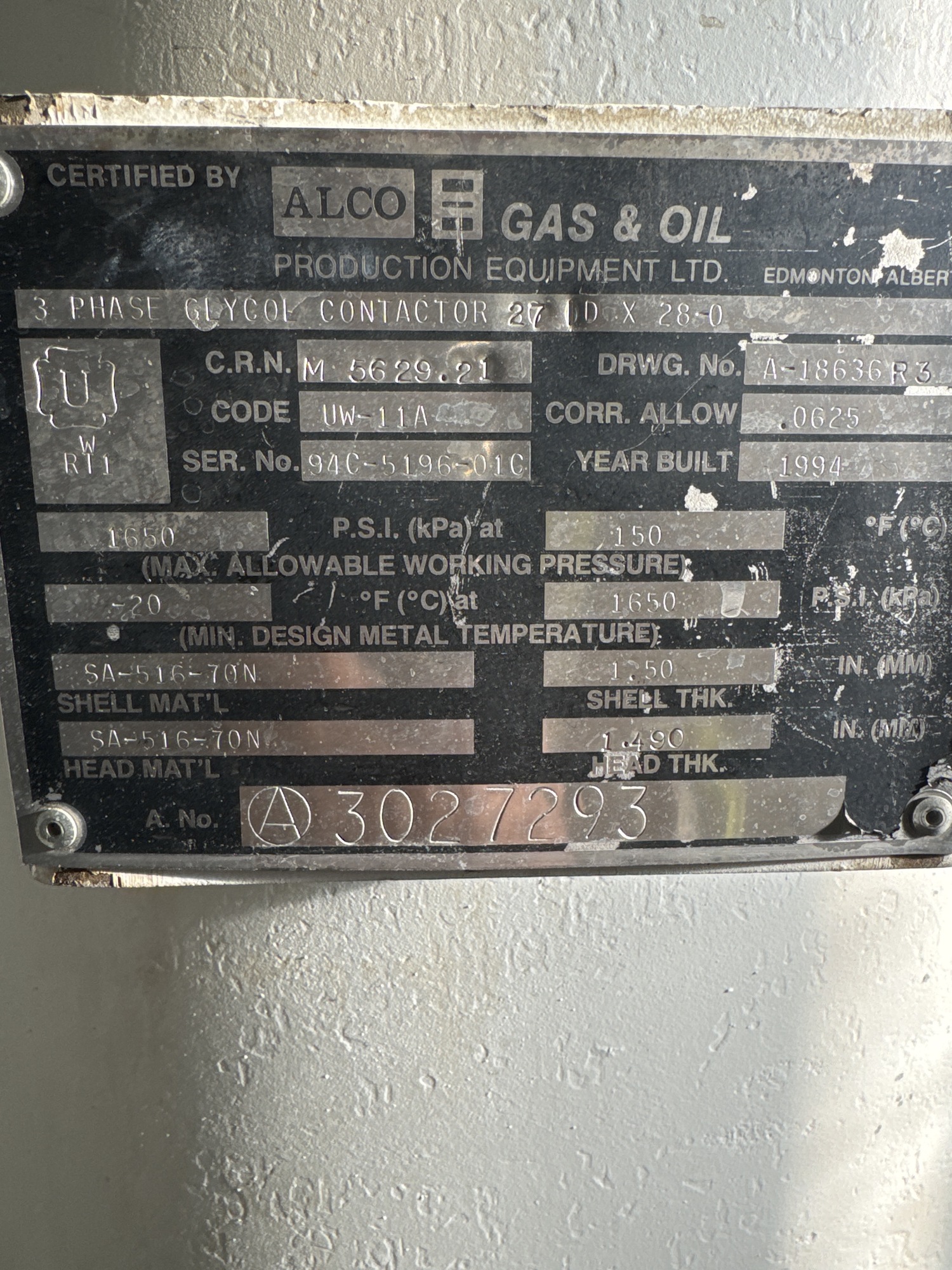 MAWP (PSI) 1650