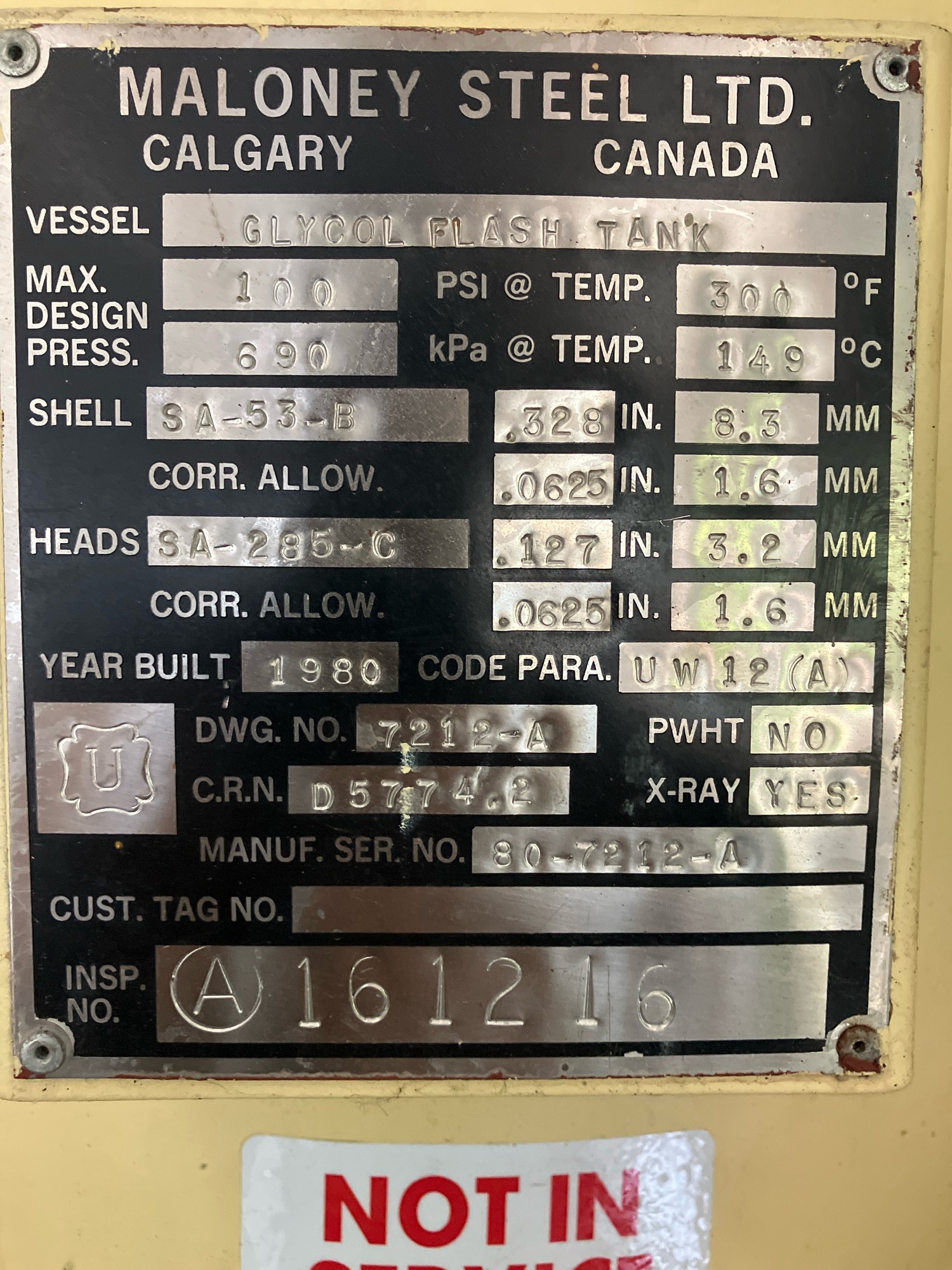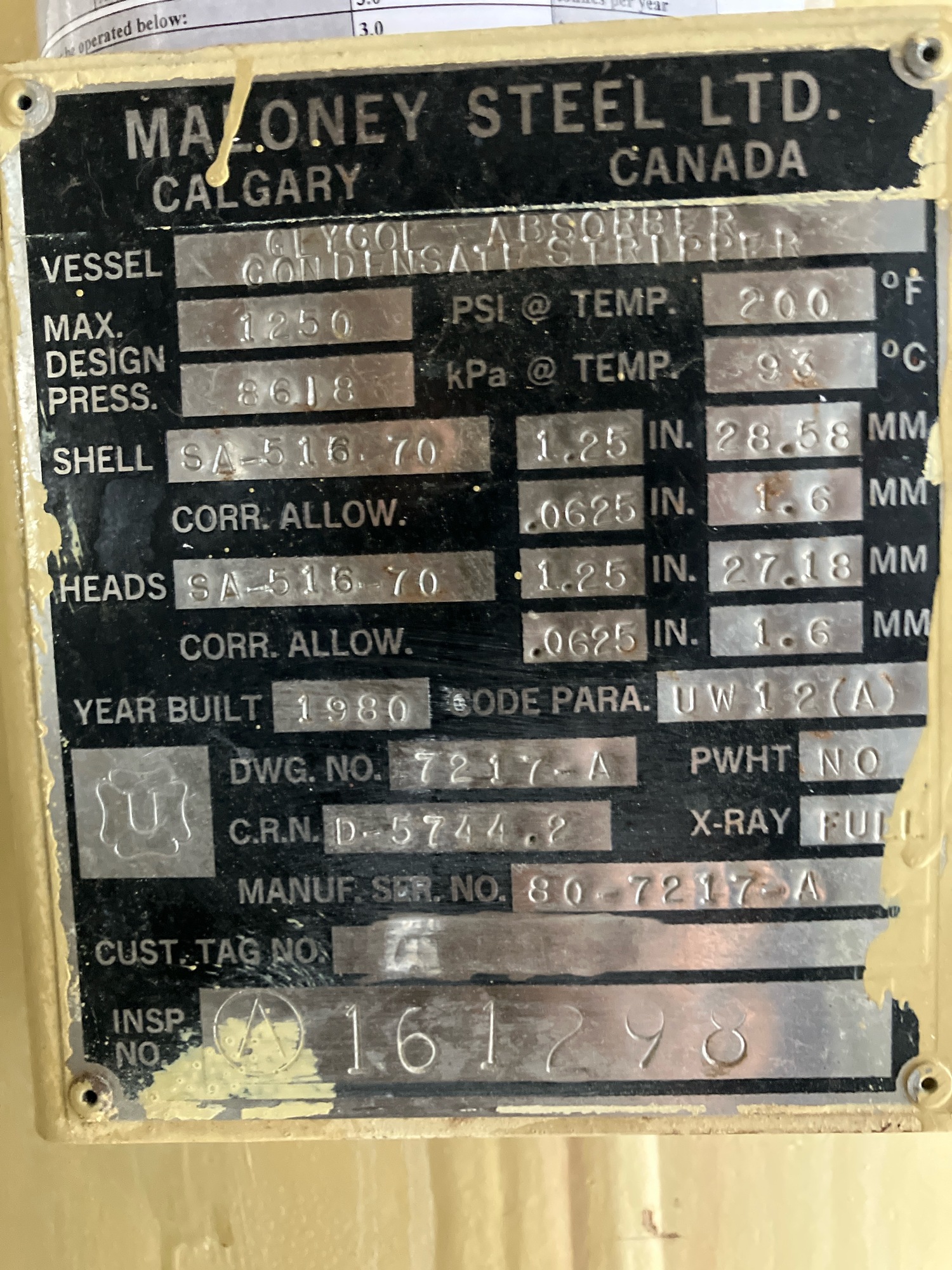 MAWP (PSI) 1250