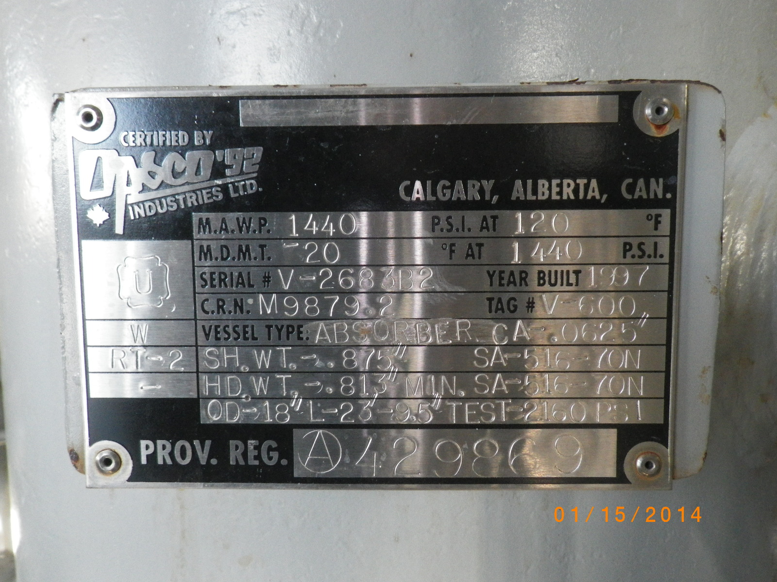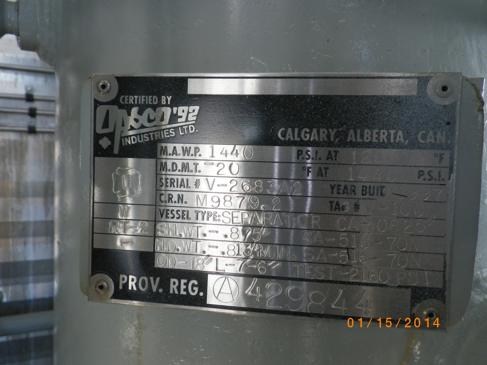 MAWP (PSI) 1440