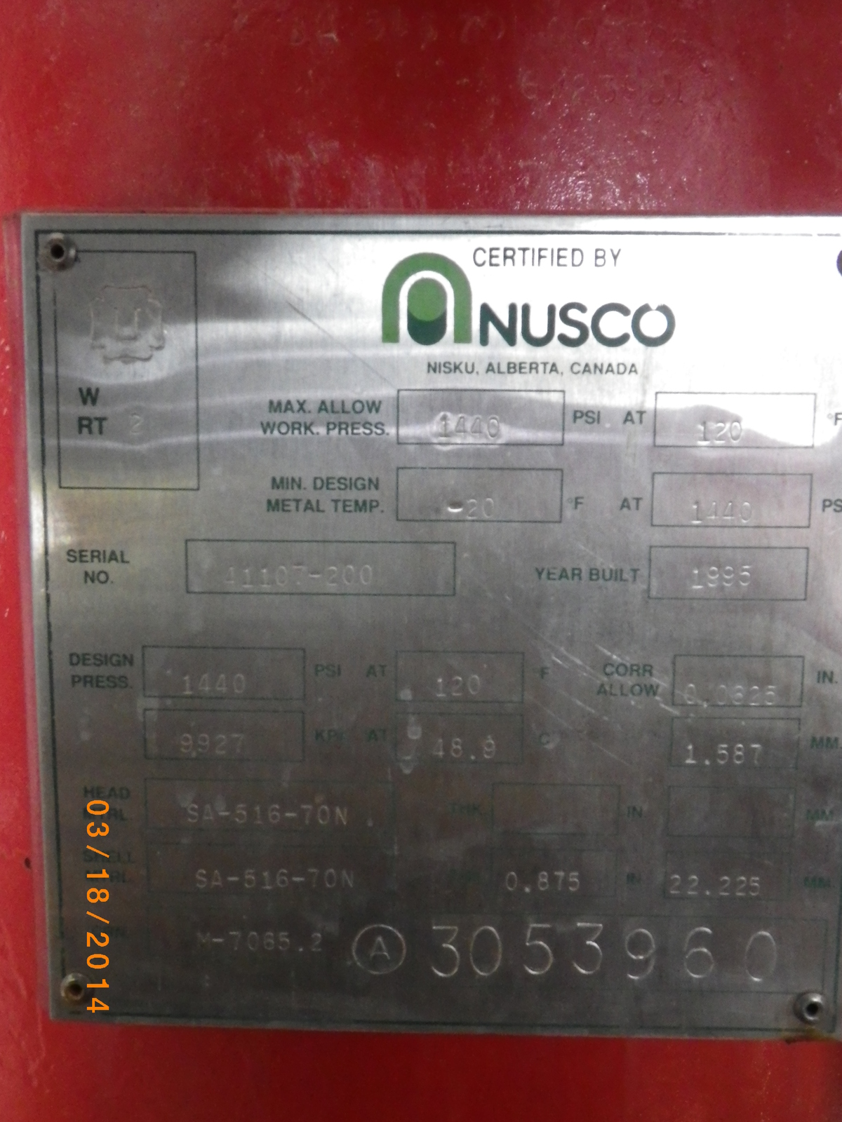 MAWP (PSI) 1440