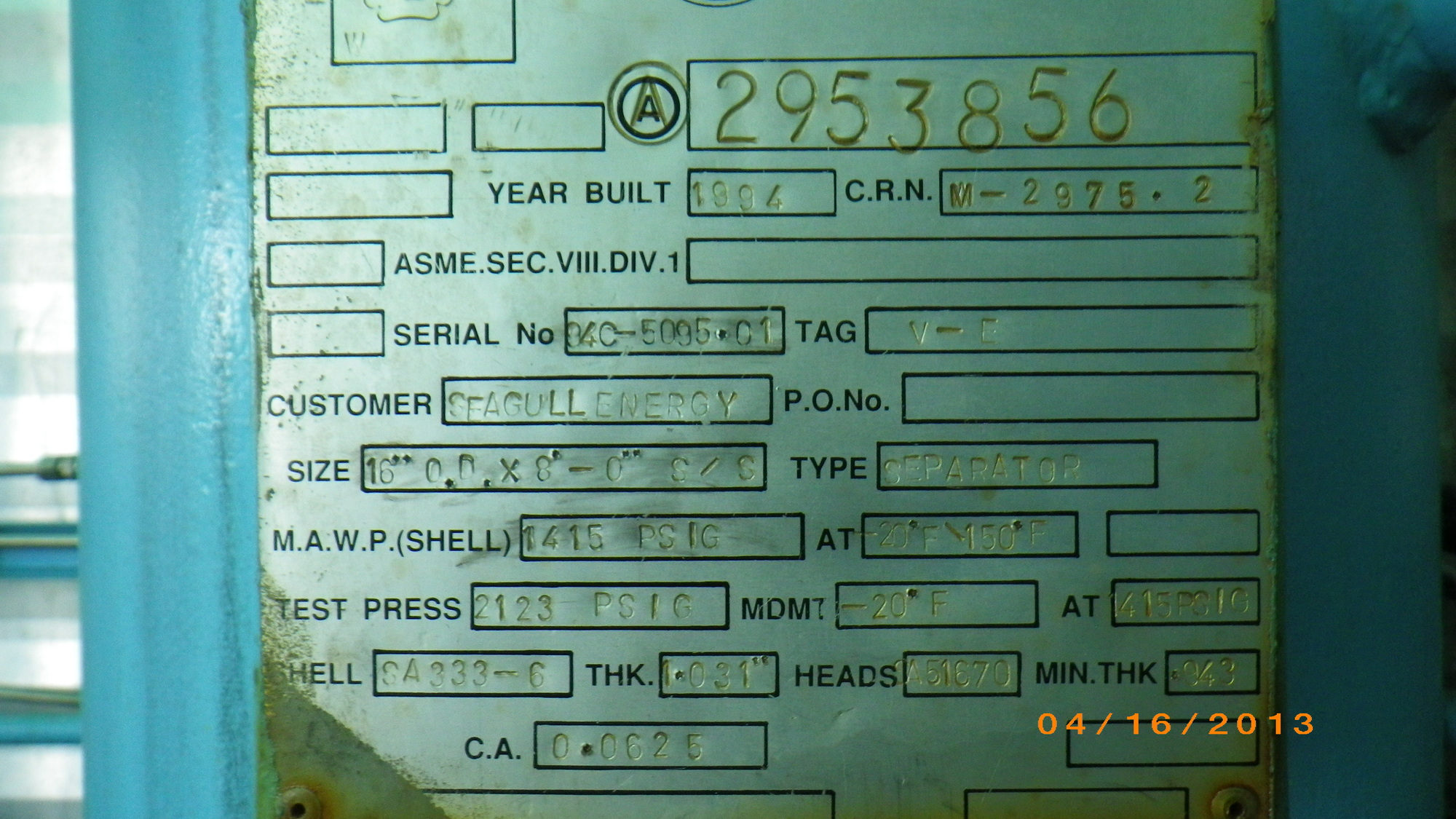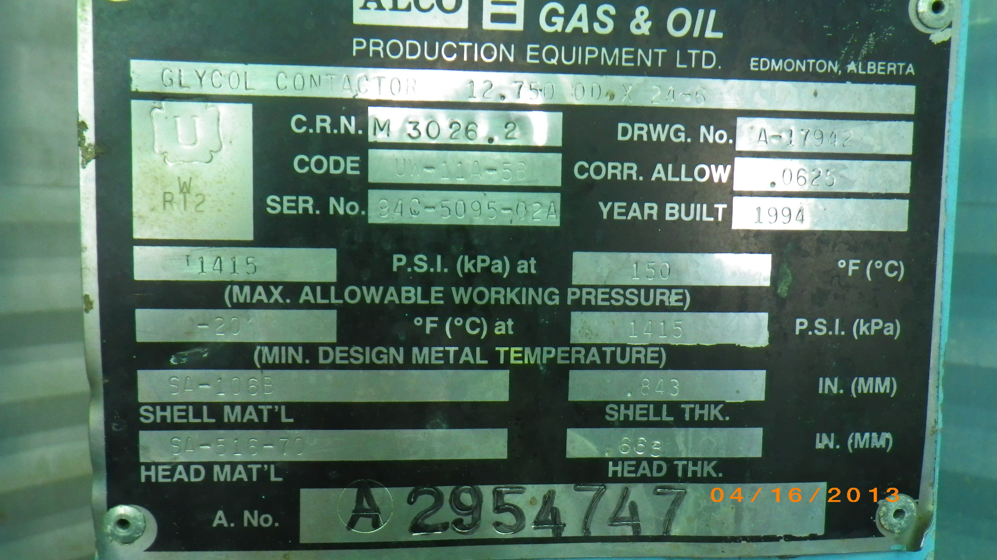 MAWP (PSI) 1415