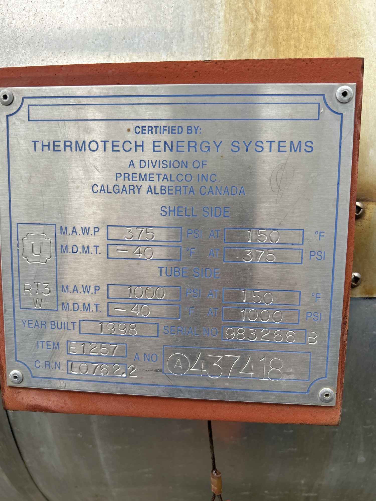 MAWP (PSI) 375 PSI