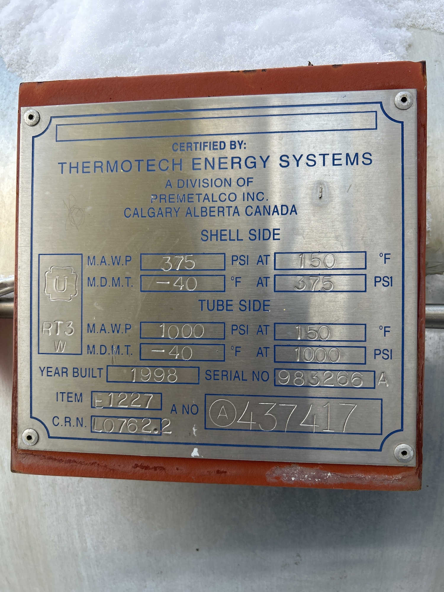 MAWP (PSI) 375 PSI