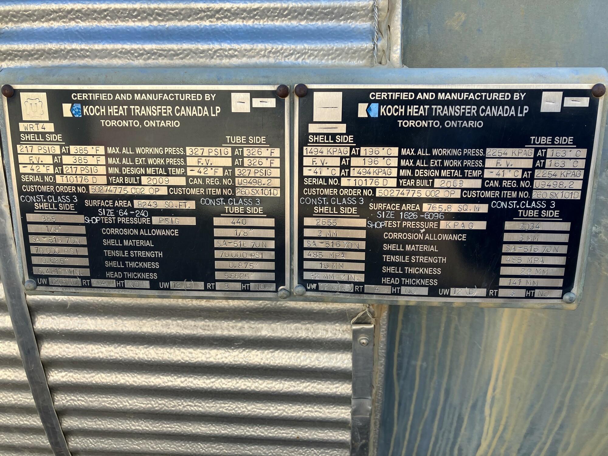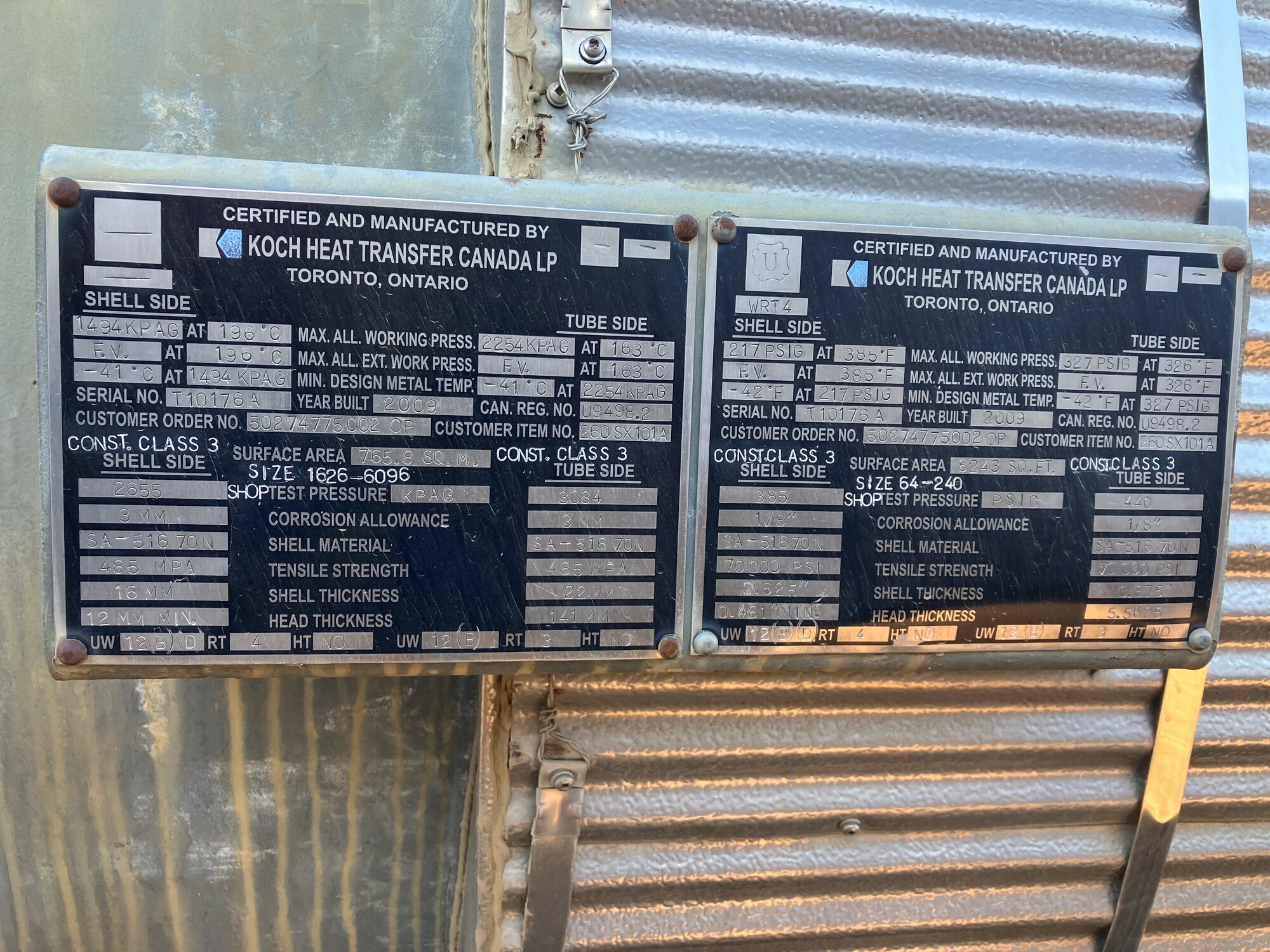 2. The exchangers were built in Ontario in 2009 and have valid CRN registration for Alberta but would require ABSA A# stamping prior to service.
